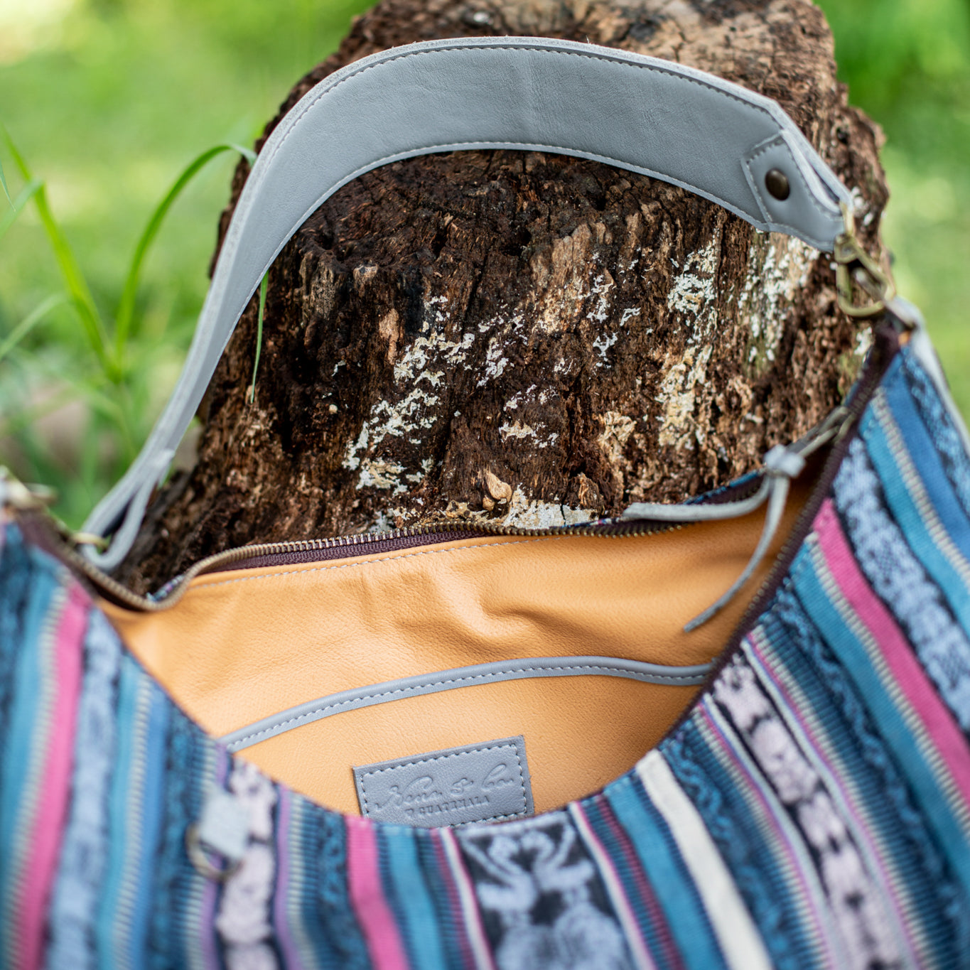 We make every effort to provide our customers with the best-handcrafted and high-quality bags. Please note that all our processes to make the bags are done by hand, from curing, cutting, and treating the leather to using up-cycled huipils. Our bags have natural characteristics and qualities that should not be considered as flaws or as damage because they do not interfere with the functionality of the bag. We up-cycle vintage Maya clothing to make beautiful one-of-a-kind products. Many times you will find snags in the pattern. This is normal. Should your patterned huipil snag you can snip the loose threads with scissors. Do not pull them.