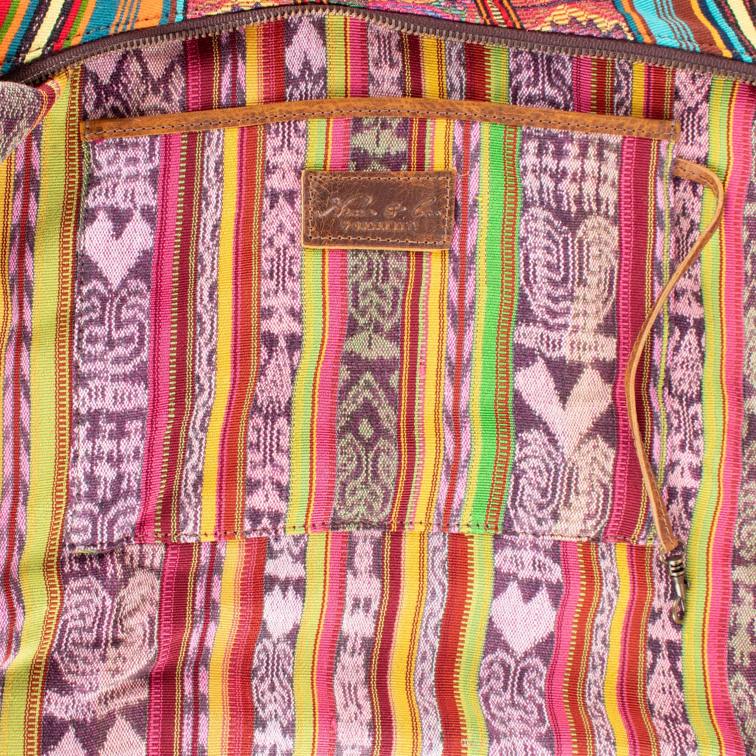 Many unique Maya symbols can be found in our One of a Kind Collection. The fabric we use for this collection is made from upcycled vintage huipiles (traditional attire worn by women in Guatemala) that were handwoven by Artisans up to 10 years ago, and they have lived a full life before being incorporated into your leather bag!