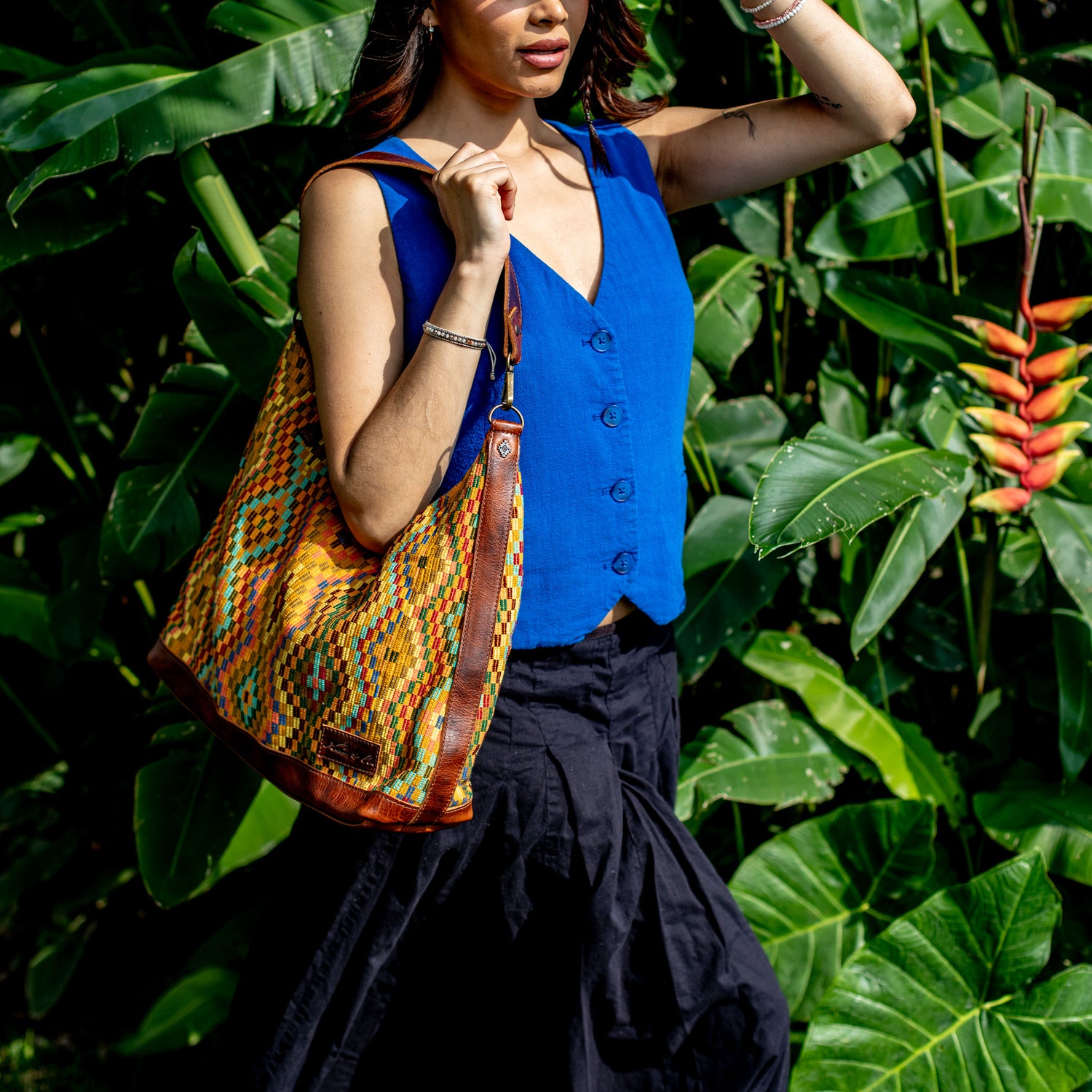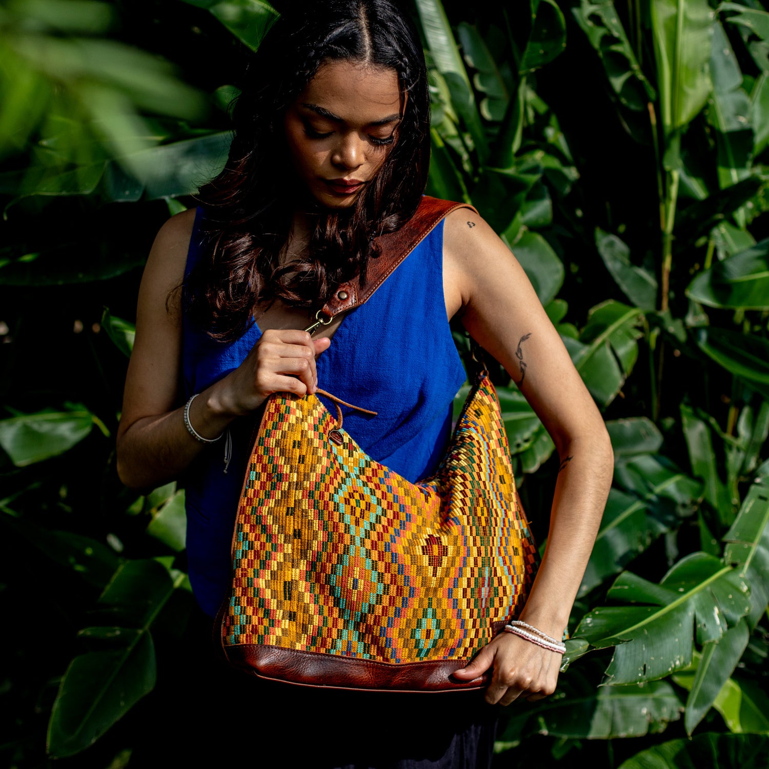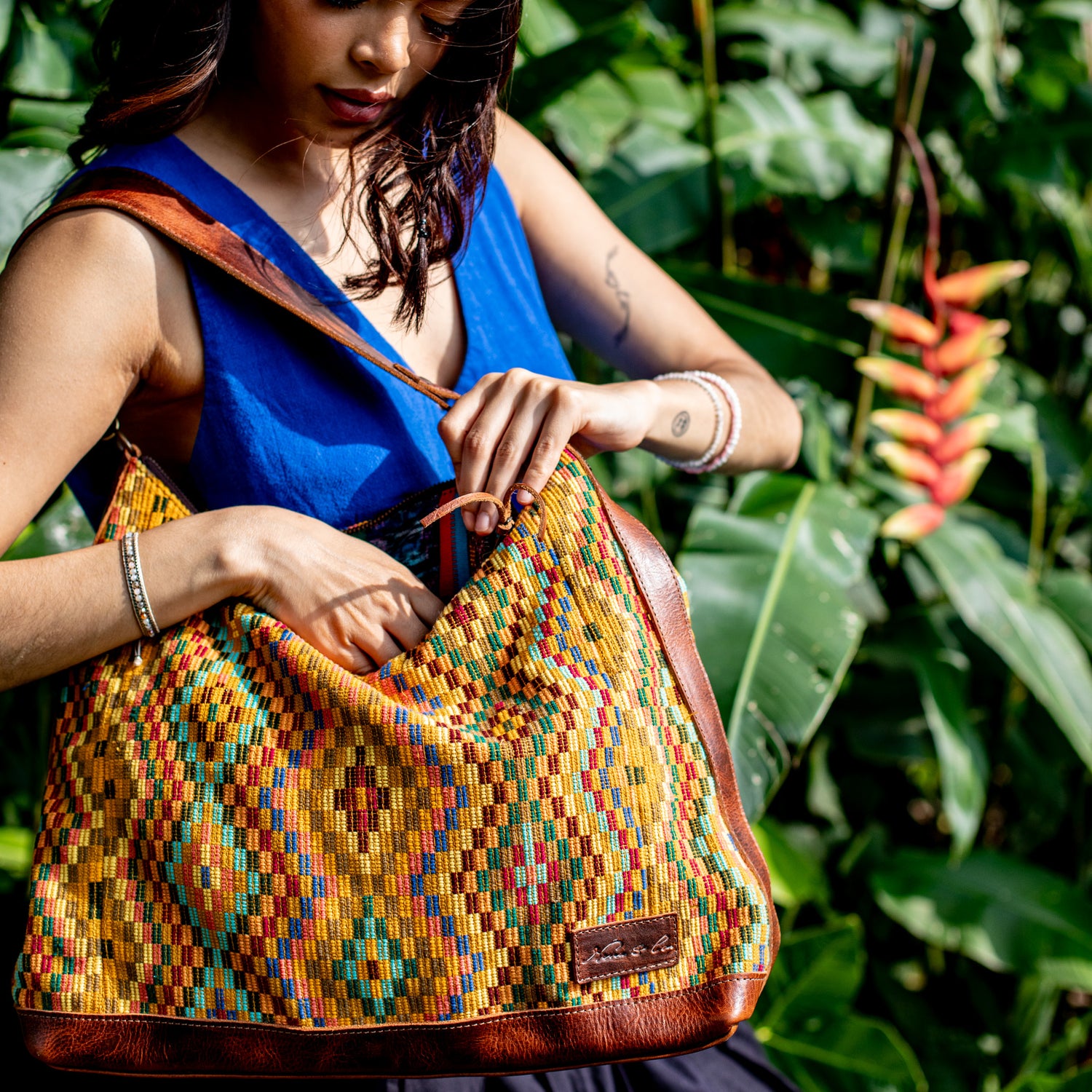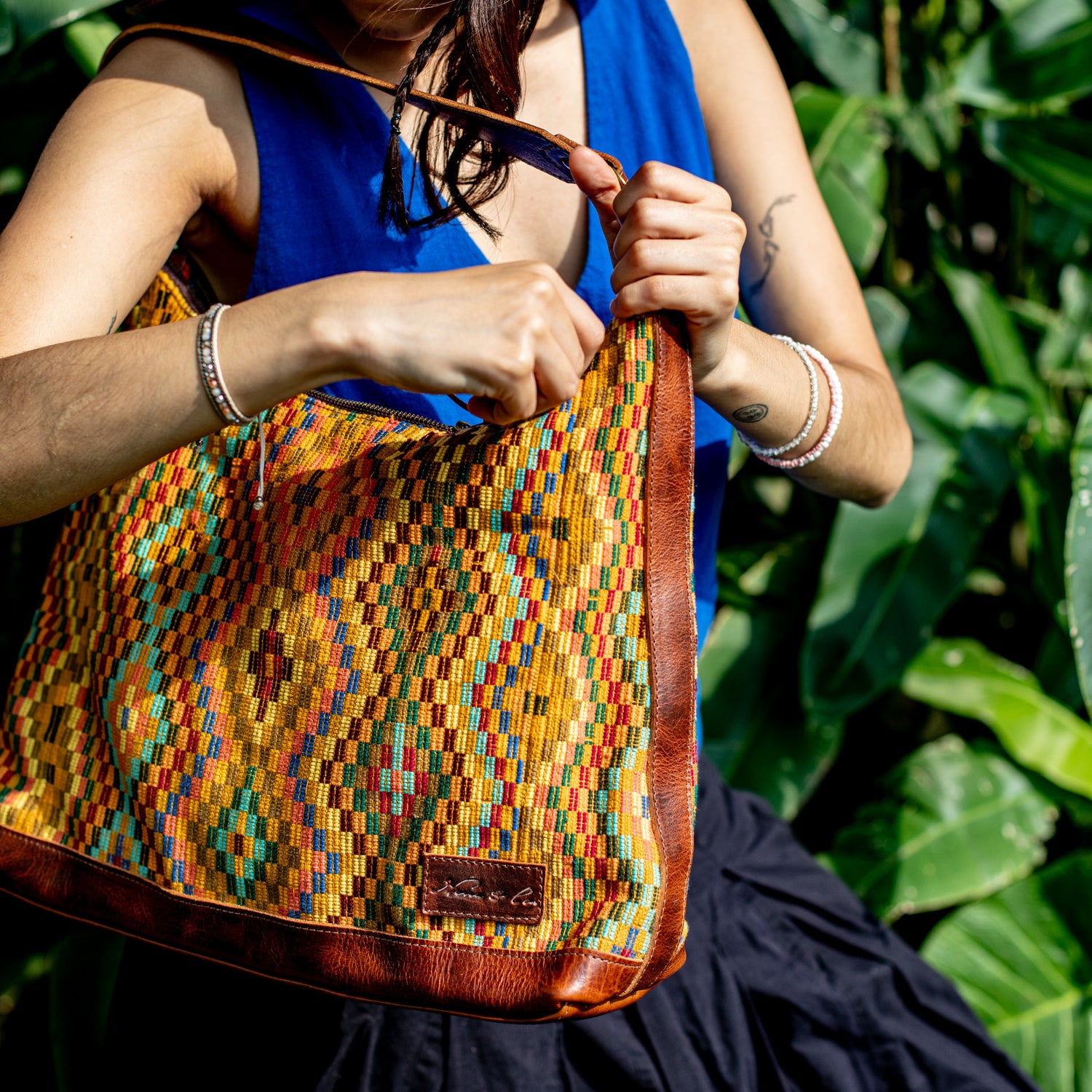 We make every effort to provide our customers with the best-handcrafted and high-quality bags. Please note that all our processes to make the bags are done by hand, from curing, cutting, and treating the leather to using up-cycled huipils. Our bags have natural characteristics and qualities that should not be considered as flaws or as damage because they do not interfere with the functionality of the bag. We up-cycle vintage Maya clothing to make beautiful one-of-a-kind products. Many times you will find snags in the pattern. This is normal. Should your patterned huipil snag you can snip the loose threads with scissors. Do not pull them.
