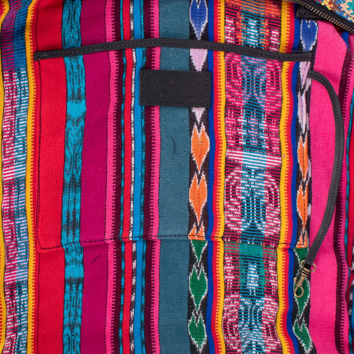 Many unique Maya symbols can be found in our One of a Kind Collection. The fabric we use for this collection is made from upcycled vintage huipiles (traditional attire worn by women in Guatemala) that were handwoven by Artisans up to 10 years ago, and they have lived a full life before being incorporated into your leather bag!