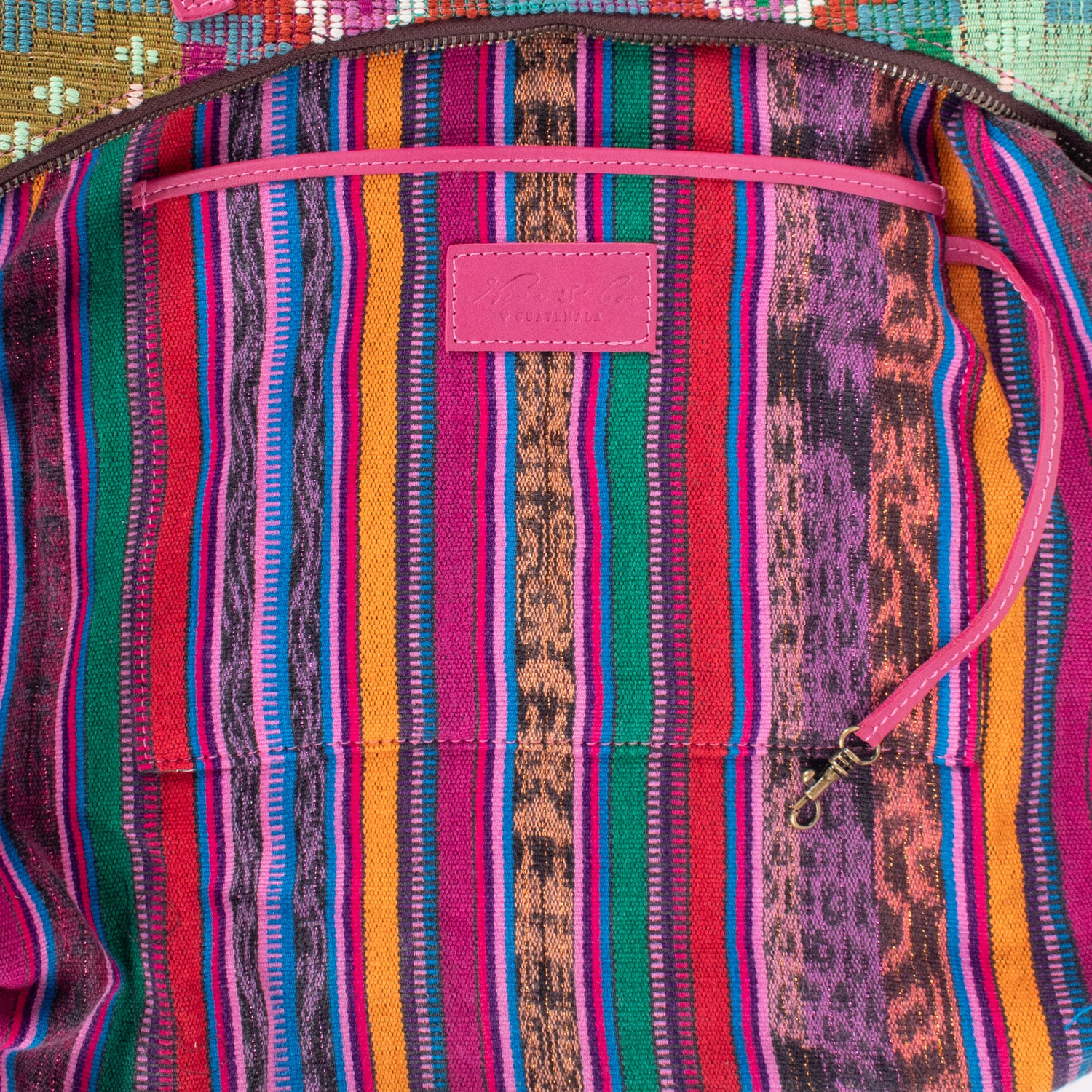 Many unique Maya symbols can be found in our One of a Kind Collection. The fabric we use for this collection is made from upcycled vintage huipiles (traditional attire worn by women in Guatemala) that were handwoven by Artisans up to 10 years ago, and they have lived a full life before being incorporated into your leather bag!