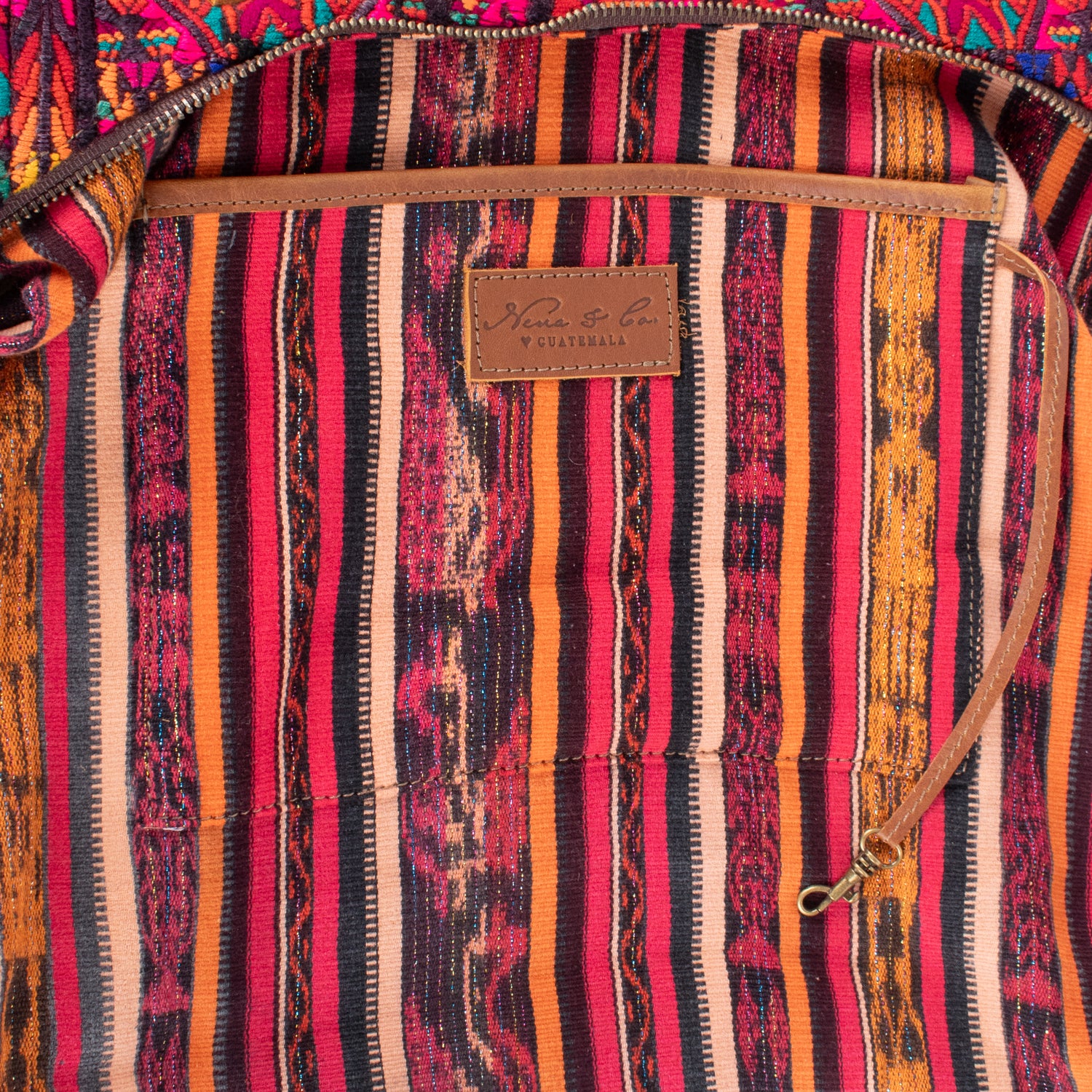 Many unique Maya symbols can be found in our One of a Kind Collection. The fabric we use for this collection is made from upcycled vintage huipiles (traditional attire worn by women in Guatemala) that were handwoven by Artisans up to 10 years ago, and they have lived a full life before being incorporated into your leather bag!