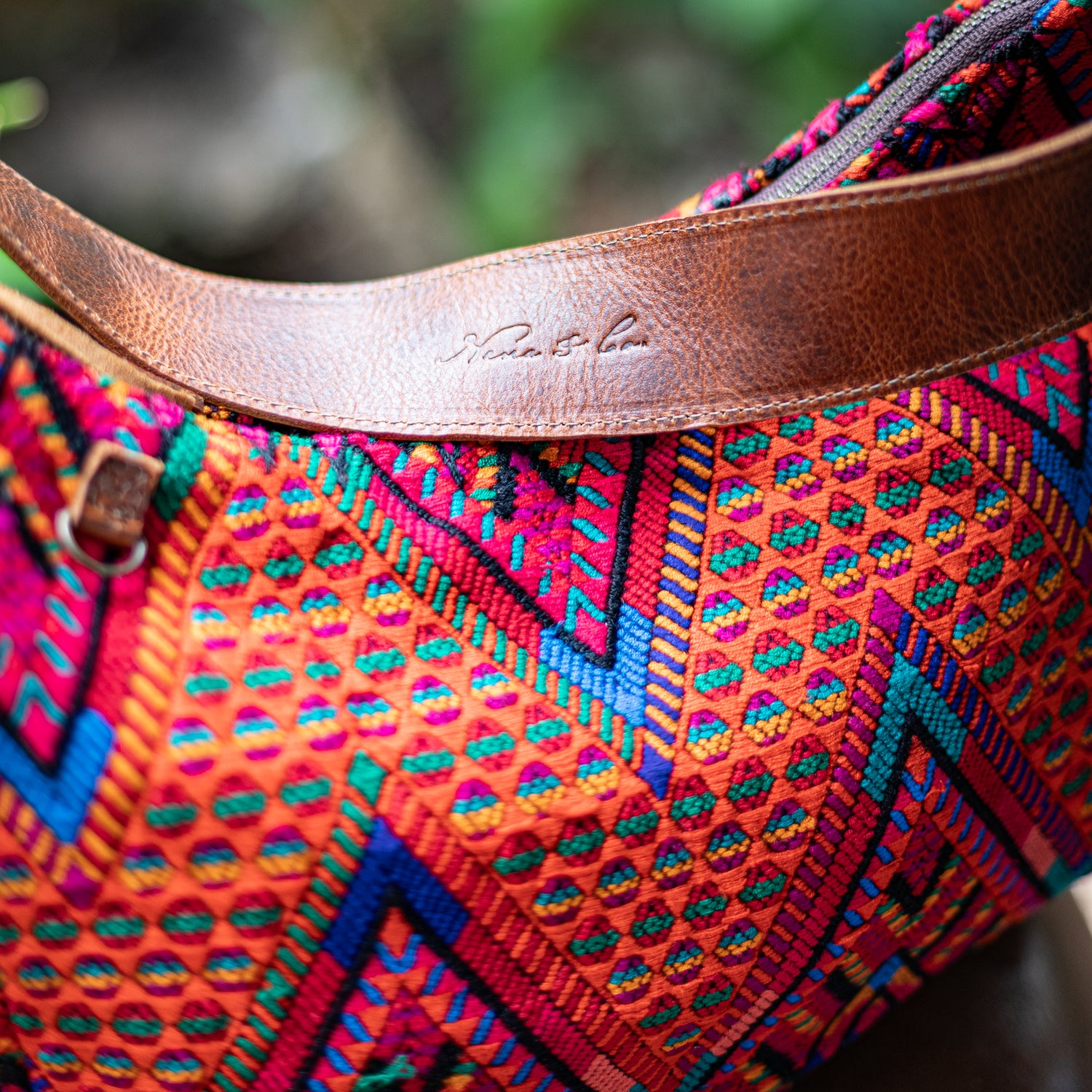 We make every effort to provide our customers with the best-handcrafted and high-quality bags. Please note that all our processes to make the bags are done by hand, from curing, cutting, and treating the leather to using up-cycled huipils. Our bags have natural characteristics and qualities that should not be considered as flaws or as damage because they do not interfere with the functionality of the bag. We up-cycle vintage Maya clothing to make beautiful one-of-a-kind products. Many times you will find snags in the pattern. This is normal. Should your patterned huipil snag you can snip the loose threads with scissors. Do not pull them.