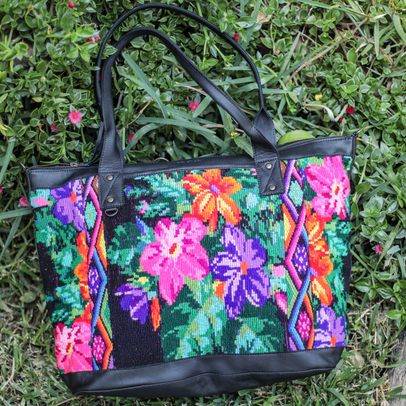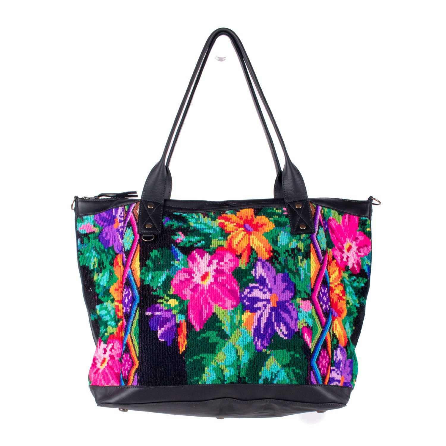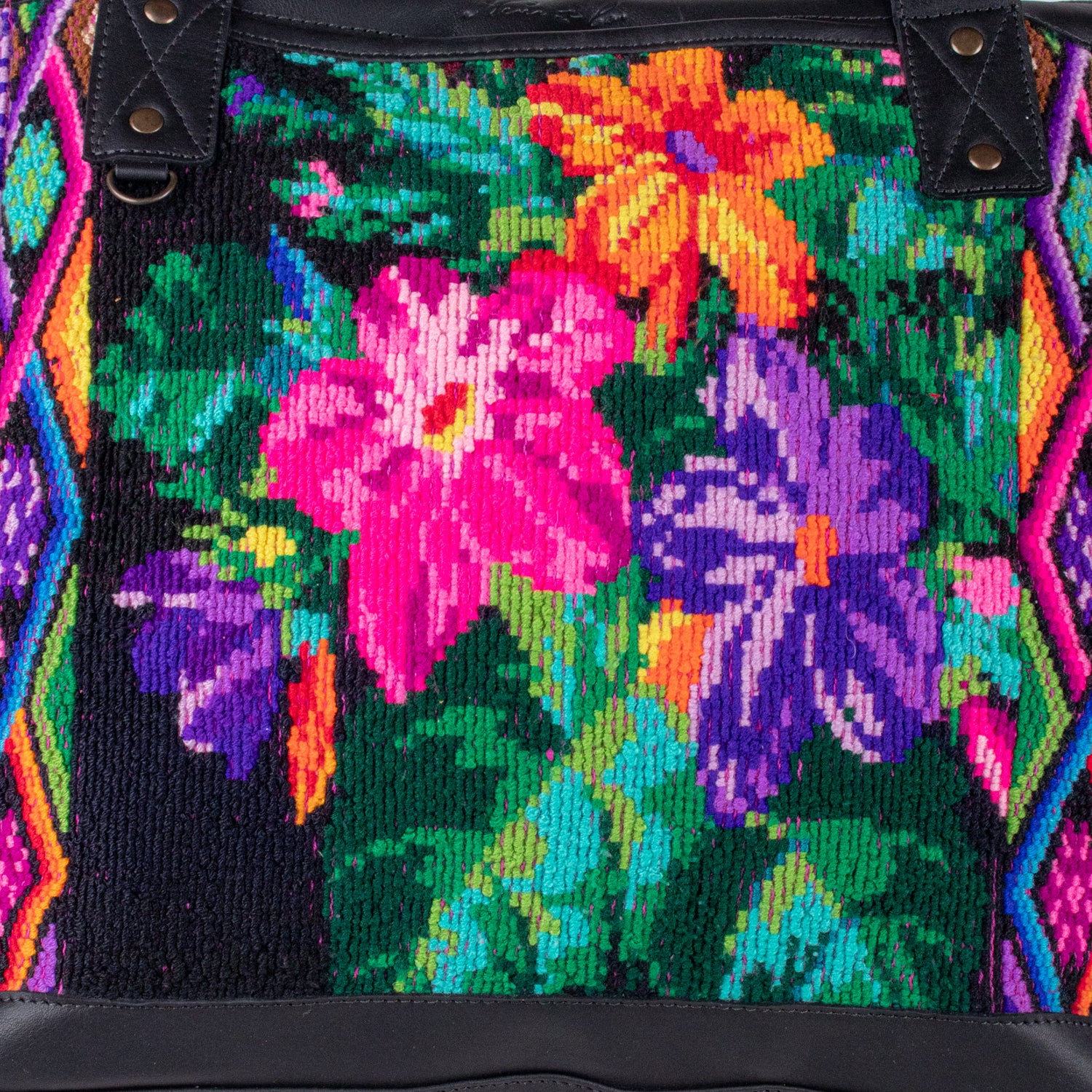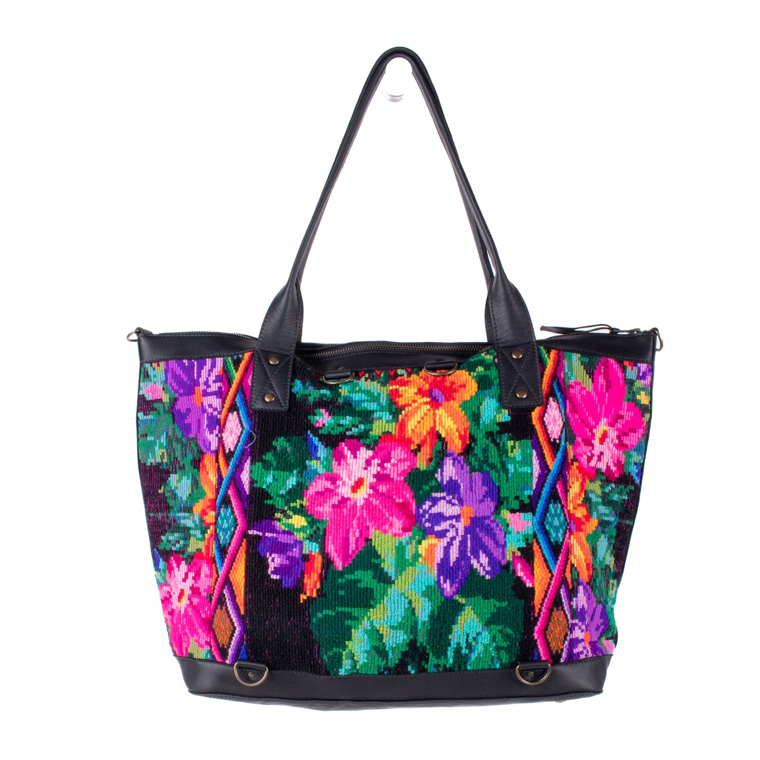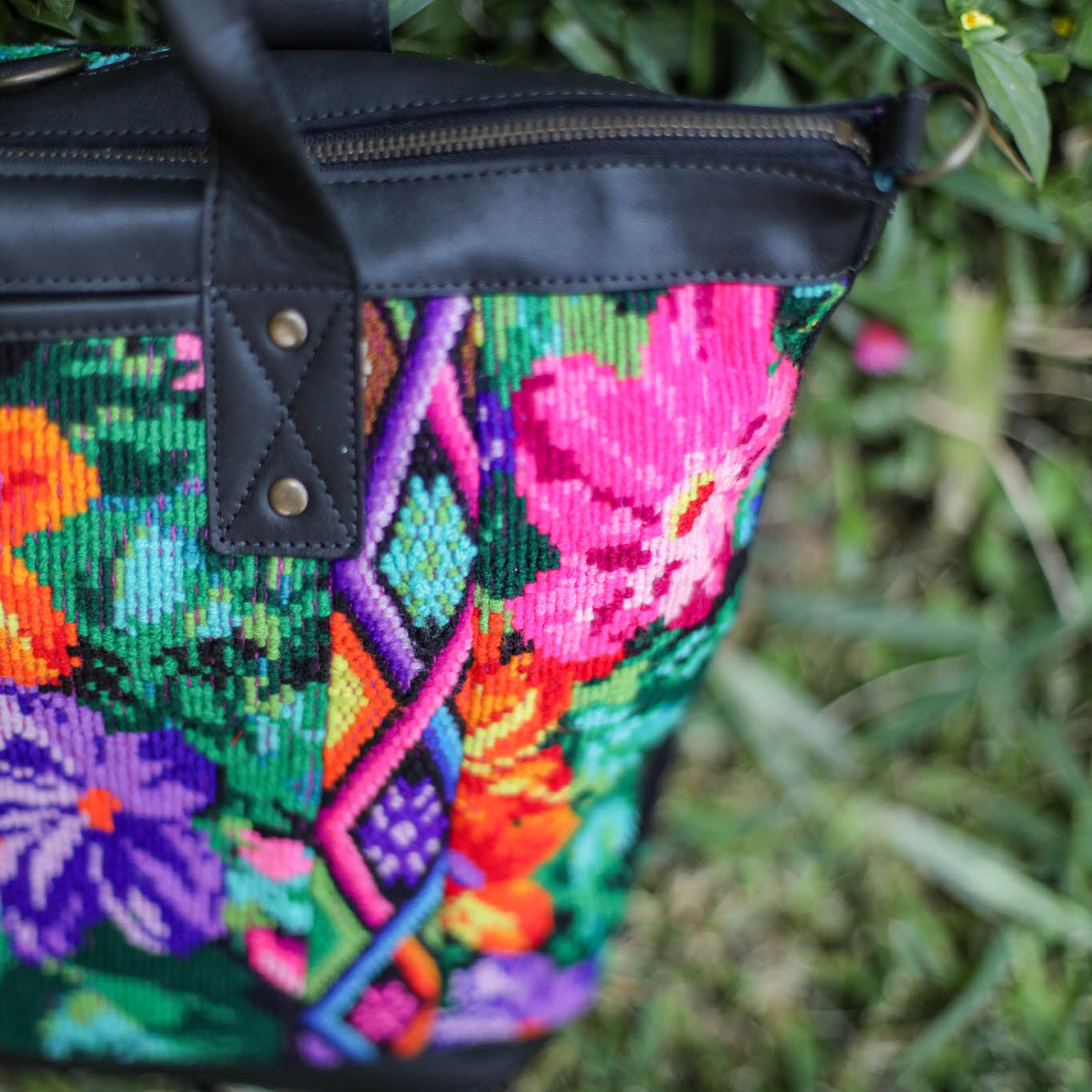 Many unique Maya symbols can be found in our One of a Kind Collection. The fabric we use for this collection is made from upcycled vintage huipiles (traditional attire worn by women in Guatemala) that were handwoven by Artisans up to 10 years ago, and they have lived a full life before being incorporated into your leather bag!