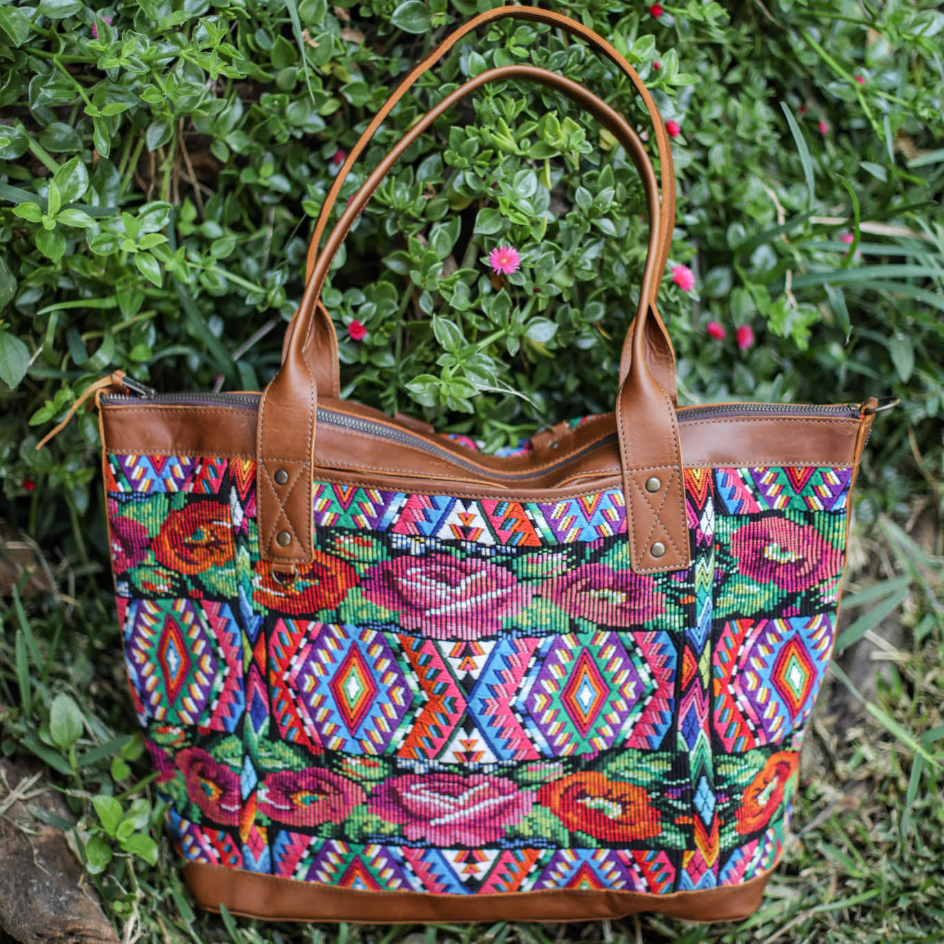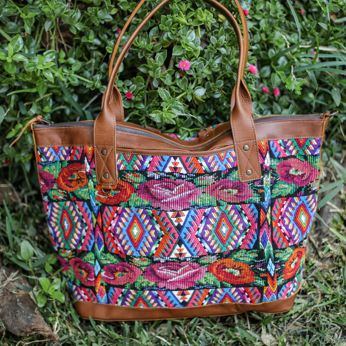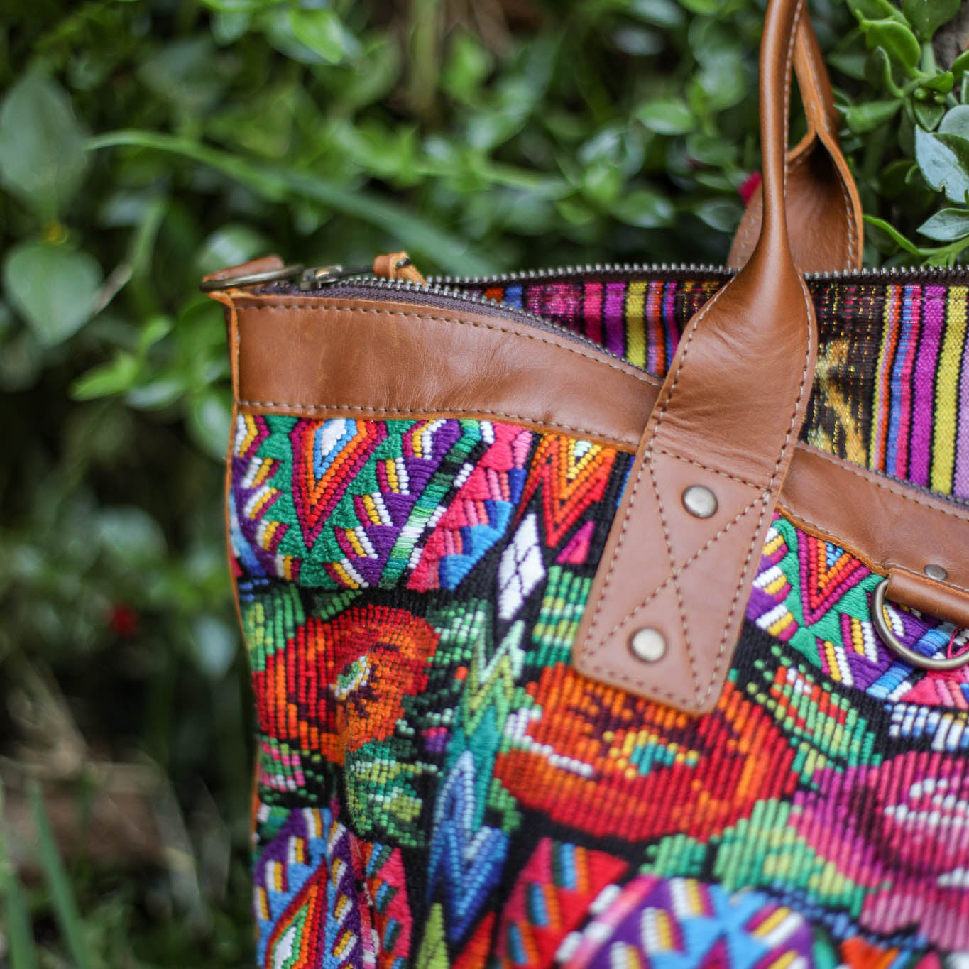 We make every effort to provide our customers with the best-handcrafted and high-quality bags. Please note that all our processes to make the bags are done by hand, from curing, cutting, and treating the leather to using up-cycled huipils. Our bags have natural characteristics and qualities that should not be considered as flaws or as damage because they do not interfere with the functionality of the bag. We up-cycle vintage Maya clothing to make beautiful one-of-a-kind products. Many times you will find snags in the pattern. This is normal. Should your patterned huipil snag you can snip the loose threads with scissors. Do not pull them.