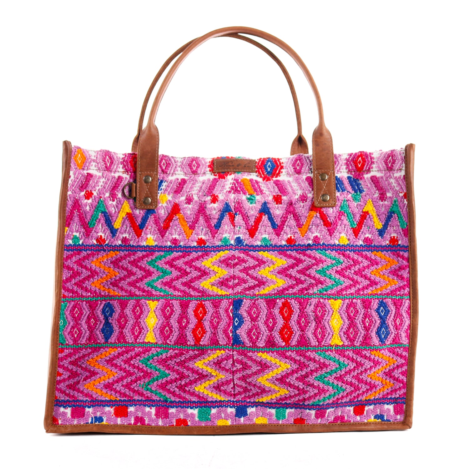Many unique Maya symbols can be found in our One of a Kind Collection. The fabric we use for this collection is made from upcycled vintage huipiles (traditional attire worn by women in Guatemala) that were handwoven by Artisans up to 10 years ago, and they have lived a full life before being incorporated into your leather bag!