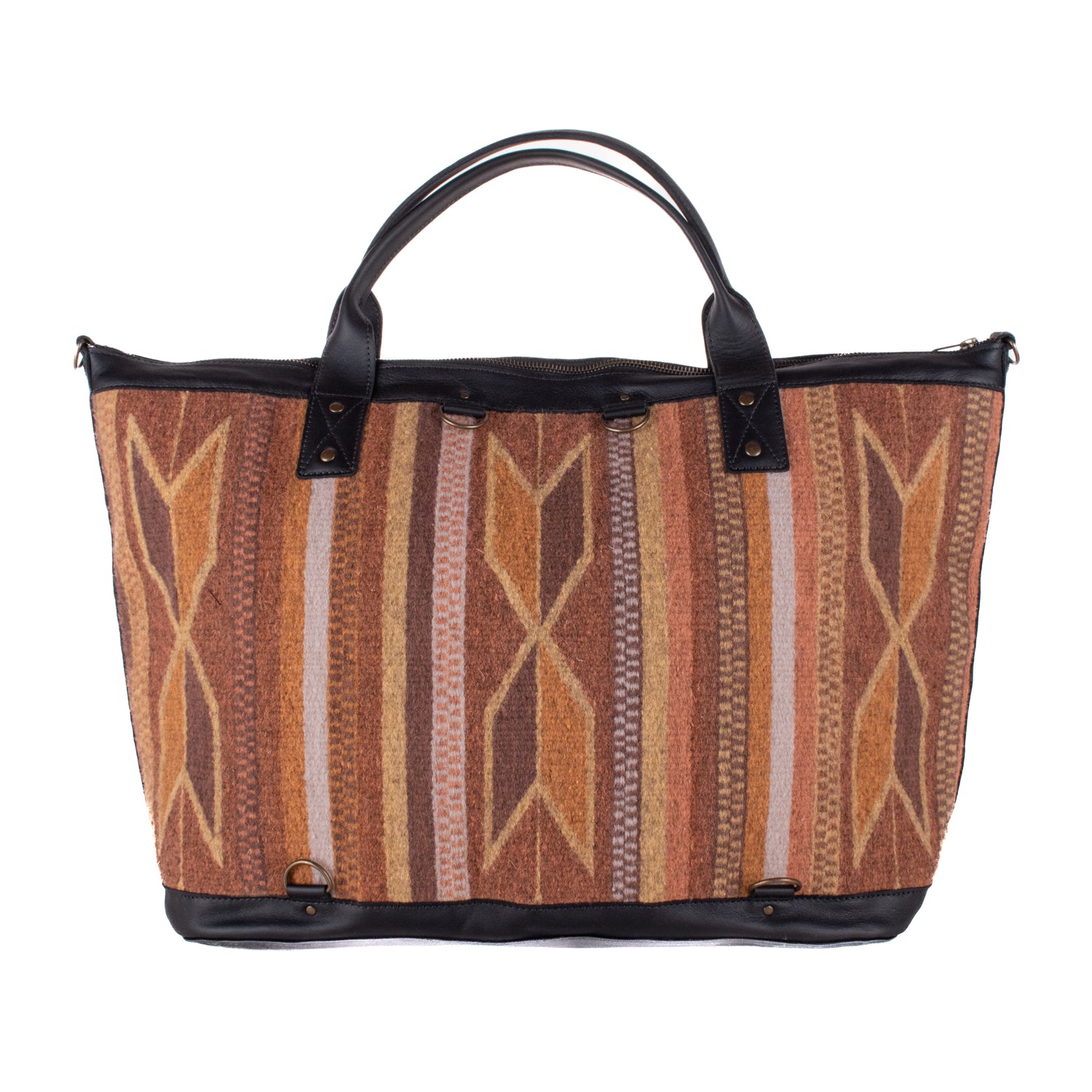 Many unique Maya symbols can be found in our One of a Kind Collection. The fabric we use for this collection is made from upcycled vintage huipiles (traditional attire worn by women in Guatemala) that were handwoven by Artisans up to 10 years ago, and they have lived a full life before being incorporated into your leather bag!