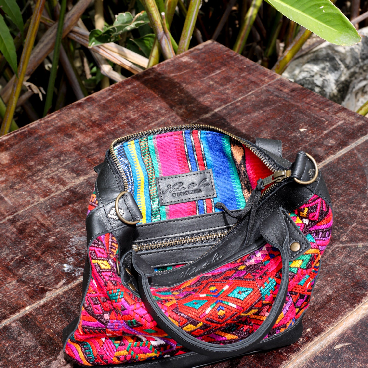 We make every effort to provide our customers with the best-handcrafted and high-quality bags. Please note that all our processes to make the bags are done by hand, from curing, cutting, and treating the leather to using up-cycled huipils. Our bags have natural characteristics and qualities that should not be considered as flaws or as damage because they do not interfere with the functionality of the bag. We up-cycle vintage Maya clothing to make beautiful one-of-a-kind products. Many times you will find snags in the pattern. This is normal. Should your patterned huipil snag you can snip the loose threads with scissors. Do not pull them.