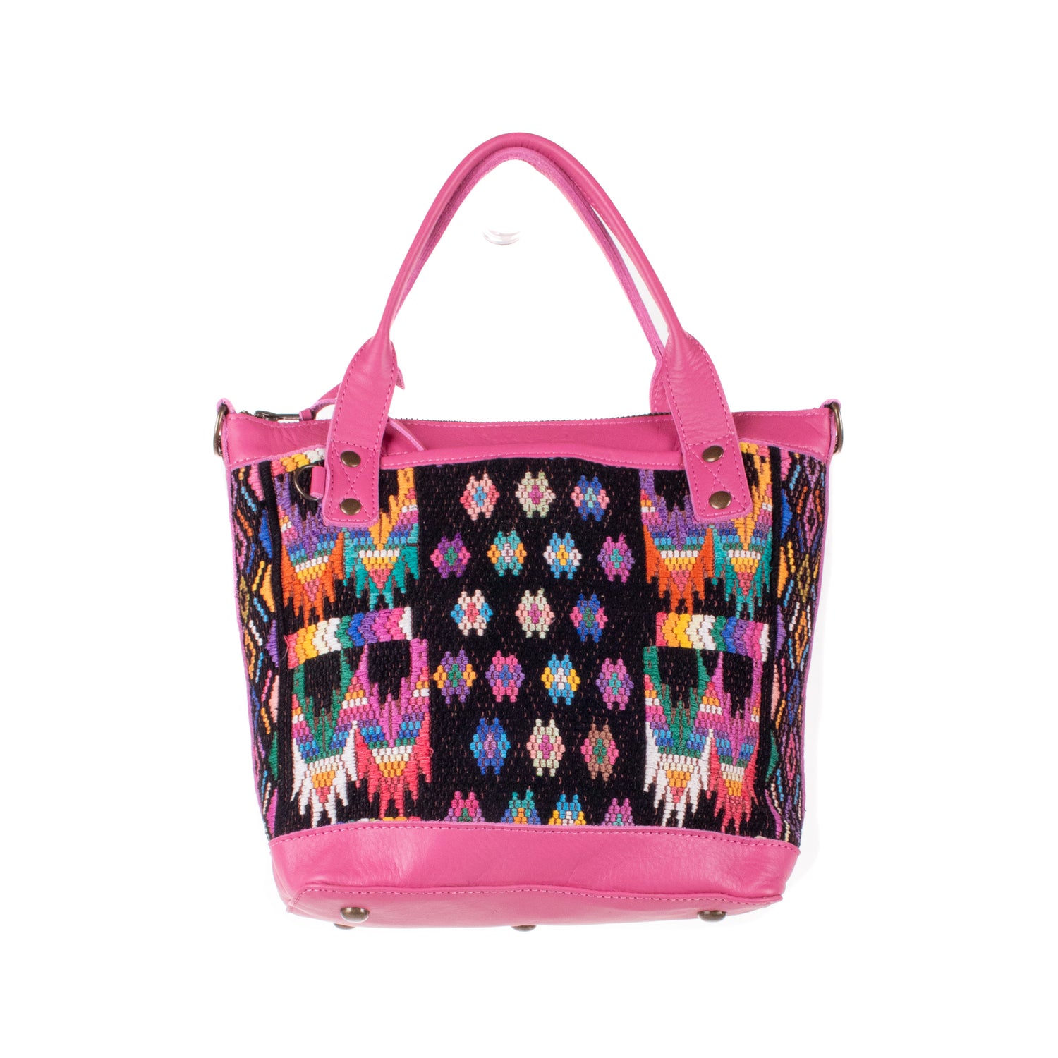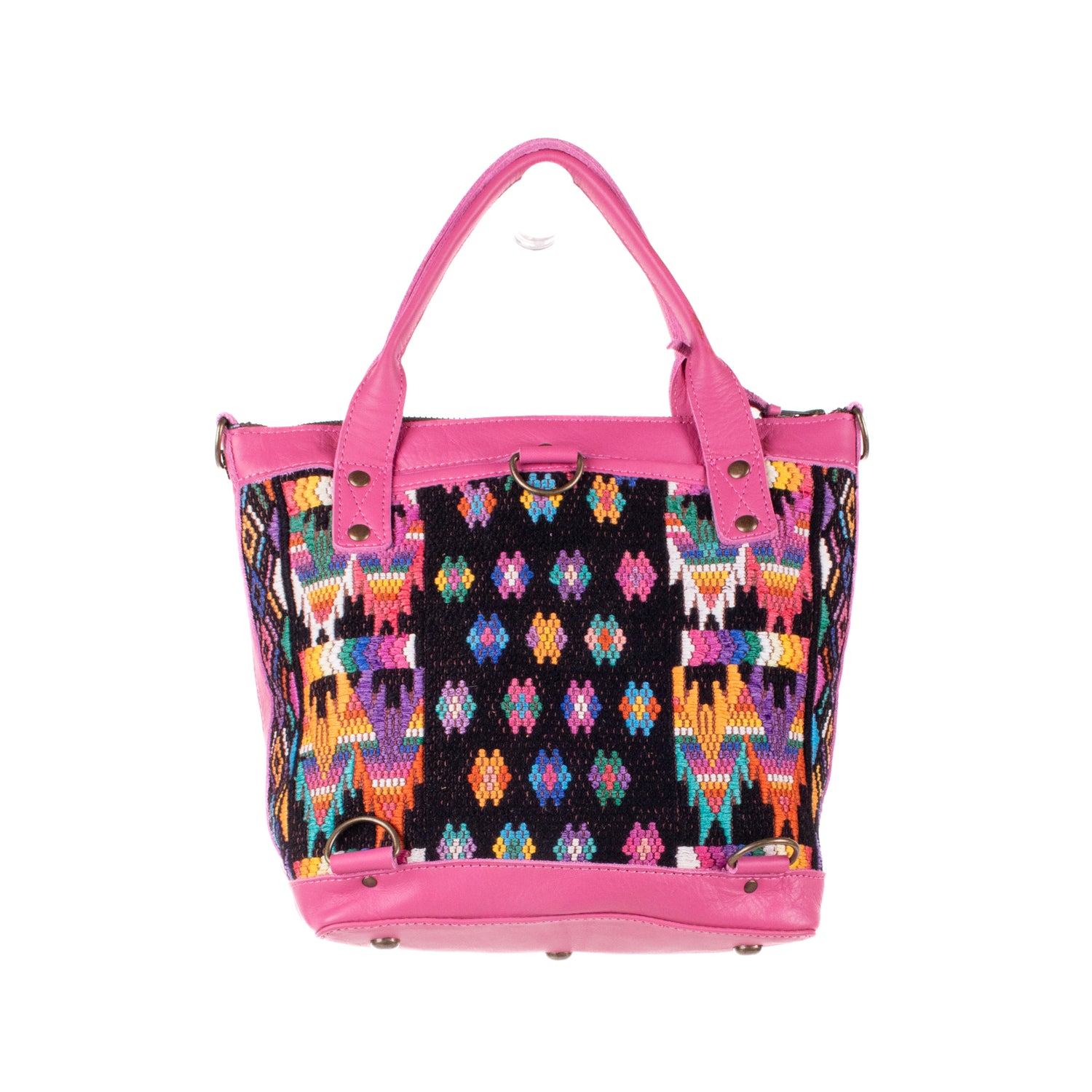 Many unique Maya symbols can be found in our One of a Kind Collection. The fabric we use for this collection is made from upcycled vintage huipiles (traditional attire worn by women in Guatemala) that were handwoven by Artisans up to 10 years ago, and they have lived a full life before being incorporated into your leather bag!