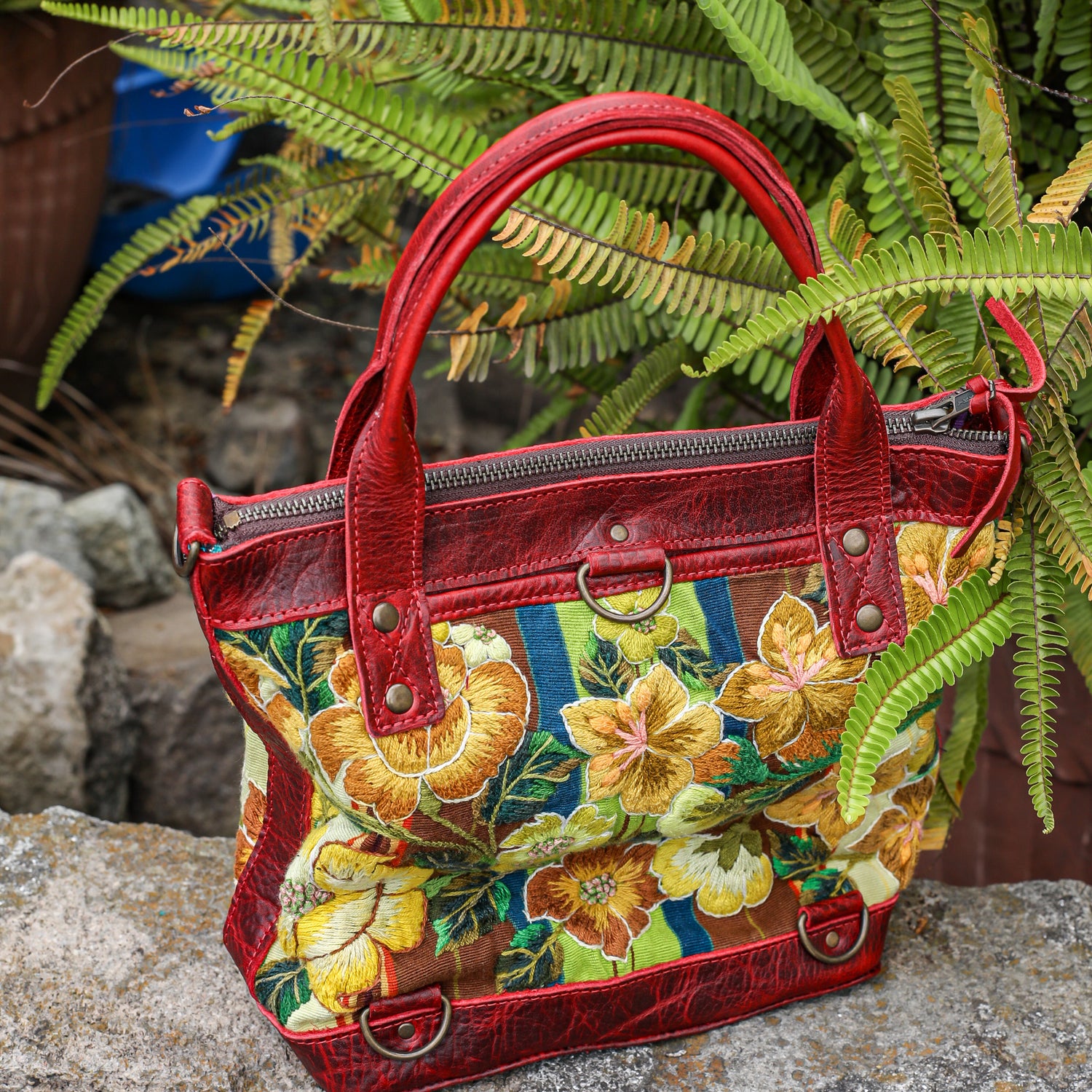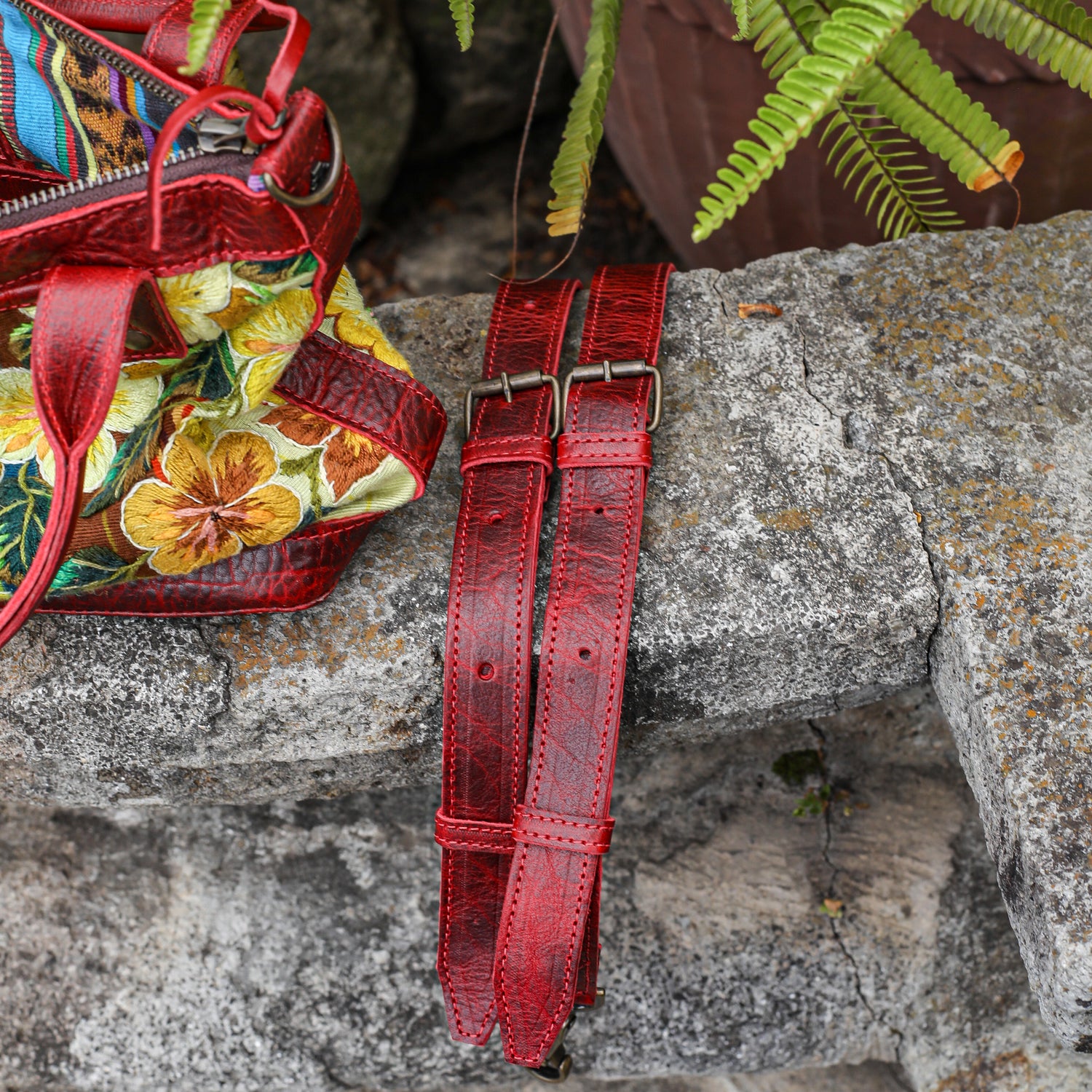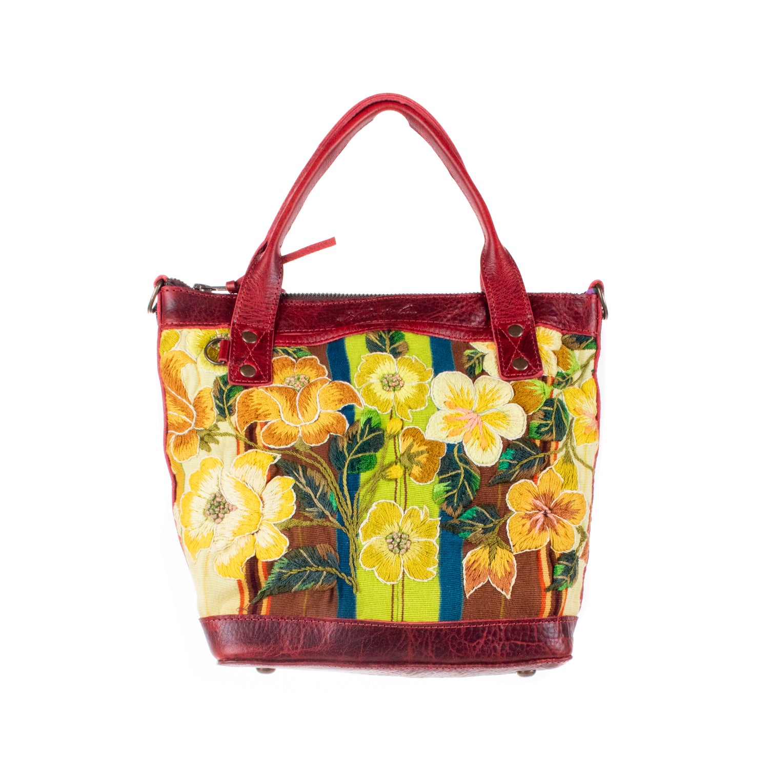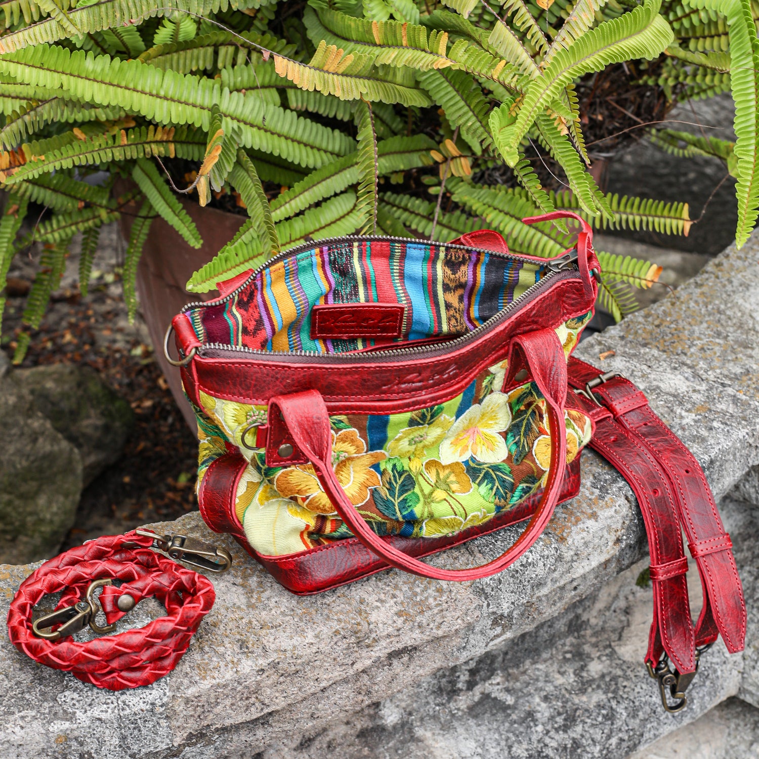 We make every effort to provide our customers with the best-handcrafted and high-quality bags. Please note that all our processes to make the bags are done by hand, from curing, cutting, and treating the leather to using up-cycled huipils. Our bags have natural characteristics and qualities that should not be considered as flaws or as damage because they do not interfere with the functionality of the bag. We up-cycle vintage Maya clothing to make beautiful one-of-a-kind products. Many times you will find snags in the pattern. This is normal. Should your patterned huipil snag you can snip the loose threads with scissors. Do not pull them.