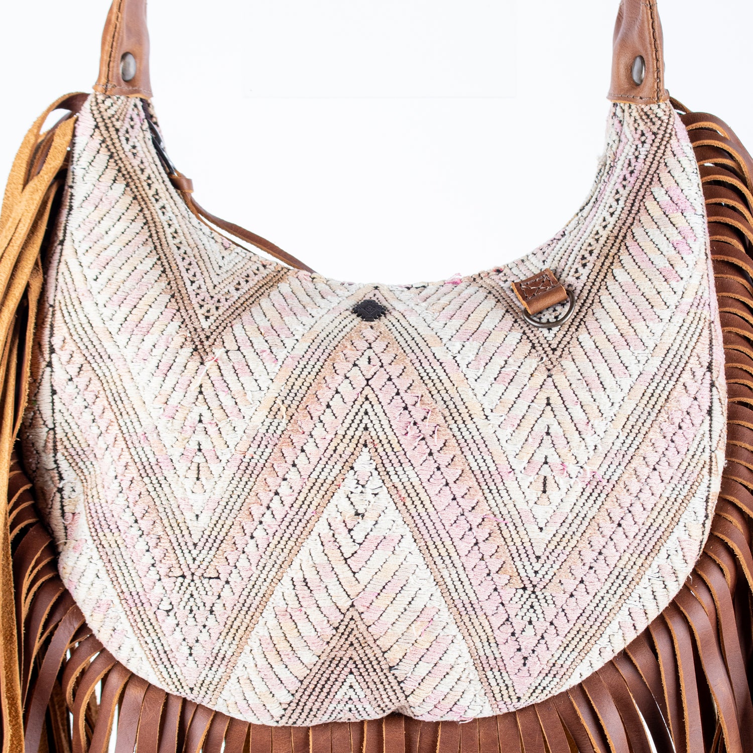 Small boho fringe saddle bag - ooak huipil - cafe - no. 17137