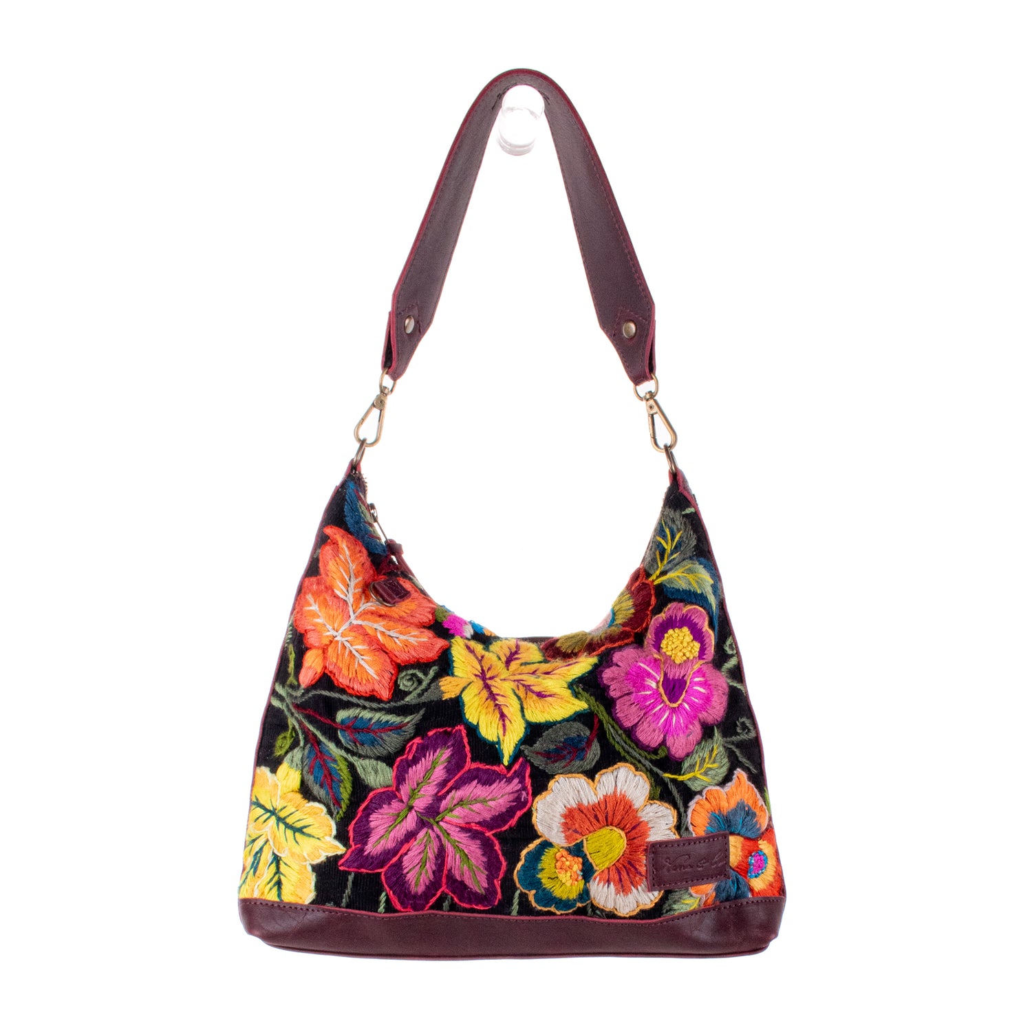 Small penelope bag - h&s embroidered floral - vino tinto - no. 19868