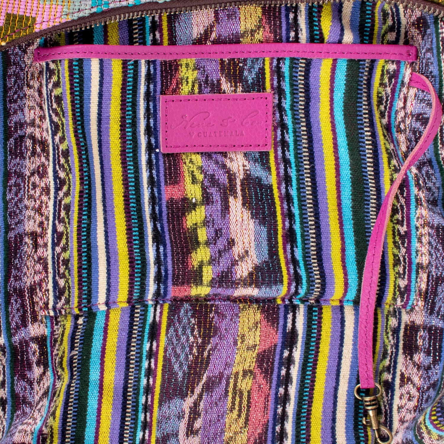 Many unique Maya symbols can be found in our One of a Kind Collection. The fabric we use for this collection is made from upcycled vintage huipiles (traditional attire worn by women in Guatemala) that were handwoven by Artisans up to 10 years ago, and they have lived a full life before being incorporated into your leather bag!