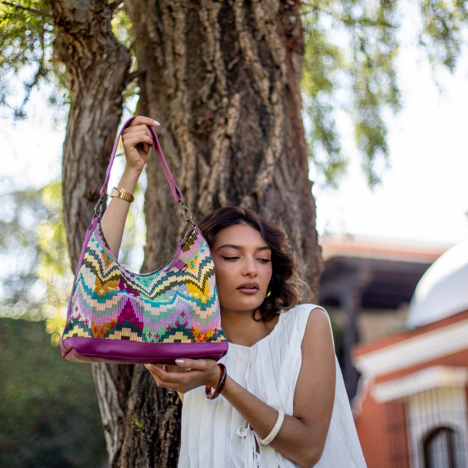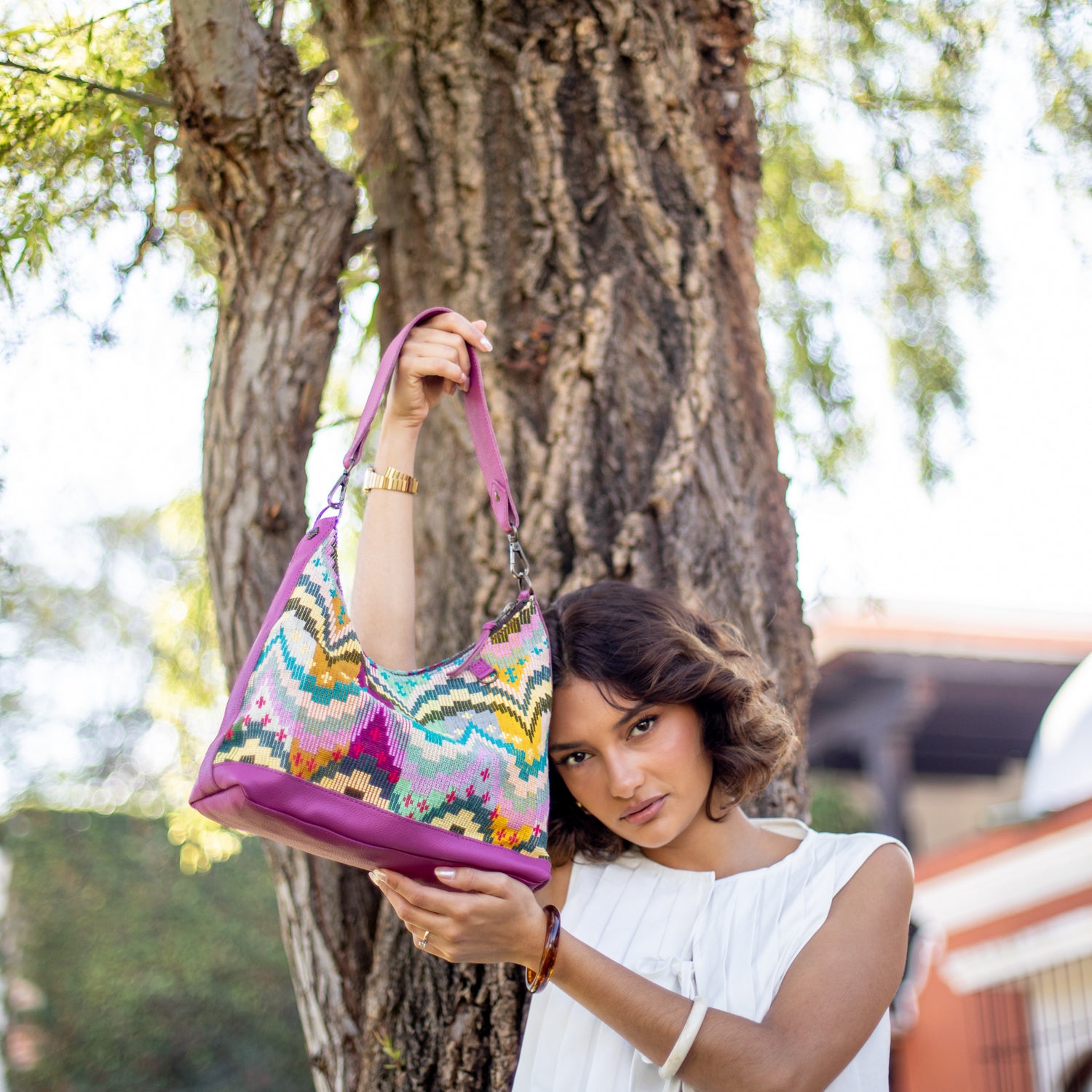 We make every effort to provide our customers with the best-handcrafted and high-quality bags. Please note that all our processes to make the bags are done by hand, from curing, cutting, and treating the leather to using up-cycled huipils. Our bags have natural characteristics and qualities that should not be considered as flaws or as damage because they do not interfere with the functionality of the bag. We up-cycle vintage Maya clothing to make beautiful one-of-a-kind products. Many times you will find snags in the pattern. This is normal. Should your patterned huipil snag you can snip the loose threads with scissors. Do not pull them.