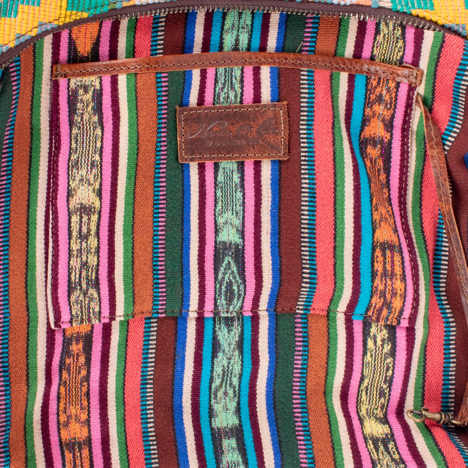 Many unique Maya symbols can be found in our One of a Kind Collection. The fabric we use for this collection is made from upcycled vintage huipiles (traditional attire worn by women in Guatemala) that were handwoven by Artisans up to 10 years ago, and they have lived a full life before being incorporated into your leather bag!