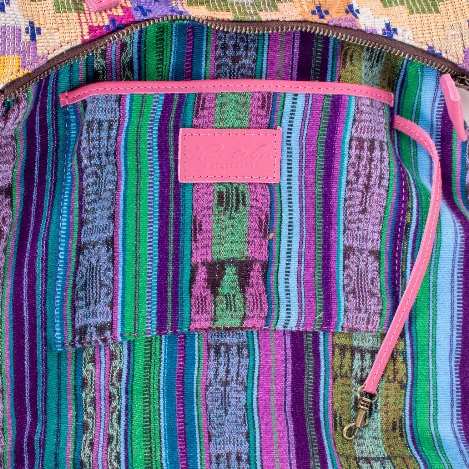 Many unique Maya symbols can be found in our One of a Kind Collection. The fabric we use for this collection is made from upcycled vintage huipiles (traditional attire worn by women in Guatemala) that were handwoven by Artisans up to 10 years ago, and they have lived a full life before being incorporated into your leather bag!