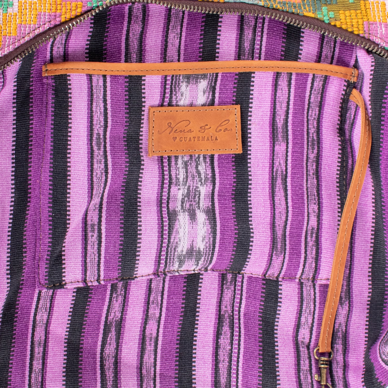 Many unique Maya symbols can be found in our One of a Kind Collection. The fabric we use for this collection is made from upcycled vintage huipiles (traditional attire worn by women in Guatemala) that were handwoven by Artisans up to 10 years ago, and they have lived a full life before being incorporated into your leather bag!