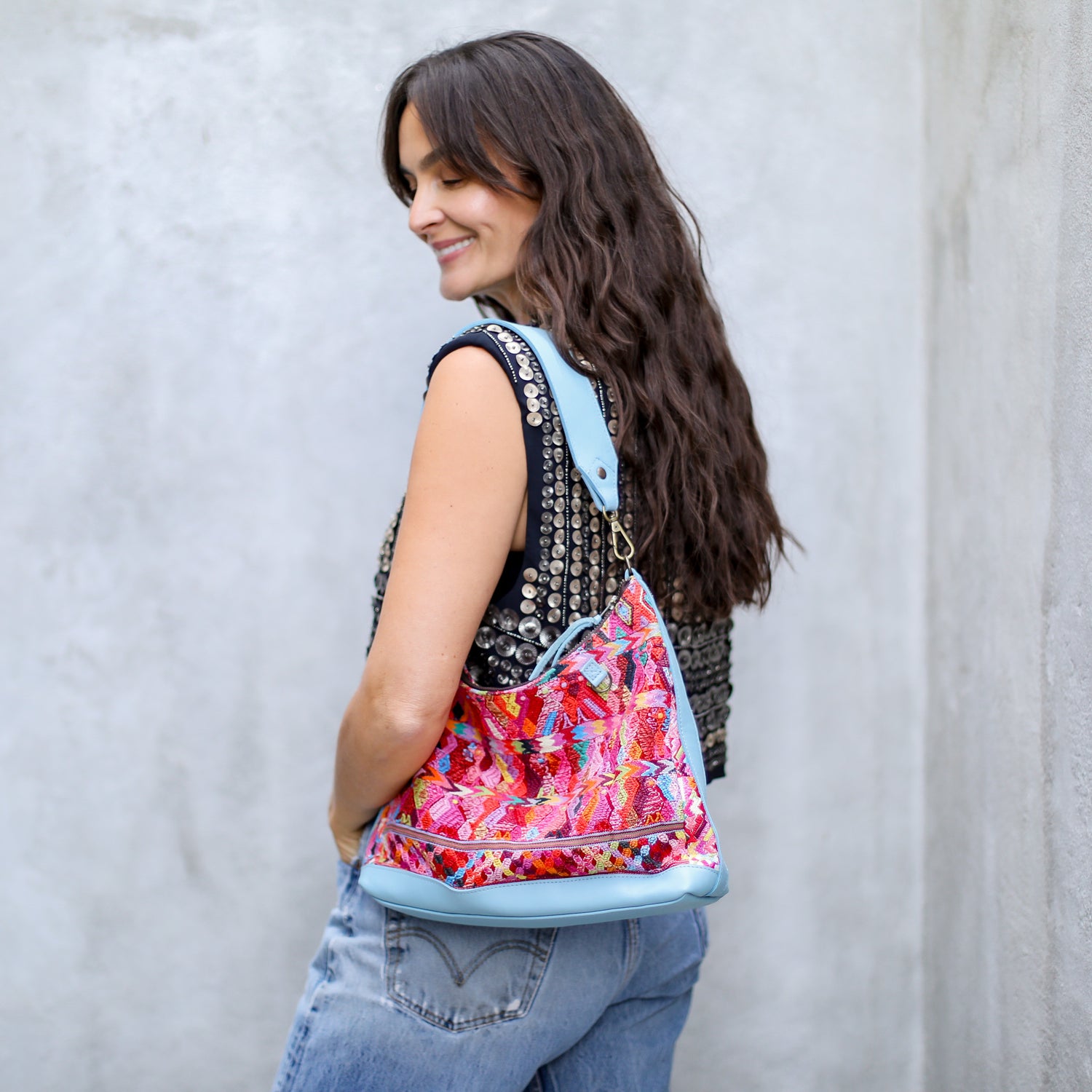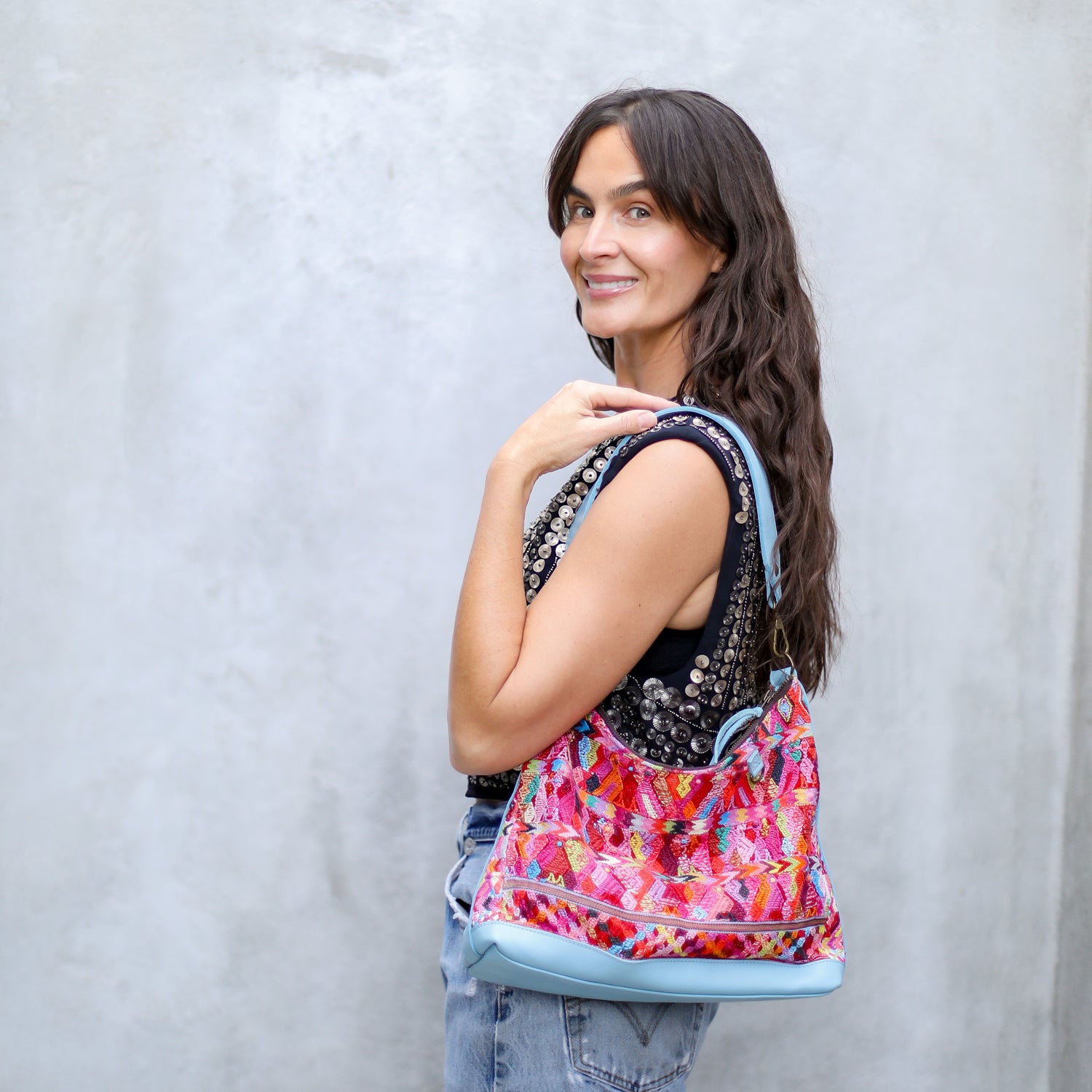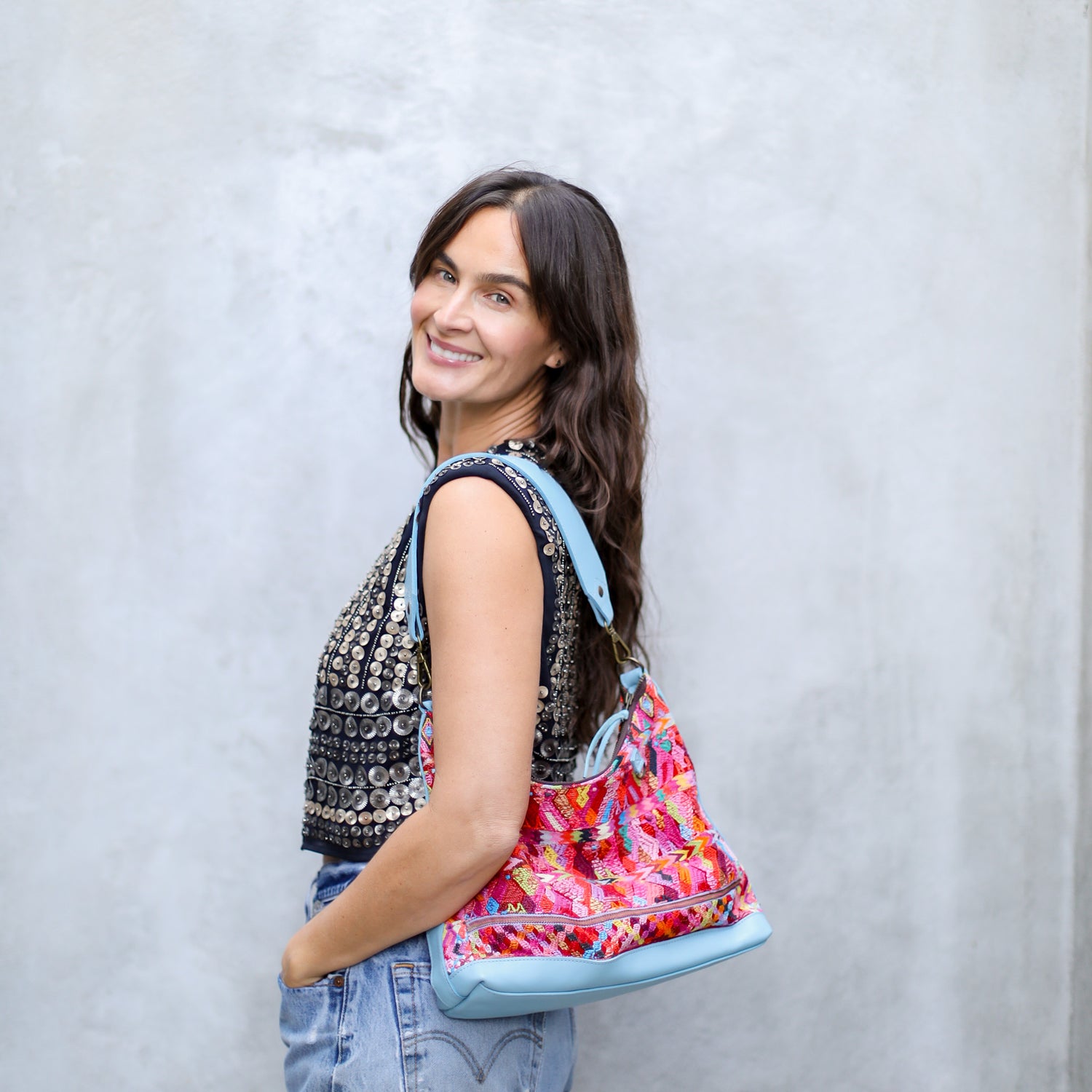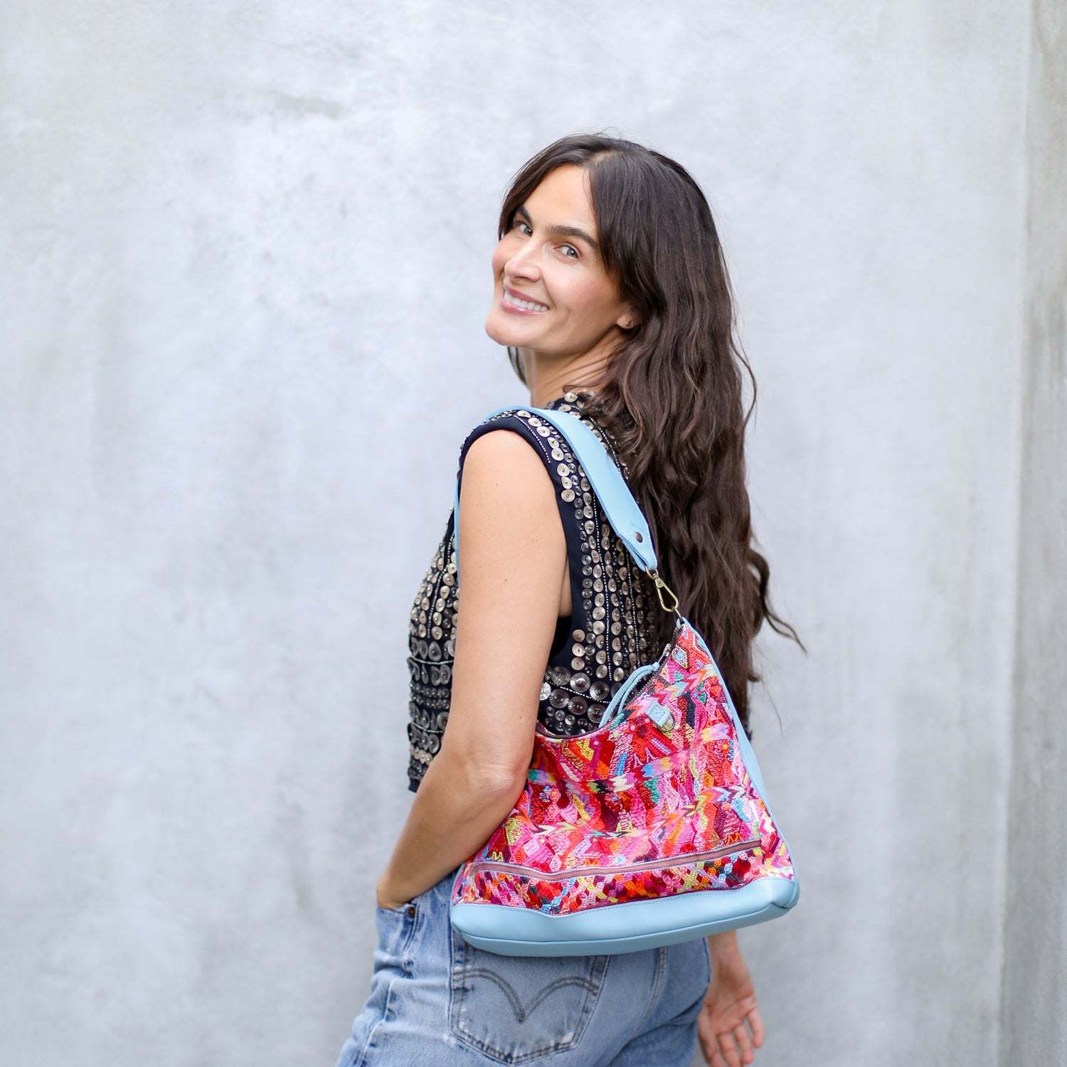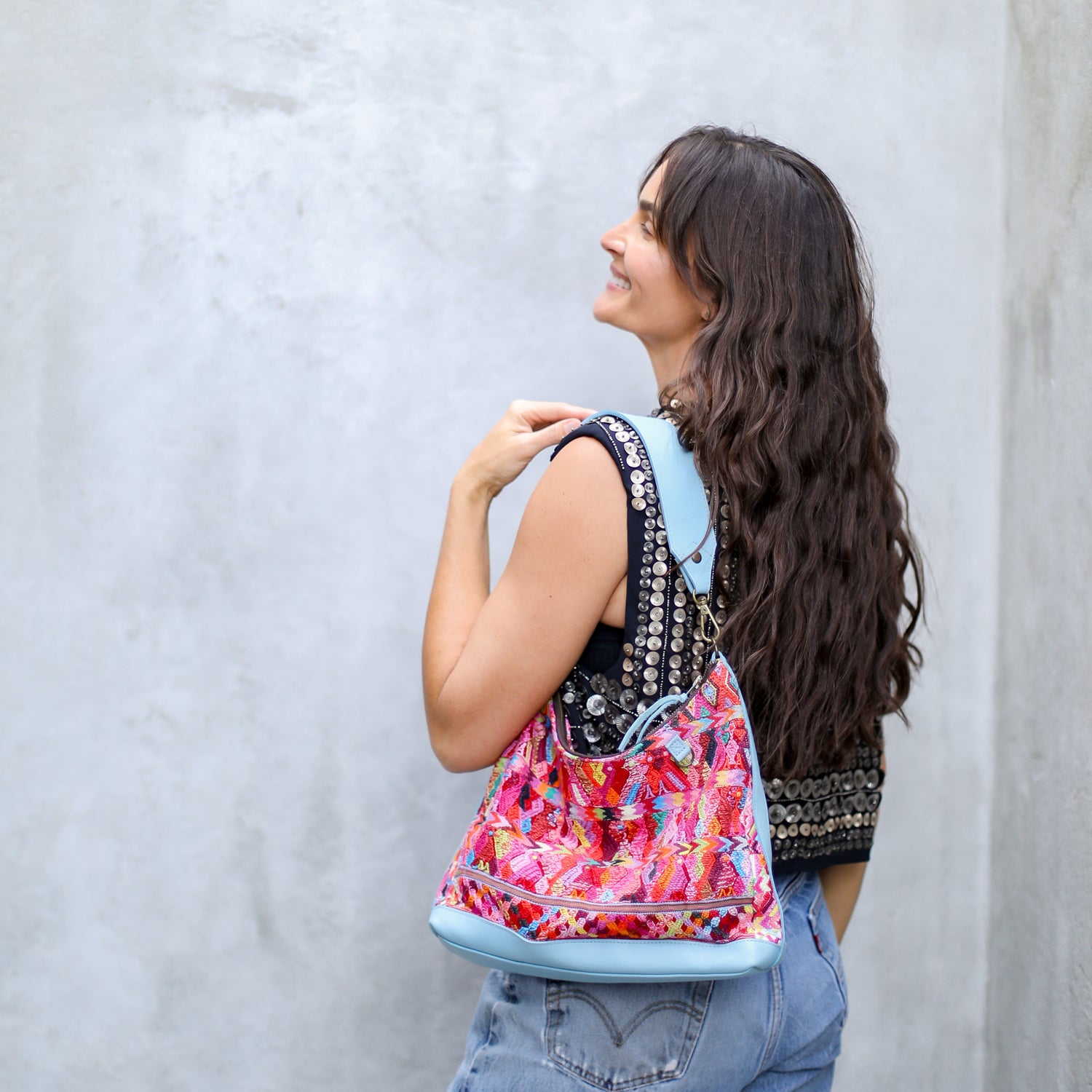 We make every effort to provide our customers with the best-handcrafted and high-quality bags. Please note that all our processes to make the bags are done by hand, from curing, cutting, and treating the leather to using up-cycled huipils. Our bags have natural characteristics and qualities that should not be considered as flaws or as damage because they do not interfere with the functionality of the bag. We up-cycle vintage Maya clothing to make beautiful one-of-a-kind products. Many times you will find snags in the pattern. This is normal. Should your patterned huipil snag you can snip the loose threads with scissors. Do not pull them.