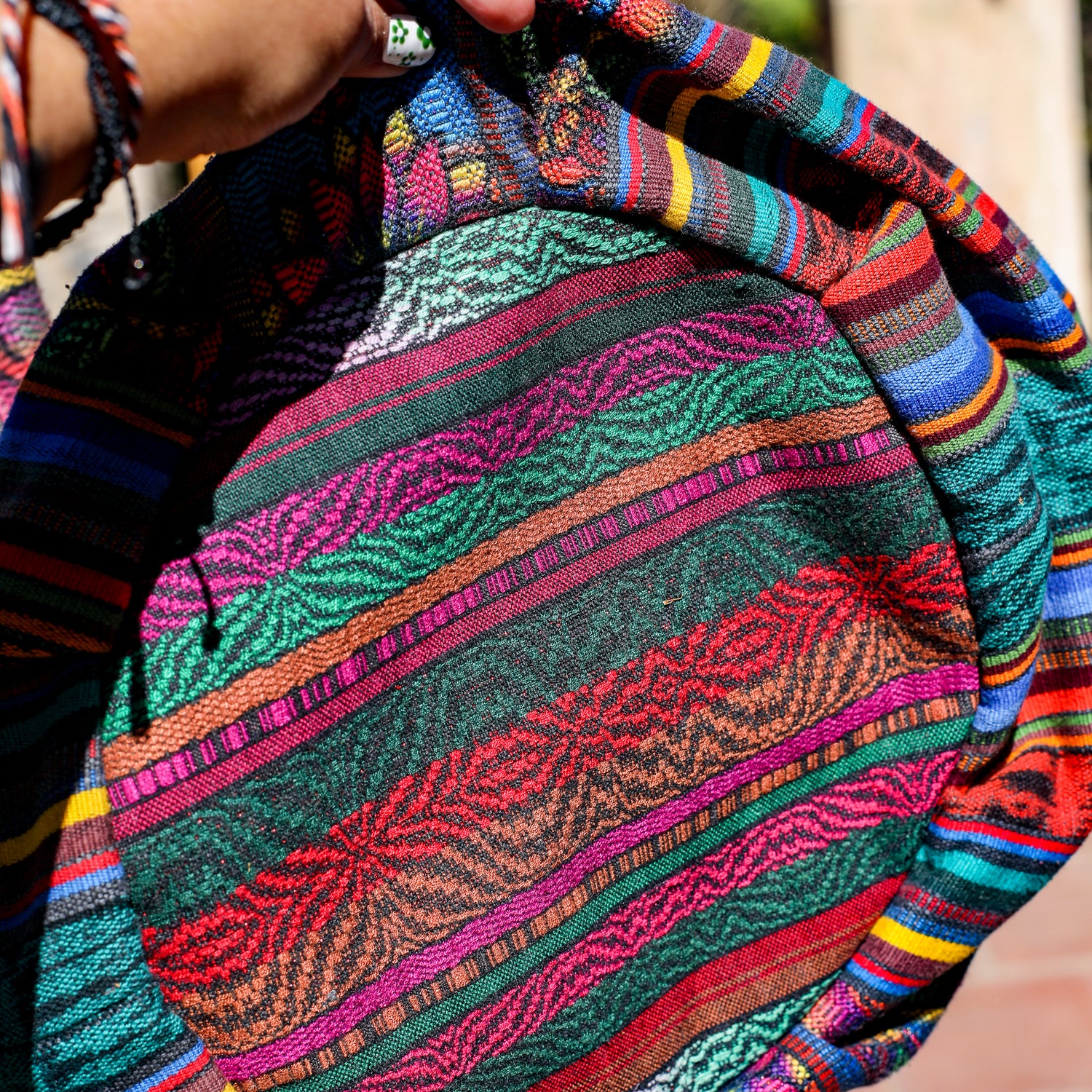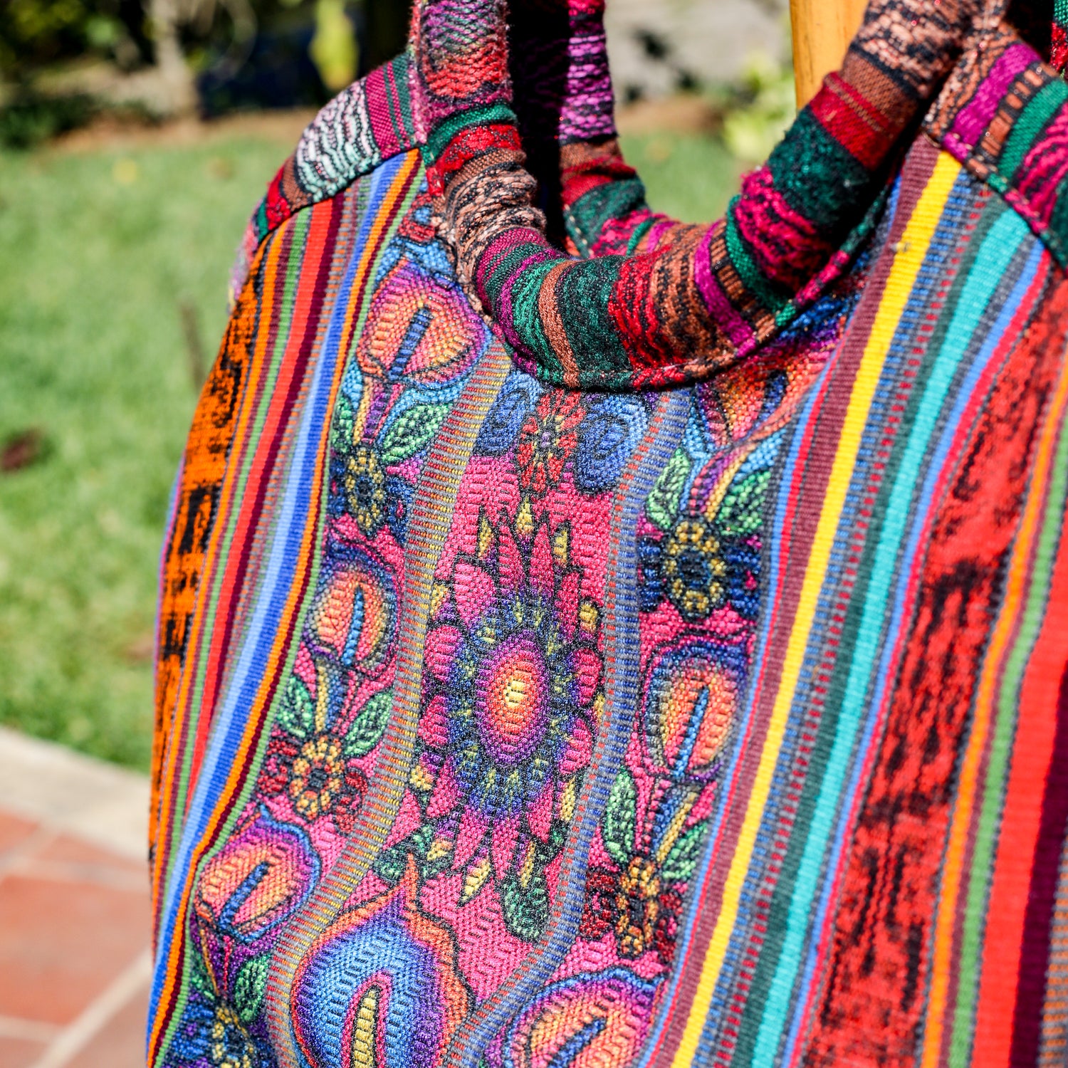 Our One Of A Kind Collection consists of products constructed using curated vintage fabrics purchased from loyal Guatemalan market vendors. All of the fabrics seen in the One Of A Kind Collection have lived a full life before being incorporated into your bag! These vintage fabrics were woven from the memory by a Guatemalan artisan up to 10 years ago; each pattern distinctive of the region where the artisan resides. Truly and completely one-of-a-kind, these bags are a masterpiece!