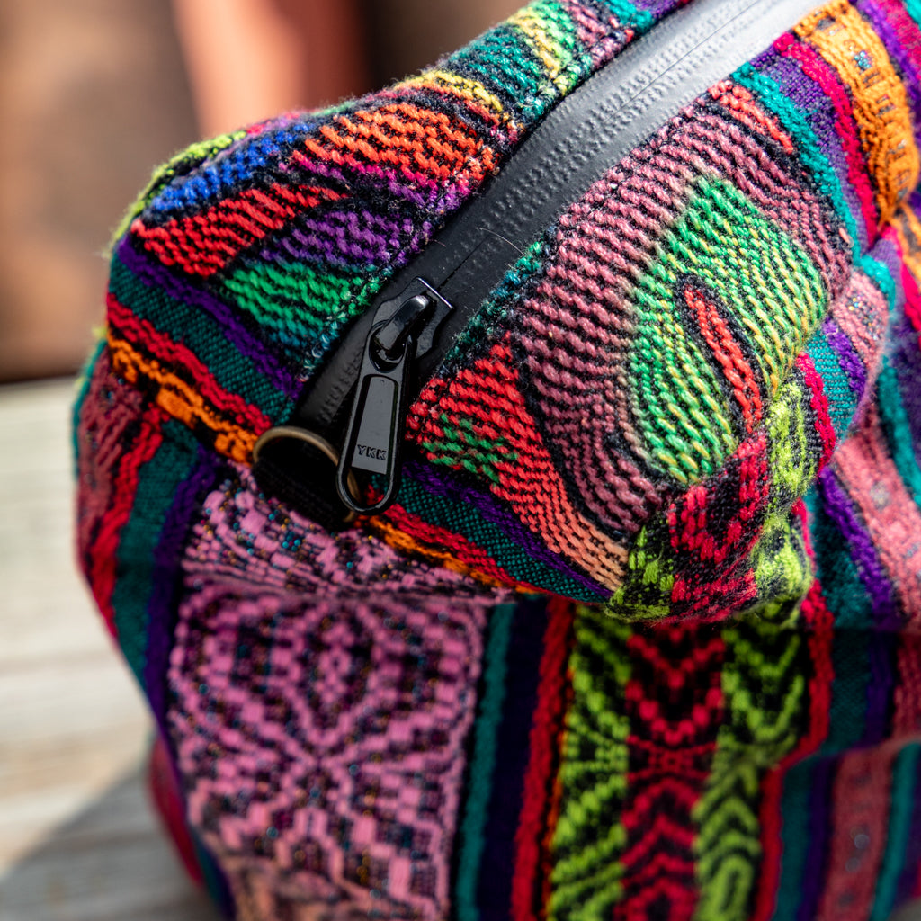 Our One Of A Kind Collection consists of products constructed using curated vintage fabrics purchased from loyal Guatemalan market vendors. All of the fabrics seen in the One Of A Kind Collection have lived a full life before being incorporated into your Nena product! These vintage fabrics were woven from the memory by a Guatemalan artisan up to 10 years ago; each pattern distinctive of the region where the artisan resides. Truly and completely one-of-a-kind, these products are a masterpiece!