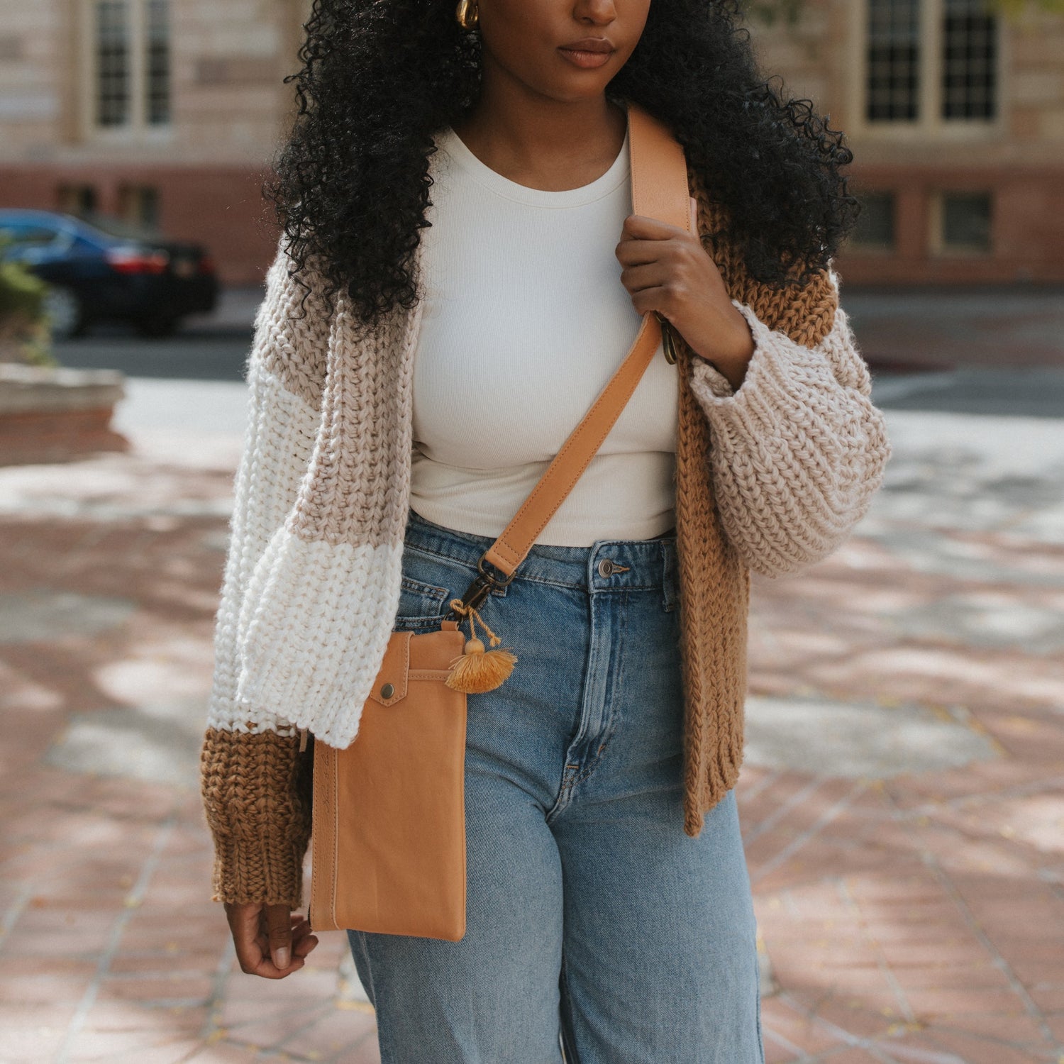 Everything clutch + utility strap set - full leather - sandstone