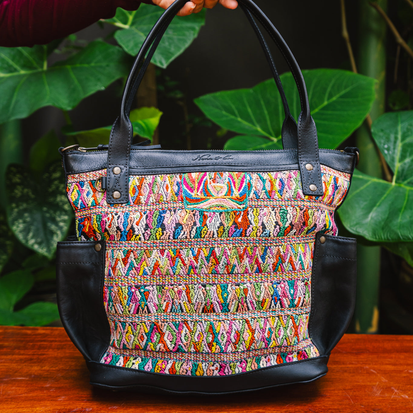 The huipiles in this collection were thoughtfully curated by Ali Hynek, owner and CEO of Nena & Co., who worked directly with our Guatemalan artisans to select the finest pieces to pair with Nena's full grain leather.