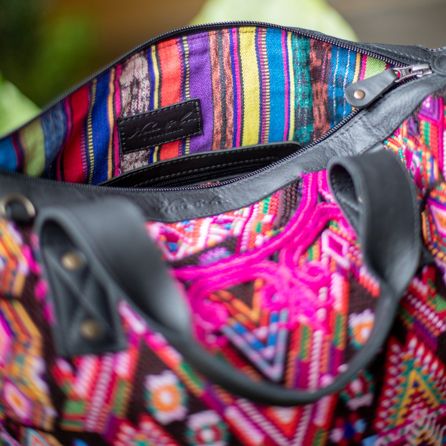 We make every effort to provide our customers with the best-handcrafted and high-quality bags. Please note that all our processes to make the bags are done by hand, from curing, cutting, and treating the leather to using up-cycled huipils. Our bags have natural characteristics and qualities that should not be considered as flaws or as damage because they do not interfere with the functionality of the bag. We up-cycle vintage Maya clothing to make beautiful one-of-a-kind products. Many times you will find snags in the pattern. This is normal. Should your patterned huipil snag you can snip the loose threads with scissors. Do not pull them.