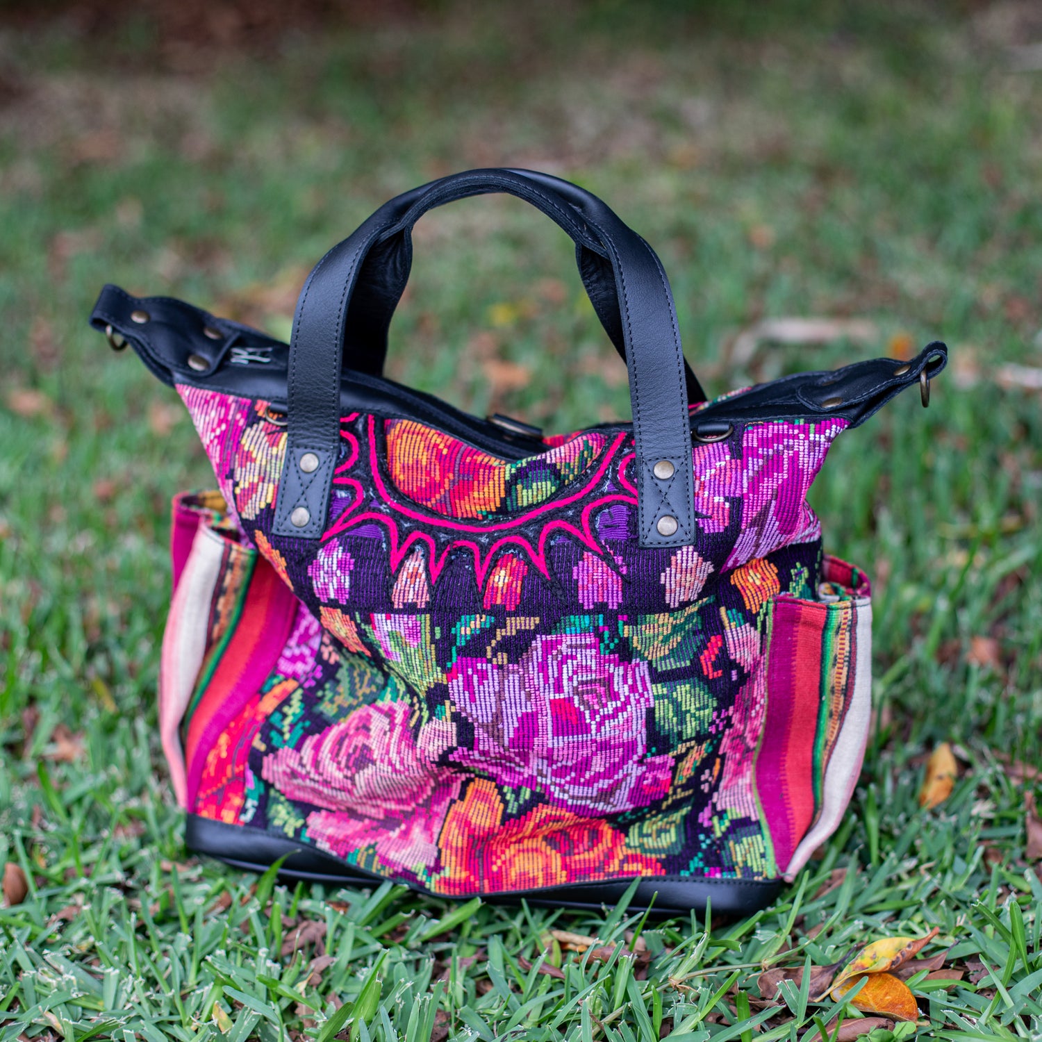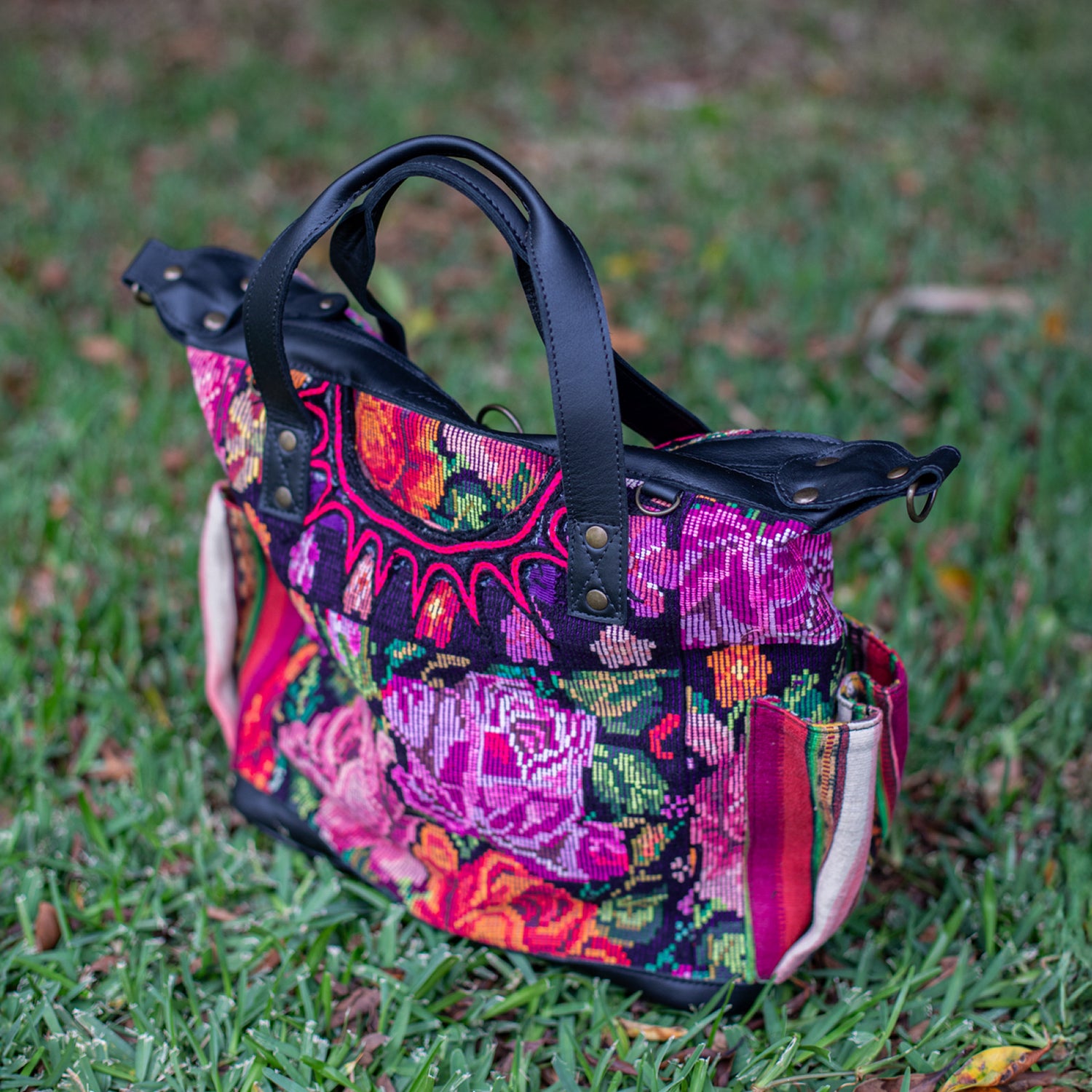 We make every effort to provide our customers with the best-handcrafted and high-quality bags. Please note that all our processes to make the bags are done by hand, from curing, cutting, and treating the leather to using up-cycled huipils. Our bags have natural characteristics and qualities that should not be considered as flaws or as damage because they do not interfere with the functionality of the bag. We up-cycle vintage Maya clothing to make beautiful one-of-a-kind products. Many times you will find snags in the pattern. This is normal. Should your patterned huipil snag you can snip the loose threads with scissors. Do not pull them.