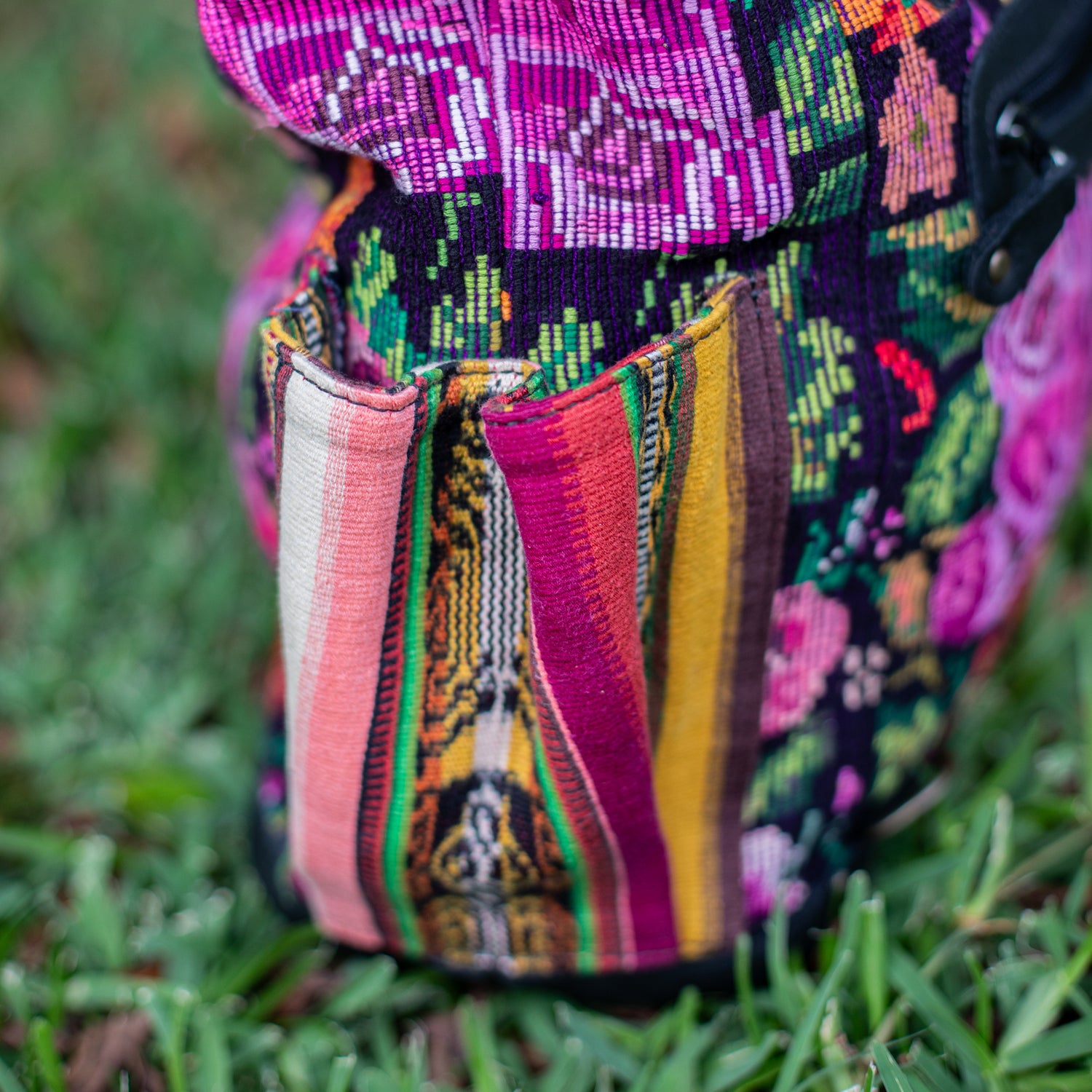 Our One of a Kind Collection features products crafted from hand-selected vintage fabrics sourced from trusted market vendors in Guatemala. Each textile has a story—woven by artisans from memory, often a decade ago, with patterns unique to their region. These fabrics have lived vibrant lives before being reimagined into your Nena piece. Every item is truly one of a kind—rich in heritage, artfully made, and absolutely unforgettable.