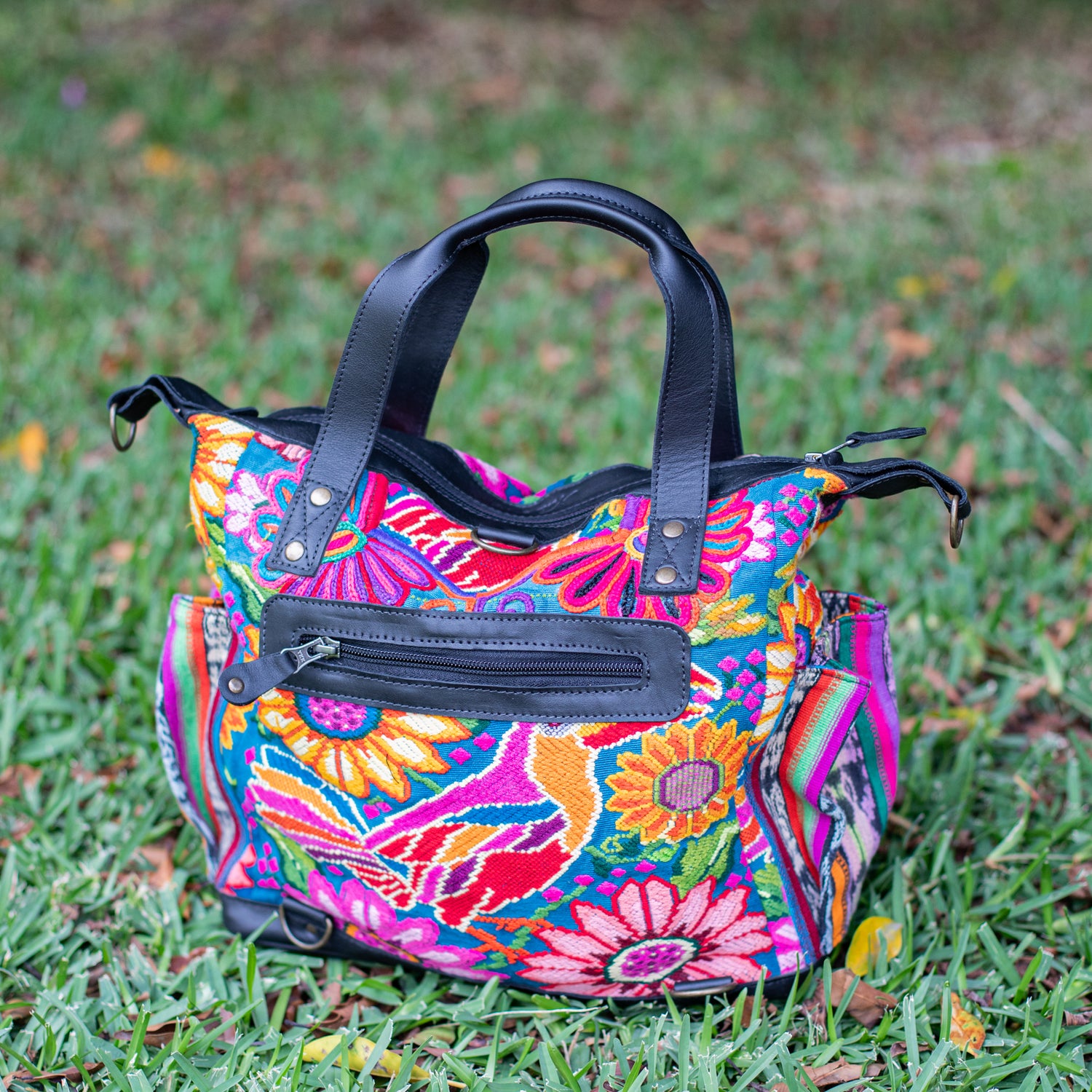 We make every effort to provide our customers with the best-handcrafted and high-quality bags. Please note that all our processes to make the bags are done by hand, from curing, cutting, and treating the leather to using up-cycled huipils. Our bags have natural characteristics and qualities that should not be considered as flaws or as damage because they do not interfere with the functionality of the bag. We up-cycle vintage Maya clothing to make beautiful one-of-a-kind products. Many times you will find snags in the pattern. This is normal. Should your patterned huipil snag you can snip the loose threads with scissors. Do not pull them.