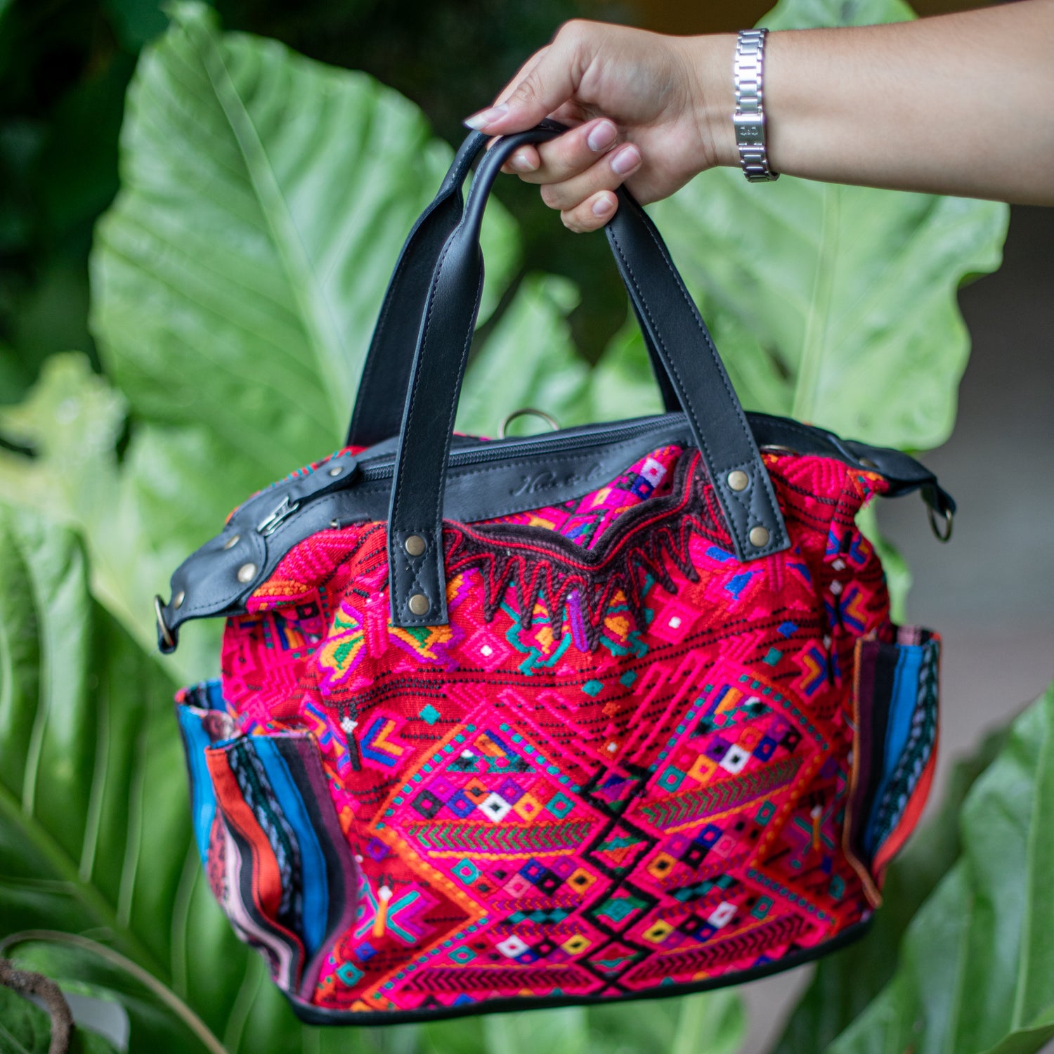We make every effort to provide our customers with the best-handcrafted and high-quality bags. Please note that all our processes to make the bags are done by hand, from curing, cutting, and treating the leather to using up-cycled huipils. Our bags have natural characteristics and qualities that should not be considered as flaws or as damage because they do not interfere with the functionality of the bag. We up-cycle vintage Maya clothing to make beautiful one-of-a-kind products. Many times you will find snags in the pattern. This is normal. Should your patterned huipil snag you can snip the loose threads with scissors. Do not pull them.
