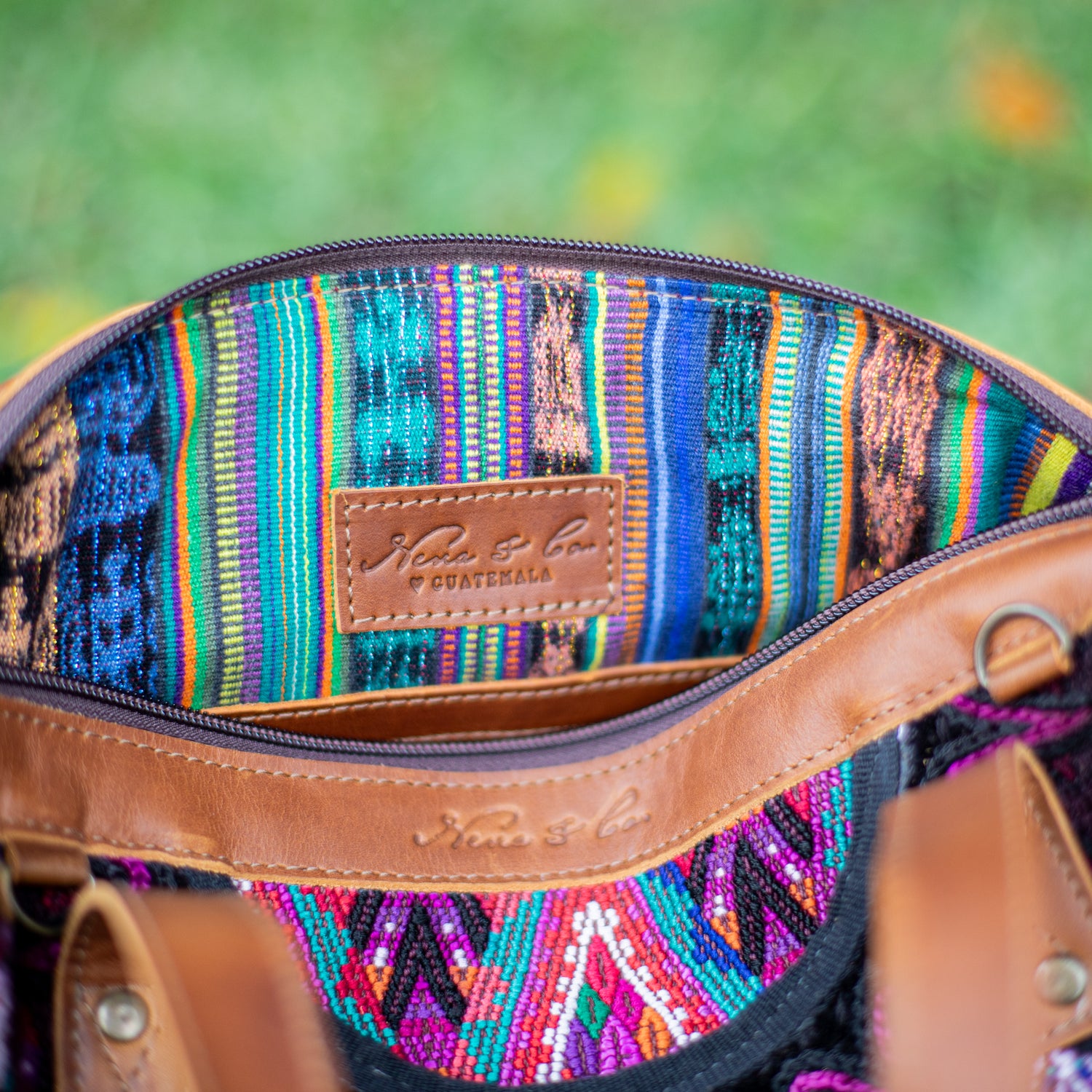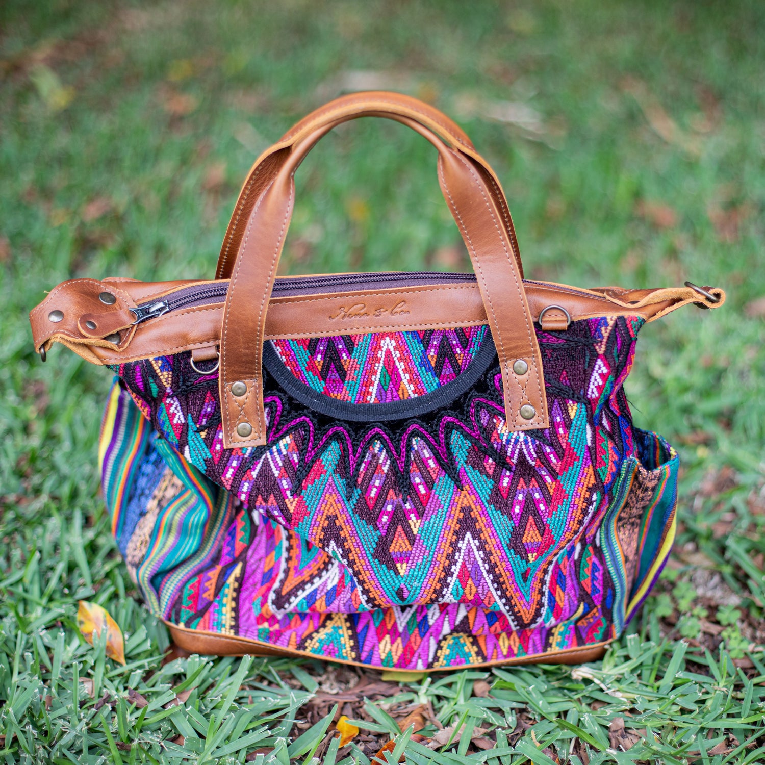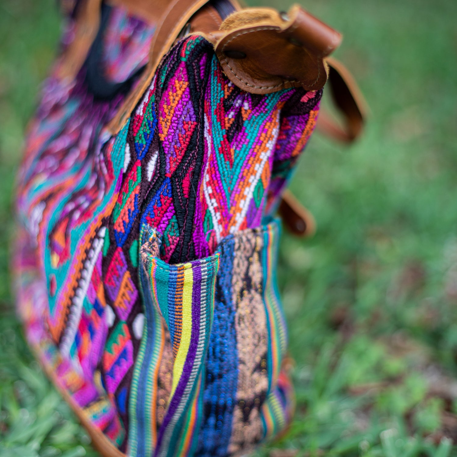 We make every effort to provide our customers with the best-handcrafted and high-quality bags. Please note that all our processes to make the bags are done by hand, from curing, cutting, and treating the leather to using up-cycled huipils. Our bags have natural characteristics and qualities that should not be considered as flaws or as damage because they do not interfere with the functionality of the bag. We up-cycle vintage Maya clothing to make beautiful one-of-a-kind products. Many times you will find snags in the pattern. This is normal. Should your patterned huipil snag you can snip the loose threads with scissors. Do not pull them.