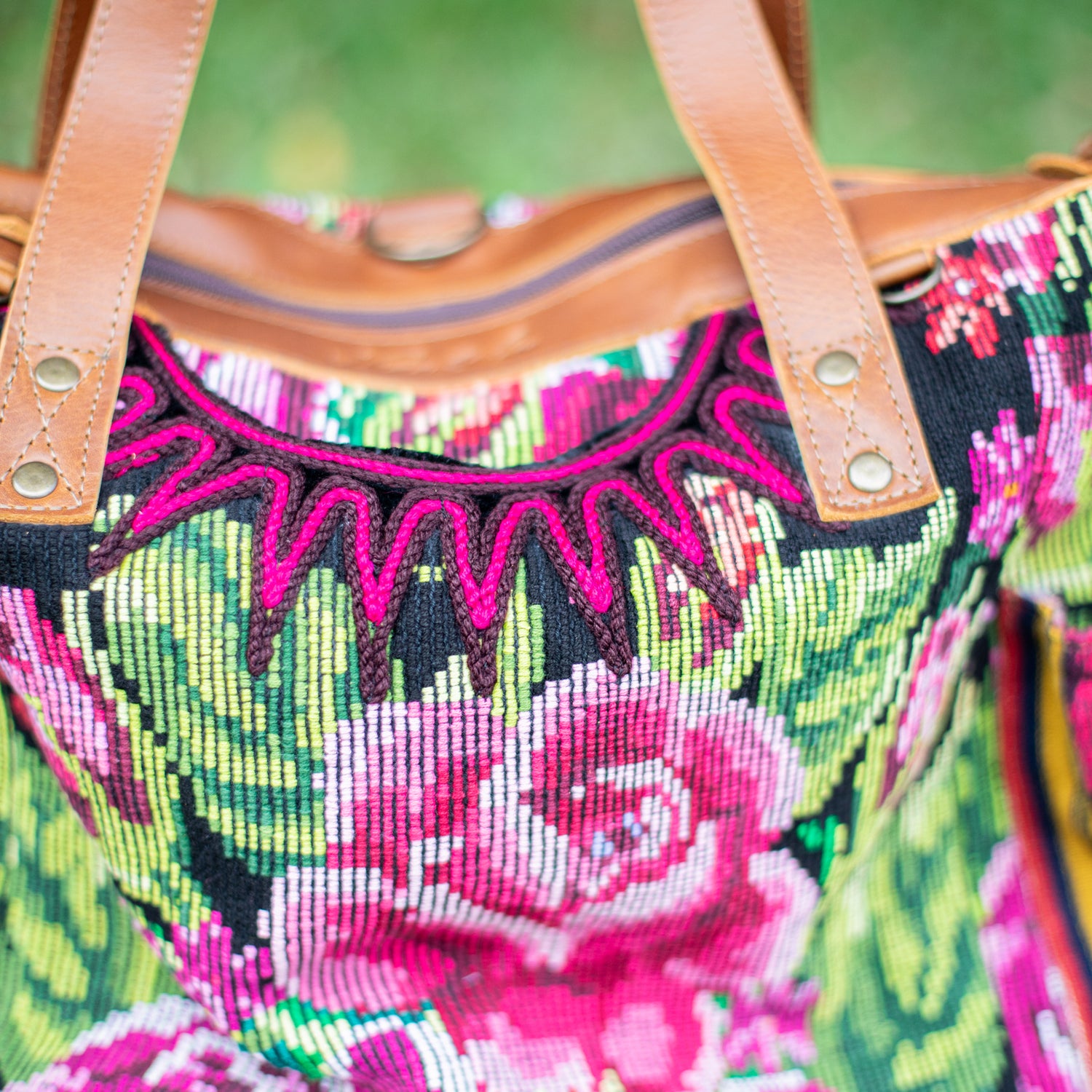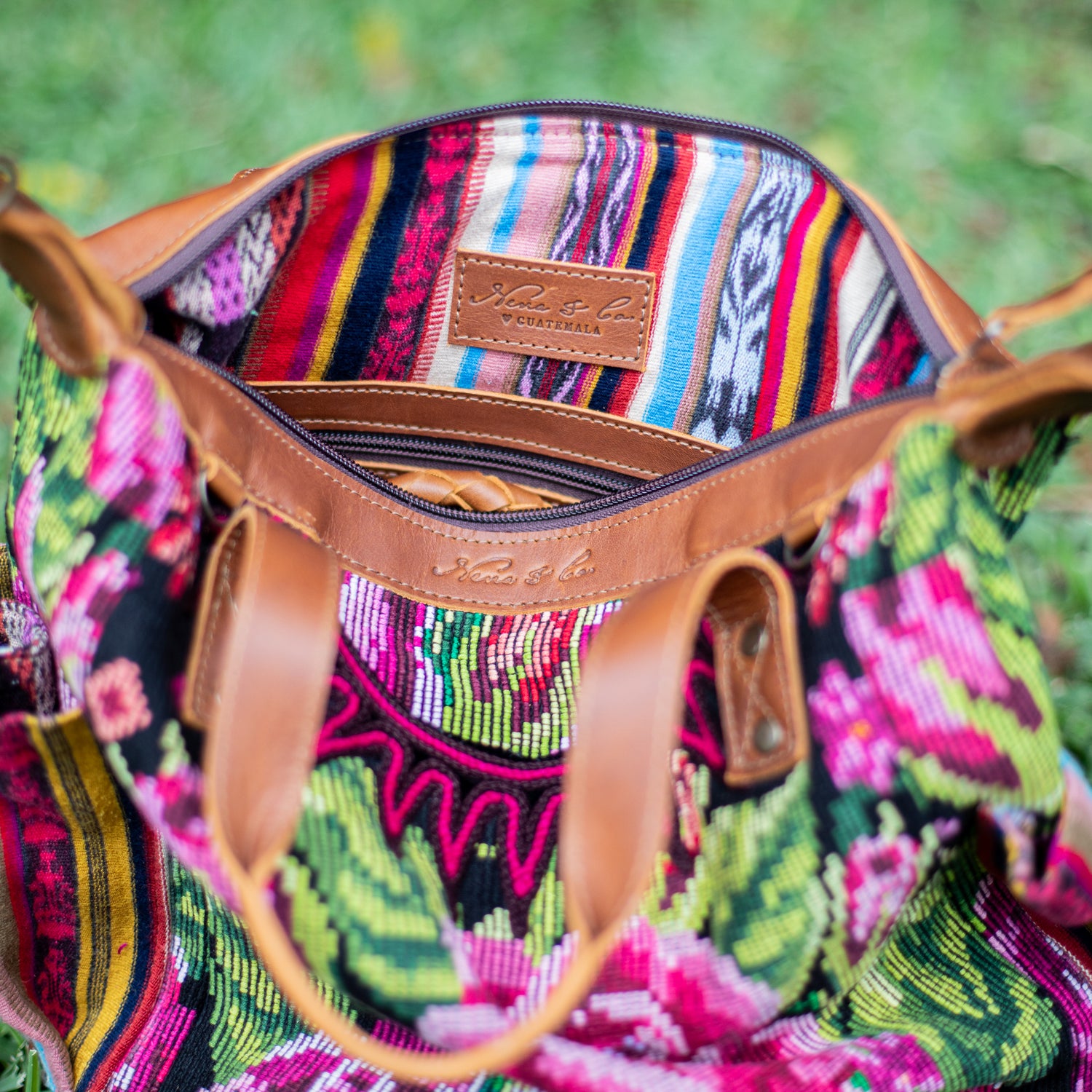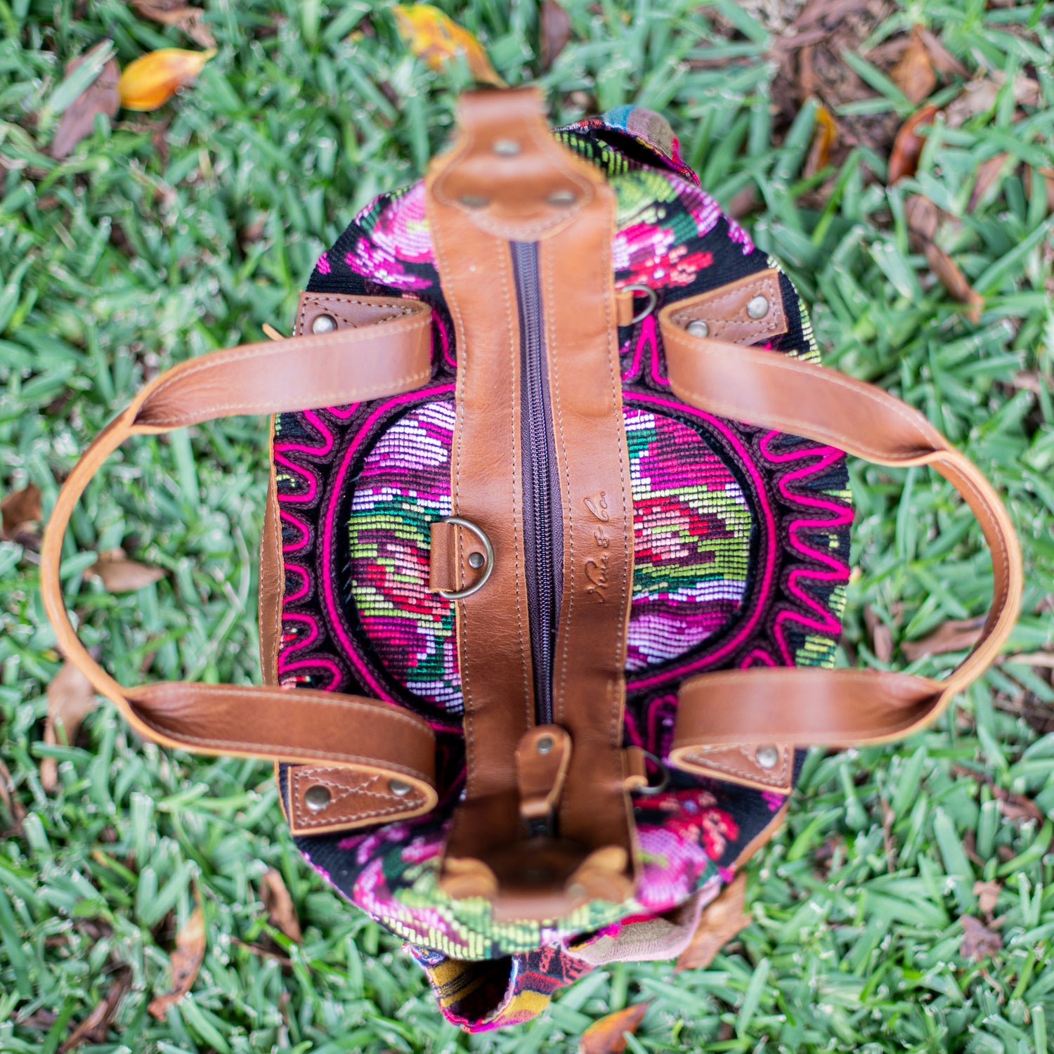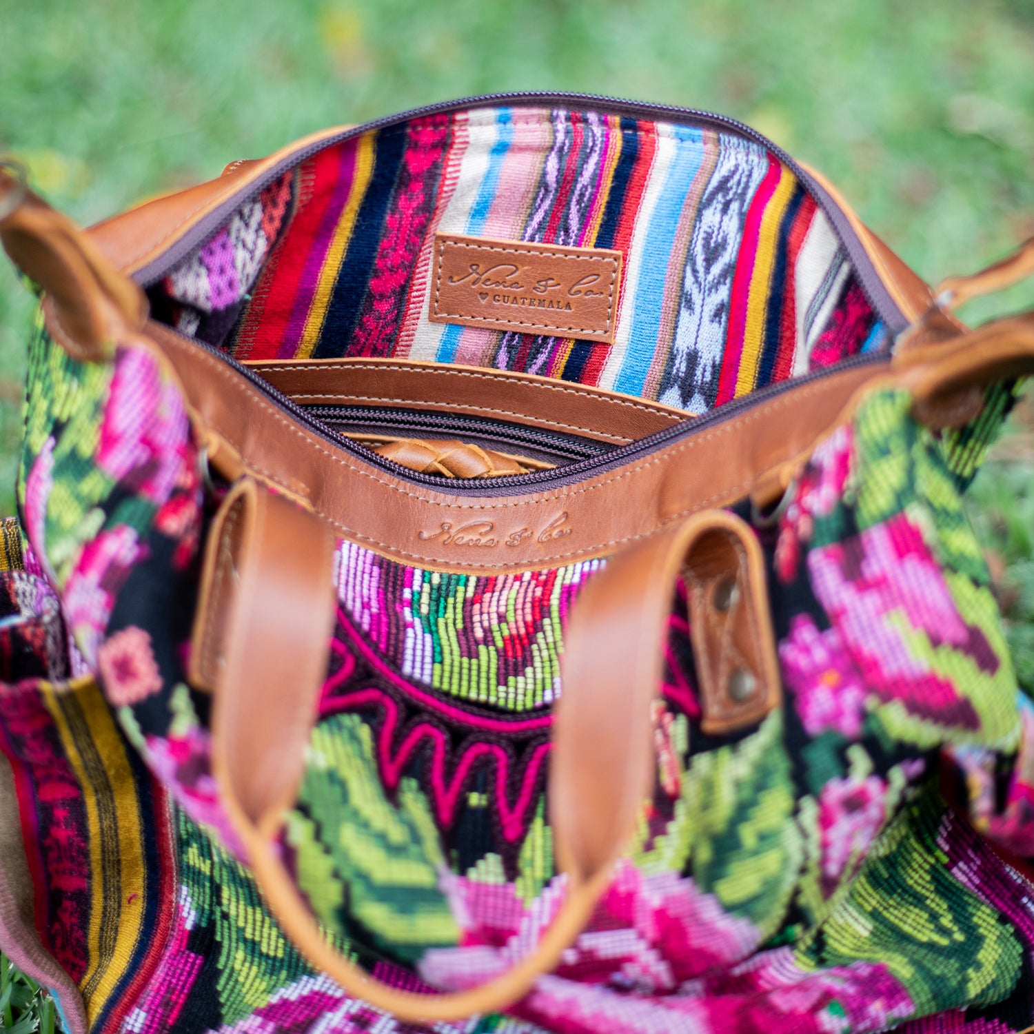 We make every effort to provide our customers with the best-handcrafted and high-quality bags. Please note that all our processes to make the bags are done by hand, from curing, cutting, and treating the leather to using up-cycled huipils. Our bags have natural characteristics and qualities that should not be considered as flaws or as damage because they do not interfere with the functionality of the bag. We up-cycle vintage Maya clothing to make beautiful one-of-a-kind products. Many times you will find snags in the pattern. This is normal. Should your patterned huipil snag you can snip the loose threads with scissors. Do not pull them.