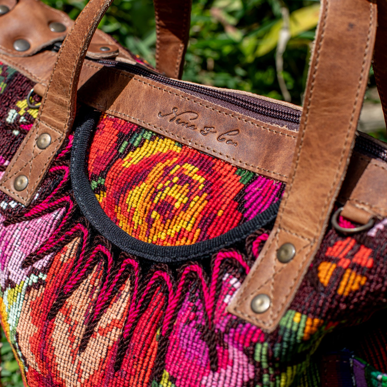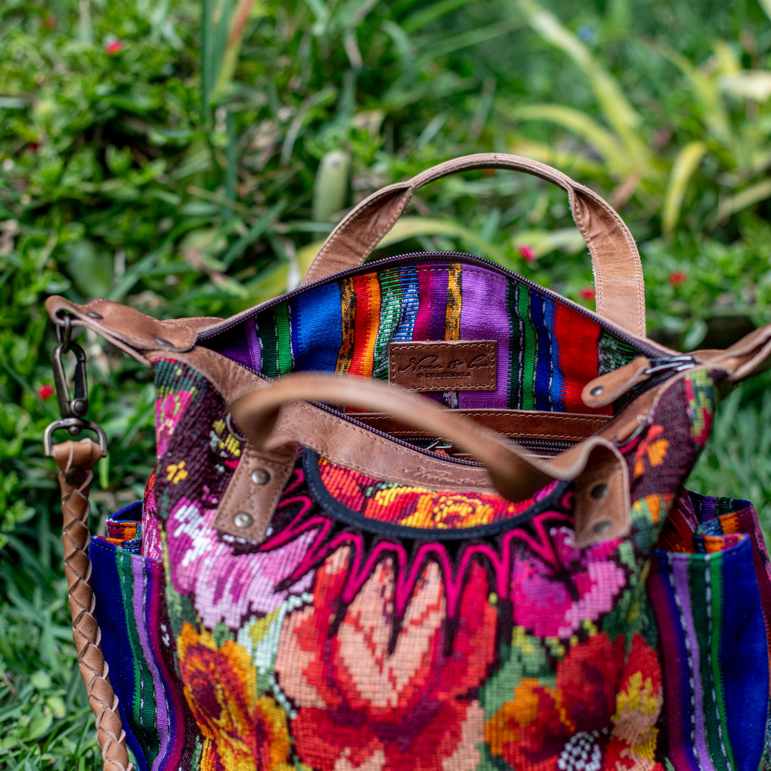 We make every effort to provide our customers with the best-handcrafted and high-quality bags. Please note that all our processes to make the bags are done by hand, from curing, cutting, and treating the leather to using up-cycled huipils. Our bags have natural characteristics and qualities that should not be considered as flaws or as damage because they do not interfere with the functionality of the bag. We up-cycle vintage Maya clothing to make beautiful one-of-a-kind products. Many times you will find snags in the pattern. This is normal. Should your patterned huipil snag you can snip the loose threads with scissors. Do not pull them.