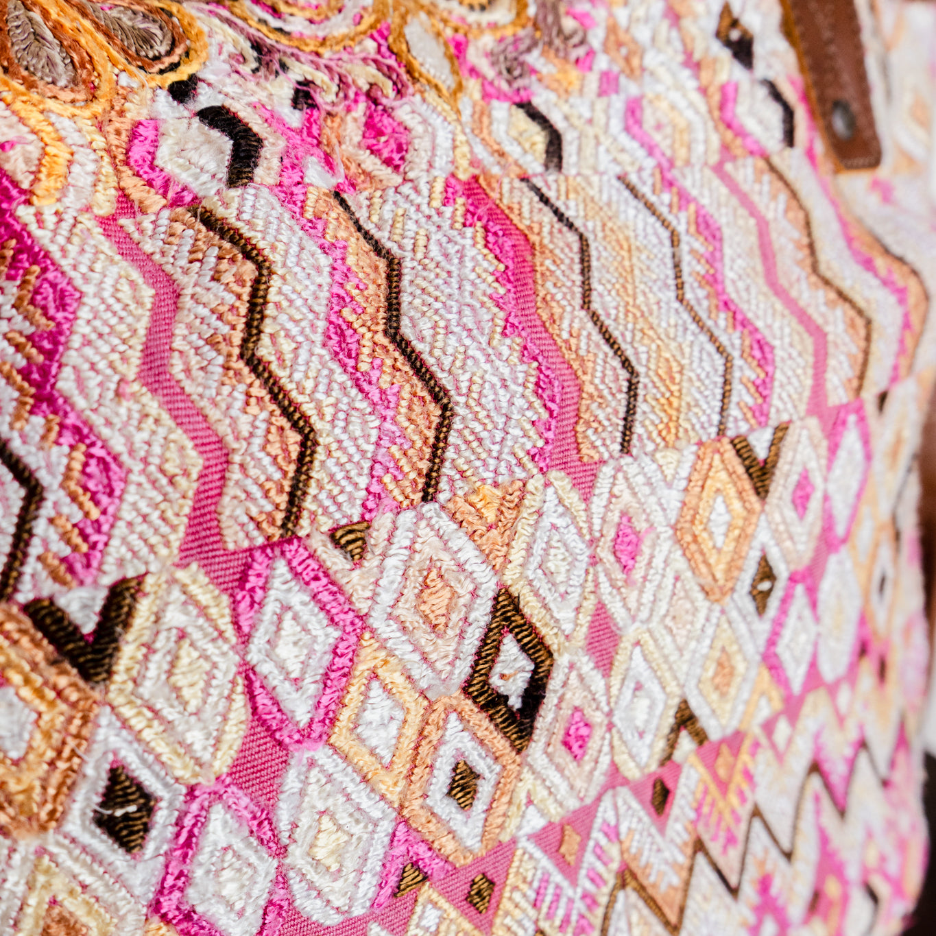 The huipiles in this collection were thoughtfully curated by Ali Hynek, owner and CEO of Nena & Co., who worked directly with our Guatemalan artisans to select the finest pieces to pair with Nena's full grain leather.