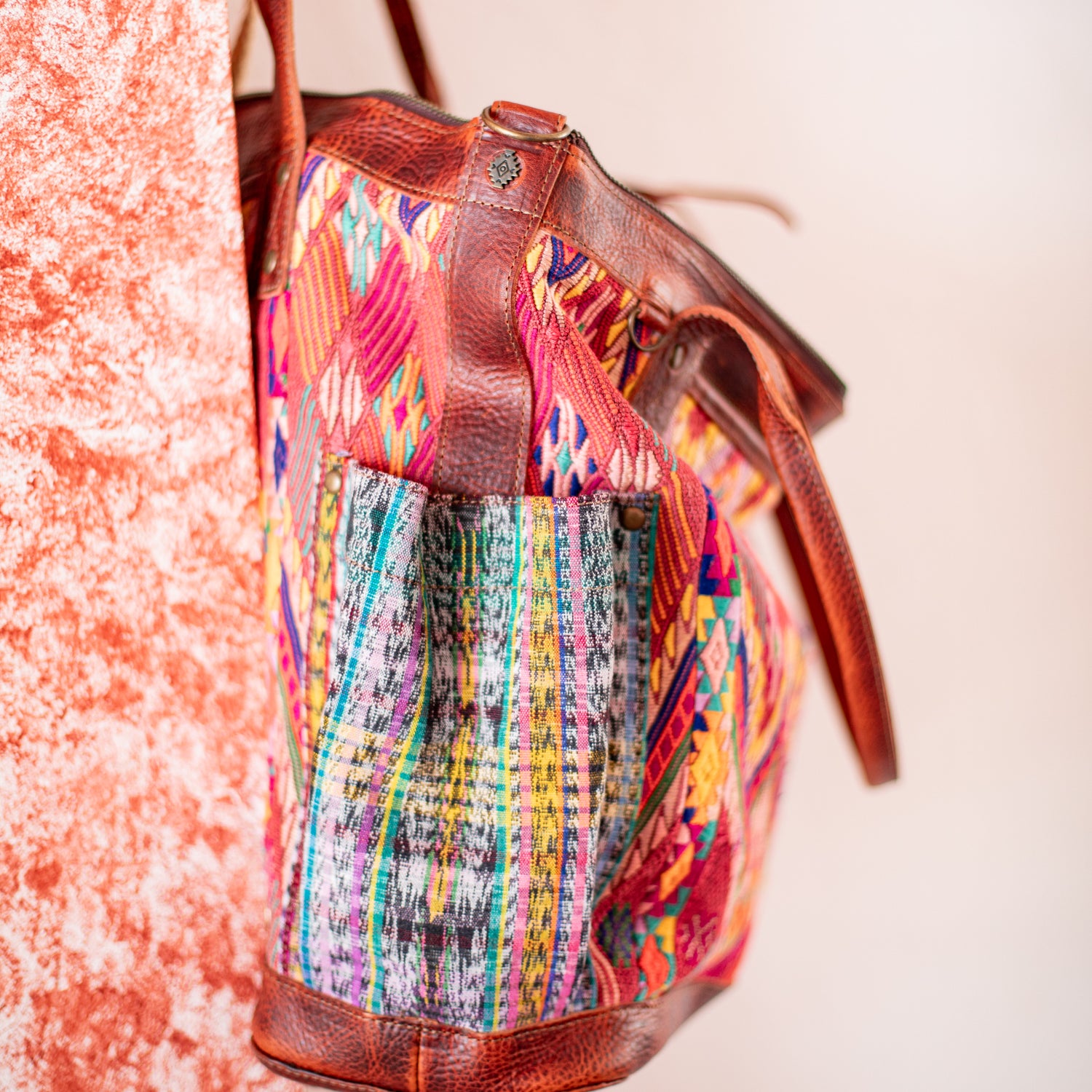 We make every effort to provide our customers with the best-handcrafted and high-quality bags. Please note that all our processes to make the bags are done by hand, from curing, cutting, and treating the leather to using up-cycled huipils. Our bags have natural characteristics and qualities that should not be considered as flaws or as damage because they do not interfere with the functionality of the bag. We up-cycle vintage Maya clothing to make beautiful one-of-a-kind products. Many times you will find snags in the pattern. This is normal. Should your patterned huipil snag you can snip the loose threads with scissors. Do not pull them.