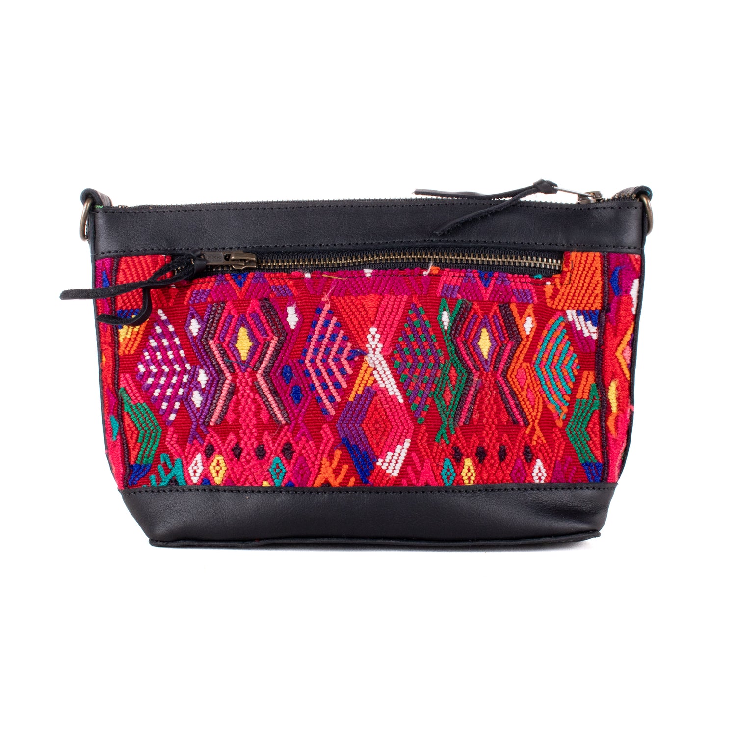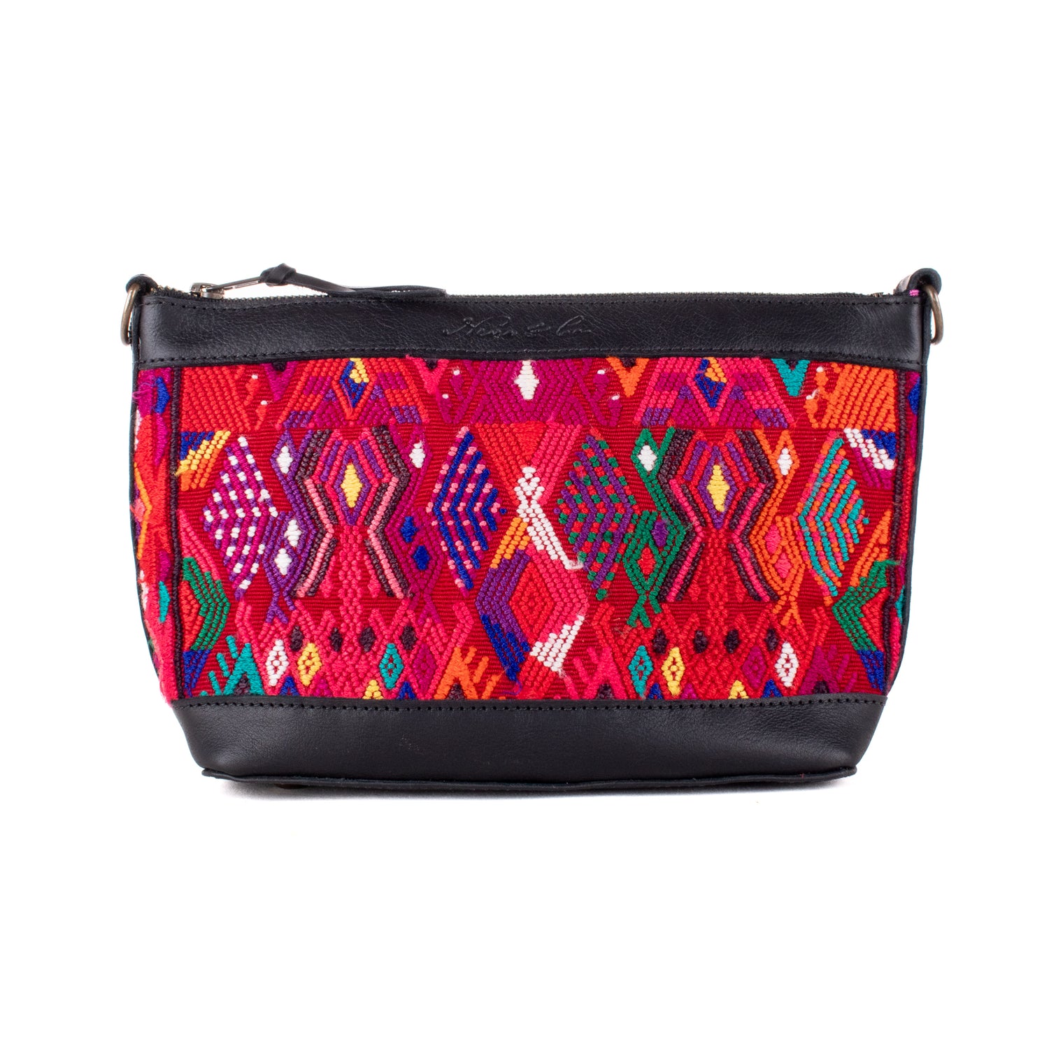 Many unique Maya symbols can be found in our One of a Kind Collection. The fabric we use for this collection is made from upcycled vintage huipiles (traditional attire worn by women in Guatemala) that were handwoven by Artisans up to 10 years ago, and they have lived a full life before being incorporated into your leather bag!