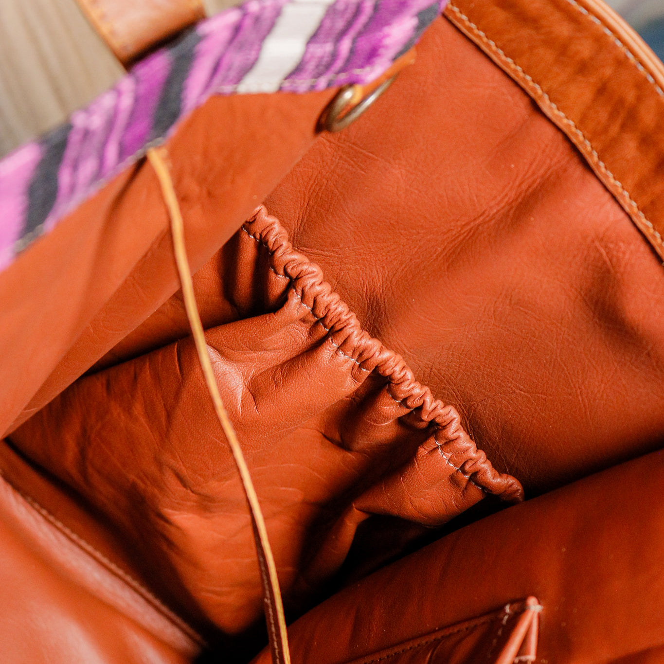 We make every effort to provide our customers with the best-handcrafted and high-quality bags. Please note that all our processes to make the bags are done by hand, from curing, cutting, and treating the leather to using up-cycled huipils. Our bags have natural characteristics and qualities that should not be considered as flaws or as damage because they do not interfere with the functionality of the bag. We up-cycle vintage Maya clothing to make beautiful one-of-a-kind products. Many times you will find snags in the pattern. This is normal. Should your patterned huipil snag you can snip the loose threads with scissors. Do not pull them.