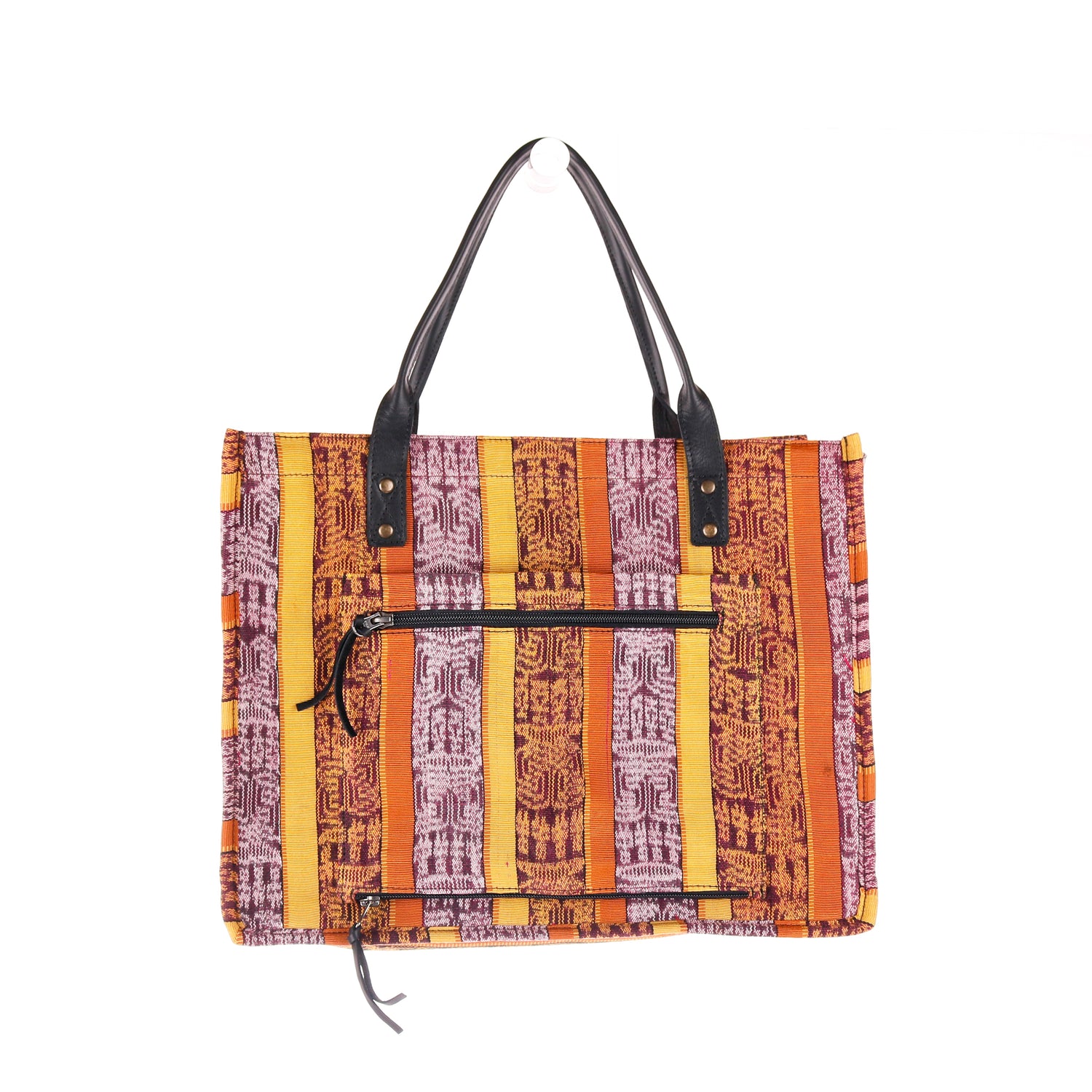 We make every effort to provide our customers with the best-handcrafted and high-quality bags. Please note that all our processes to make the bags are done by hand, from curing, cutting, and treating the leather to using up-cycled huipils. Our bags have natural characteristics and qualities that should not be considered as flaws or as damage because they do not interfere with the functionality of the bag. We up-cycle vintage Maya clothing to make beautiful one-of-a-kind products. Many times you will find snags in the pattern. This is normal. Should your patterned huipil snag you can snip the loose threads with scissors. Do not pull them.