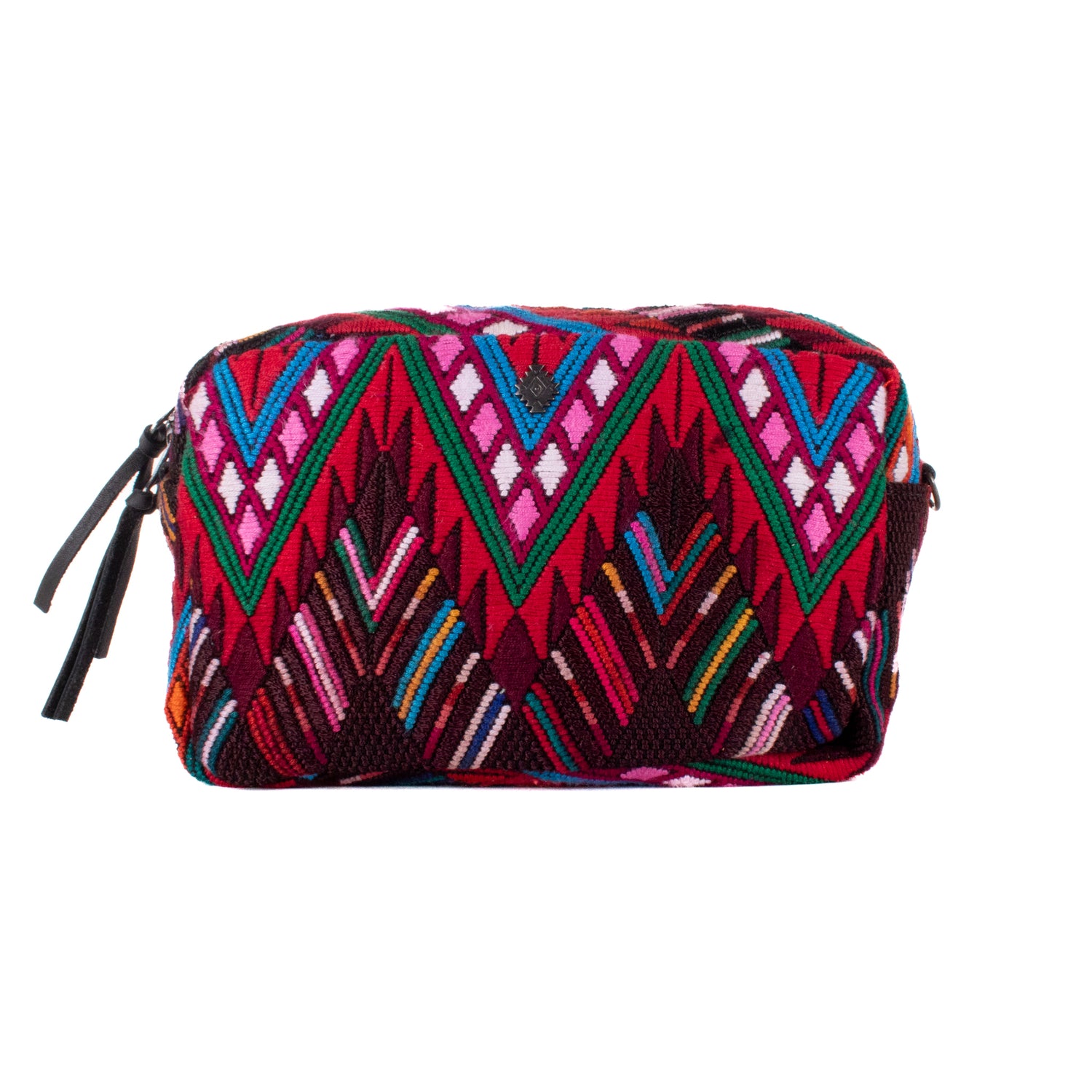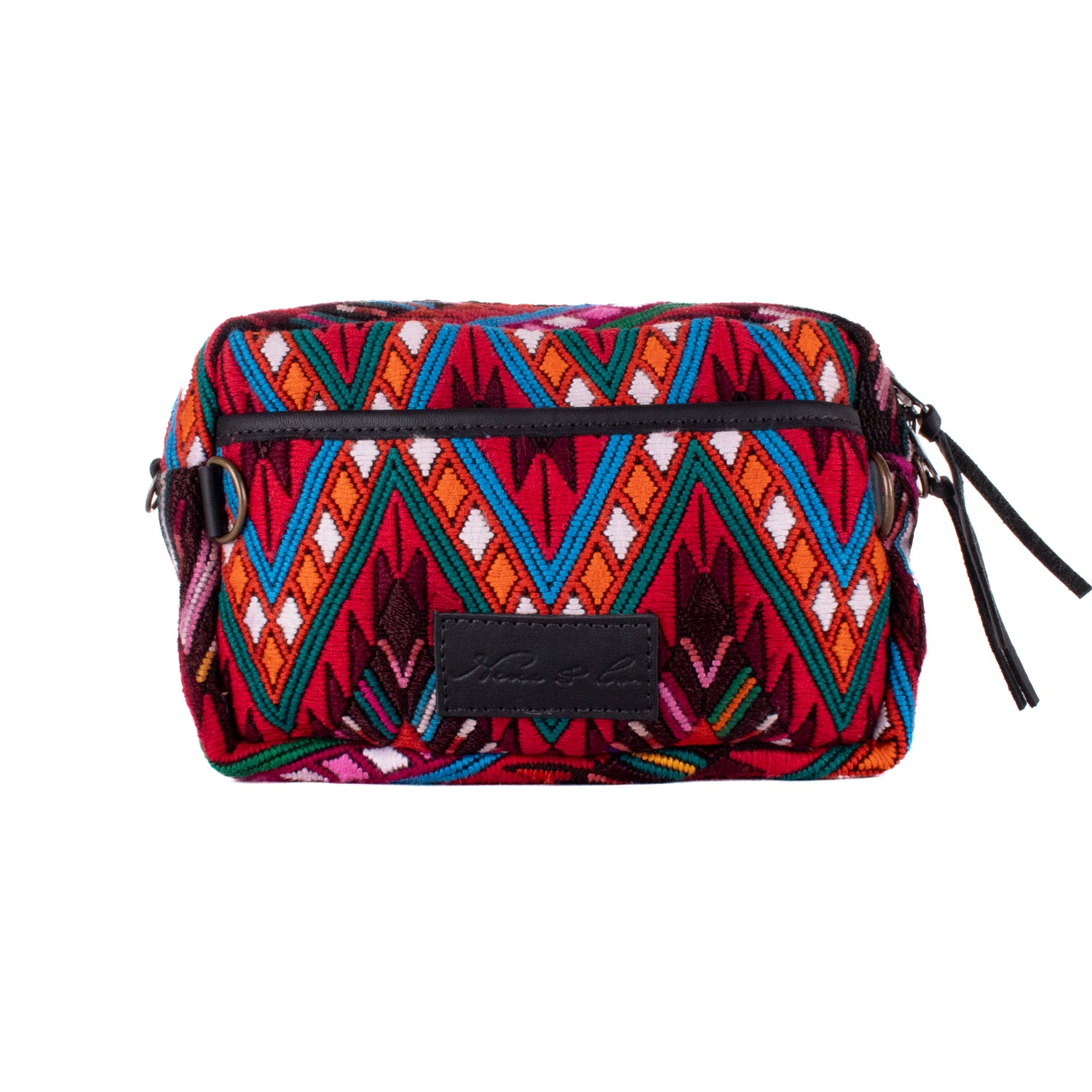 Many unique Maya symbols can be found in our One of a Kind Collection. The fabric we use for this collection is made from upcycled vintage huipiles (traditional attire worn by women in Guatemala) that were handwoven by Artisans up to 10 years ago, and they have lived a full life before being incorporated into your leather bag!