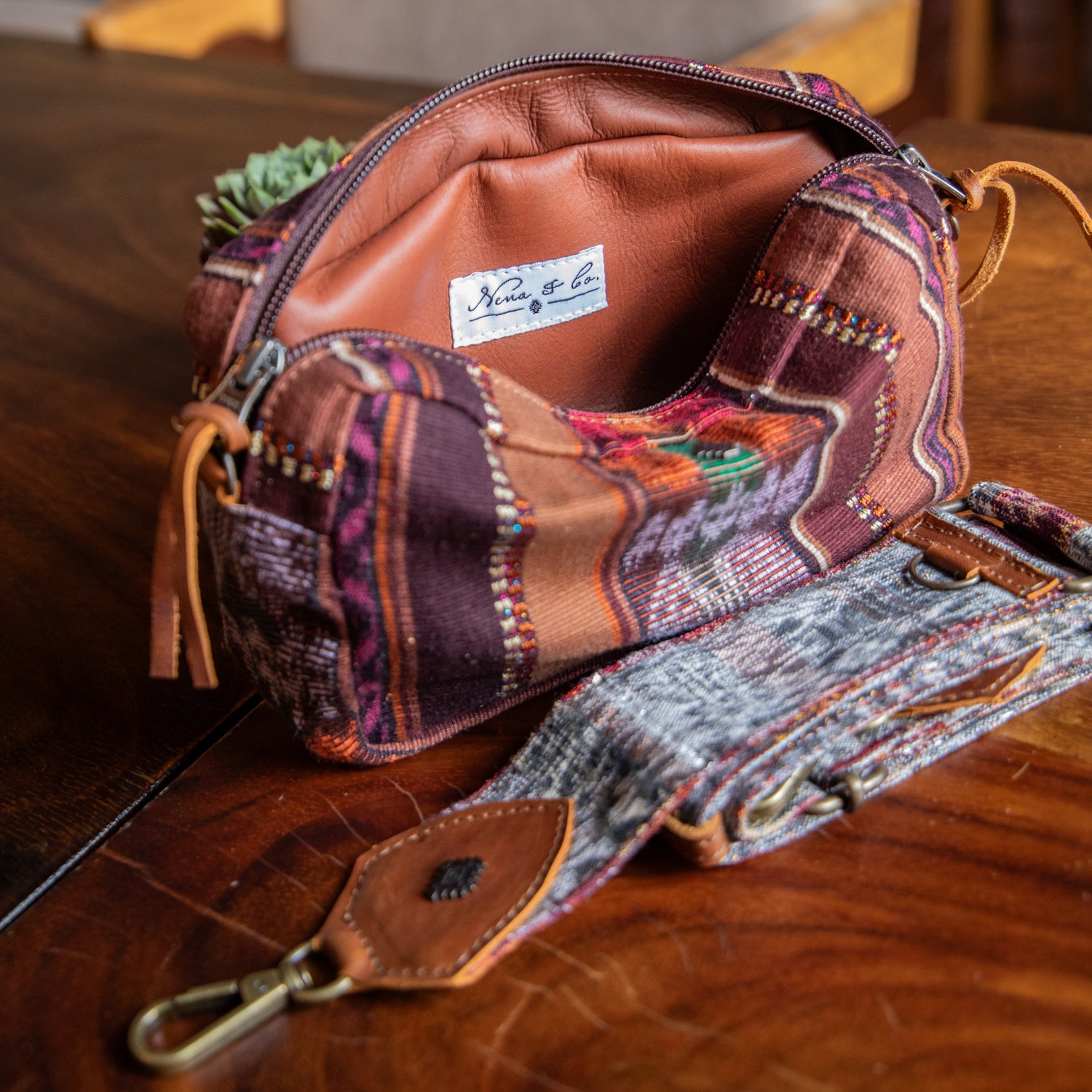 We make every effort to provide our customers with the best-handcrafted and high-quality bags. Please note that all our processes to make the bags are done by hand, from curing, cutting, and treating the leather to using up-cycled huipils. Our bags have natural characteristics and qualities that should not be considered as flaws or as damage because they do not interfere with the functionality of the bag. We up-cycle vintage Maya clothing to make beautiful one-of-a-kind products. Many times you will find snags in the pattern. This is normal. Should your patterned huipil snag you can snip the loose threads with scissors. Do not pull them.