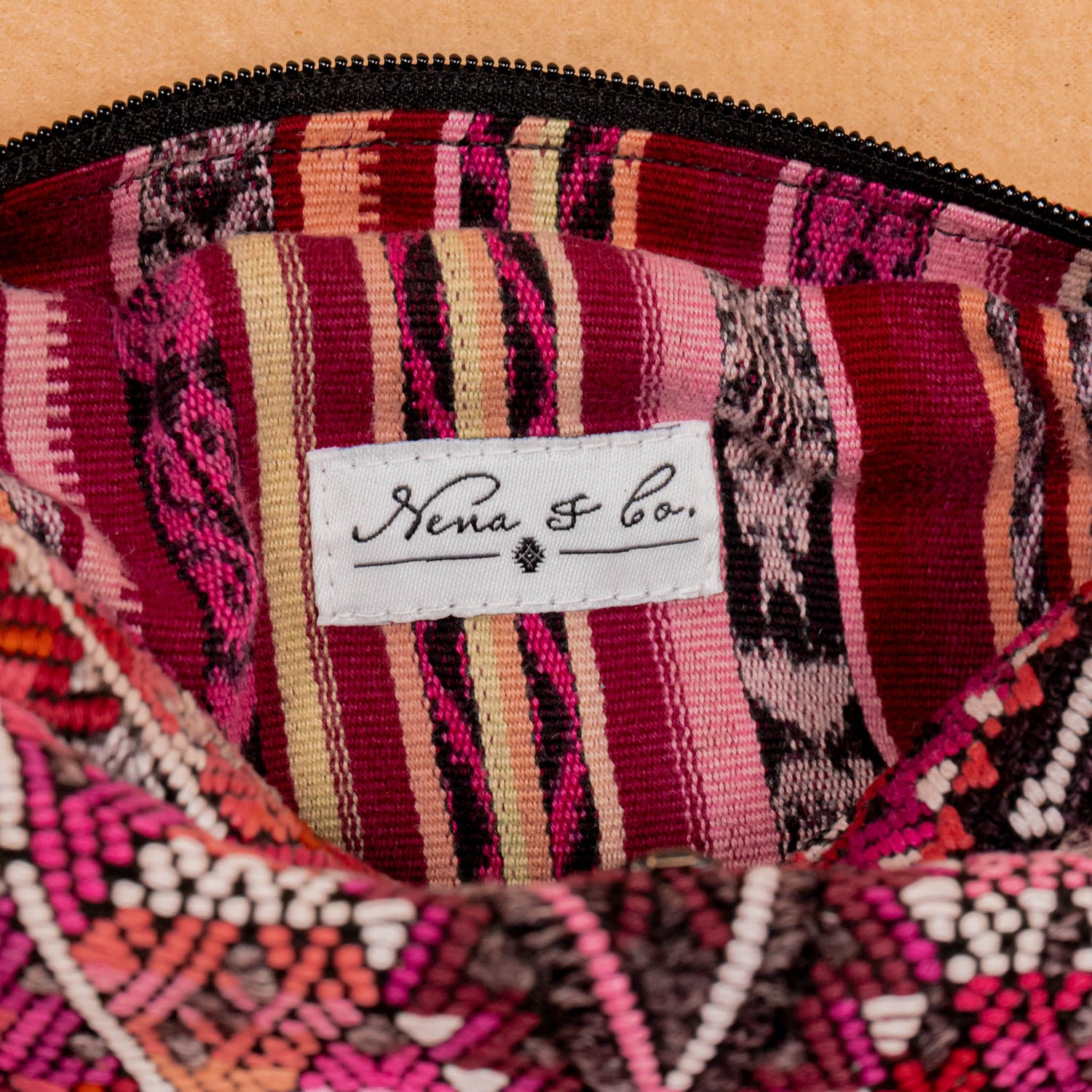We make every effort to provide our customers with the best-handcrafted and high-quality bags. Please note that all our processes to make the bags are done by hand, from curing, cutting, and treating the leather to using up-cycled huipils. Our bags have natural characteristics and qualities that should not be considered as flaws or as damage because they do not interfere with the functionality of the bag. We up-cycle vintage Maya clothing to make beautiful one-of-a-kind products. Many times you will find snags in the pattern. This is normal. Should your patterned huipil snag you can snip the loose threads with scissors. Do not pull them.