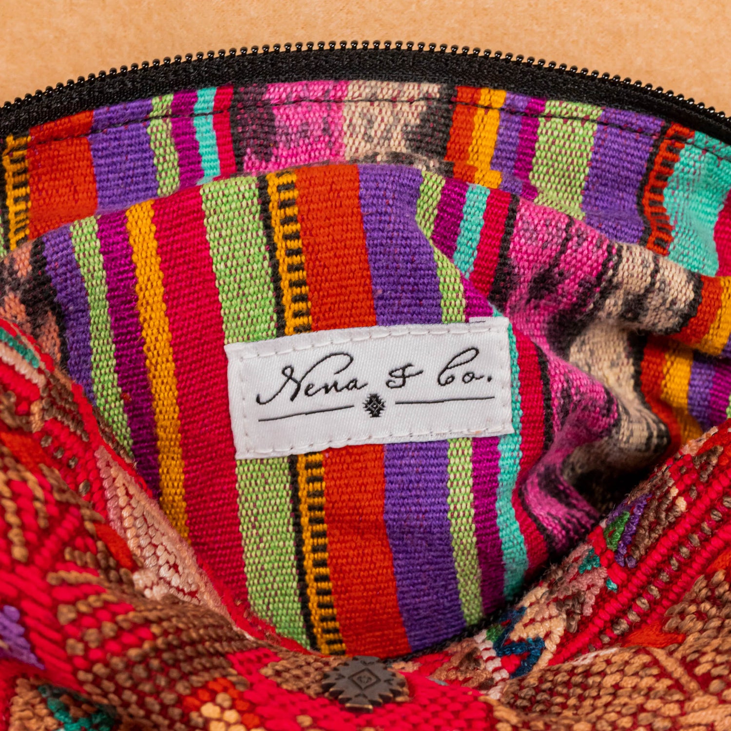 We make every effort to provide our customers with the best-handcrafted and high-quality bags. Please note that all our processes to make the bags are done by hand, from curing, cutting, and treating the leather to using up-cycled huipils. Our bags have natural characteristics and qualities that should not be considered as flaws or as damage because they do not interfere with the functionality of the bag. We up-cycle vintage Maya clothing to make beautiful one-of-a-kind products. Many times you will find snags in the pattern. This is normal. Should your patterned huipil snag you can snip the loose threads with scissors. Do not pull them.