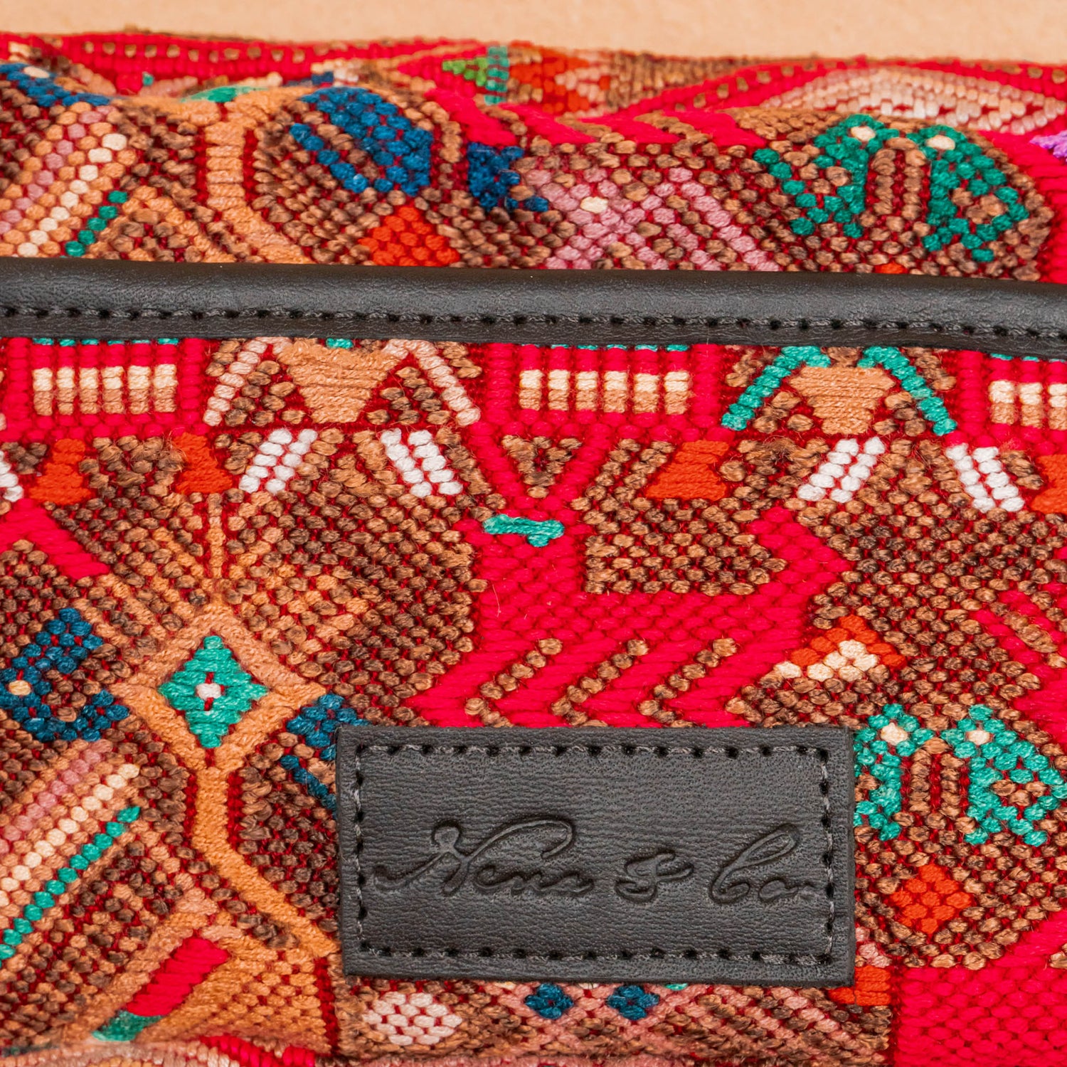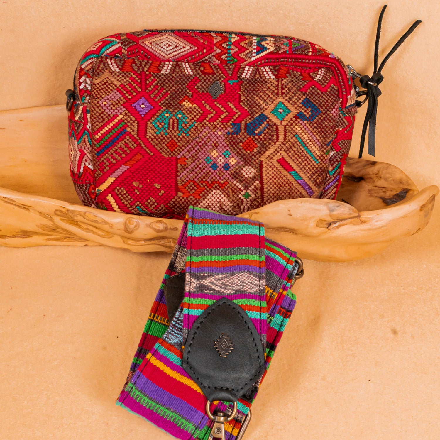 Many unique Maya symbols can be found in our One of a Kind Collection. The fabric we use for this collection is made from upcycled vintage huipiles (traditional attire worn by women in Guatemala) that were handwoven by Artisans up to 10 years ago, and they have lived a full life before being incorporated into your leather bag!
