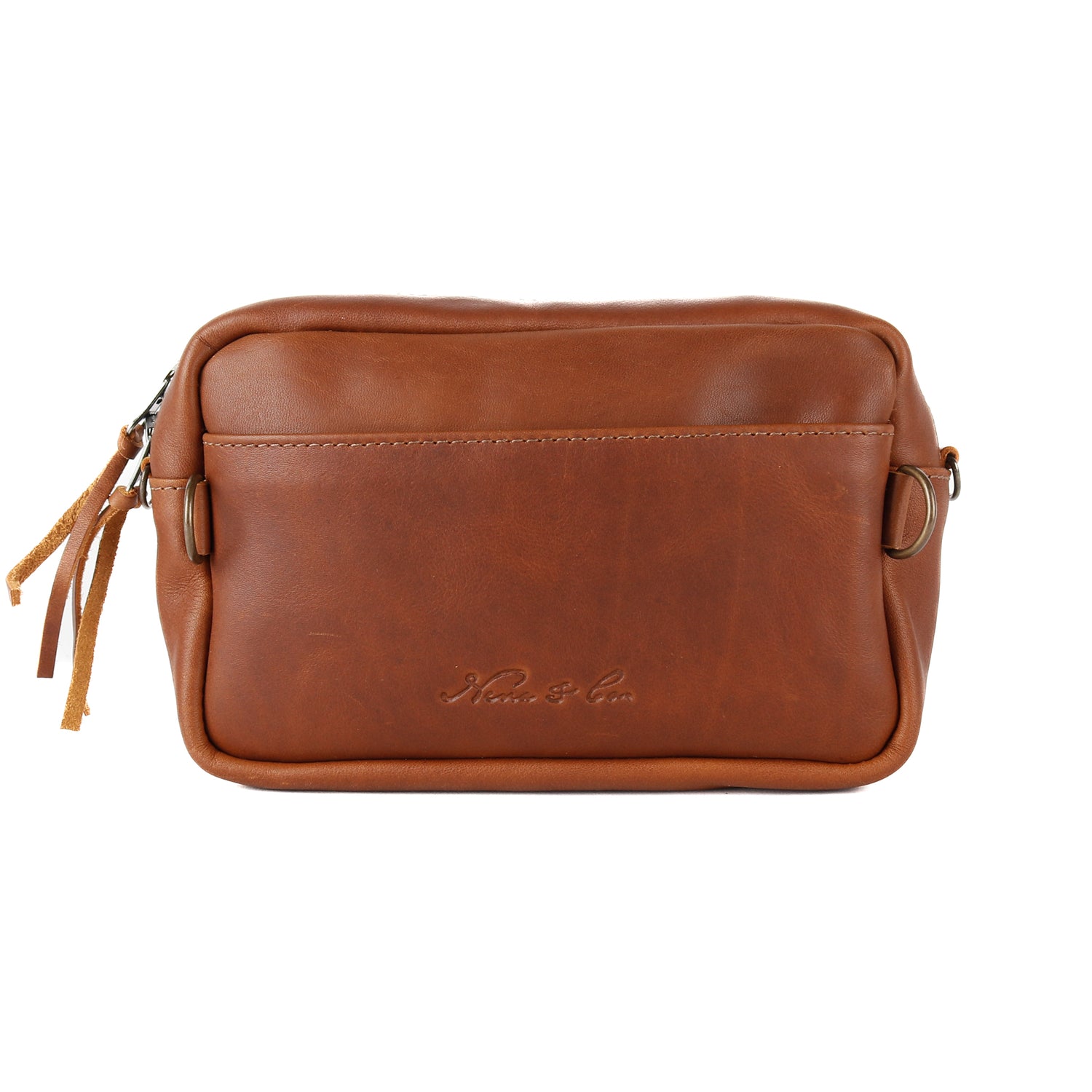 - Full grain leather body, trim and strap