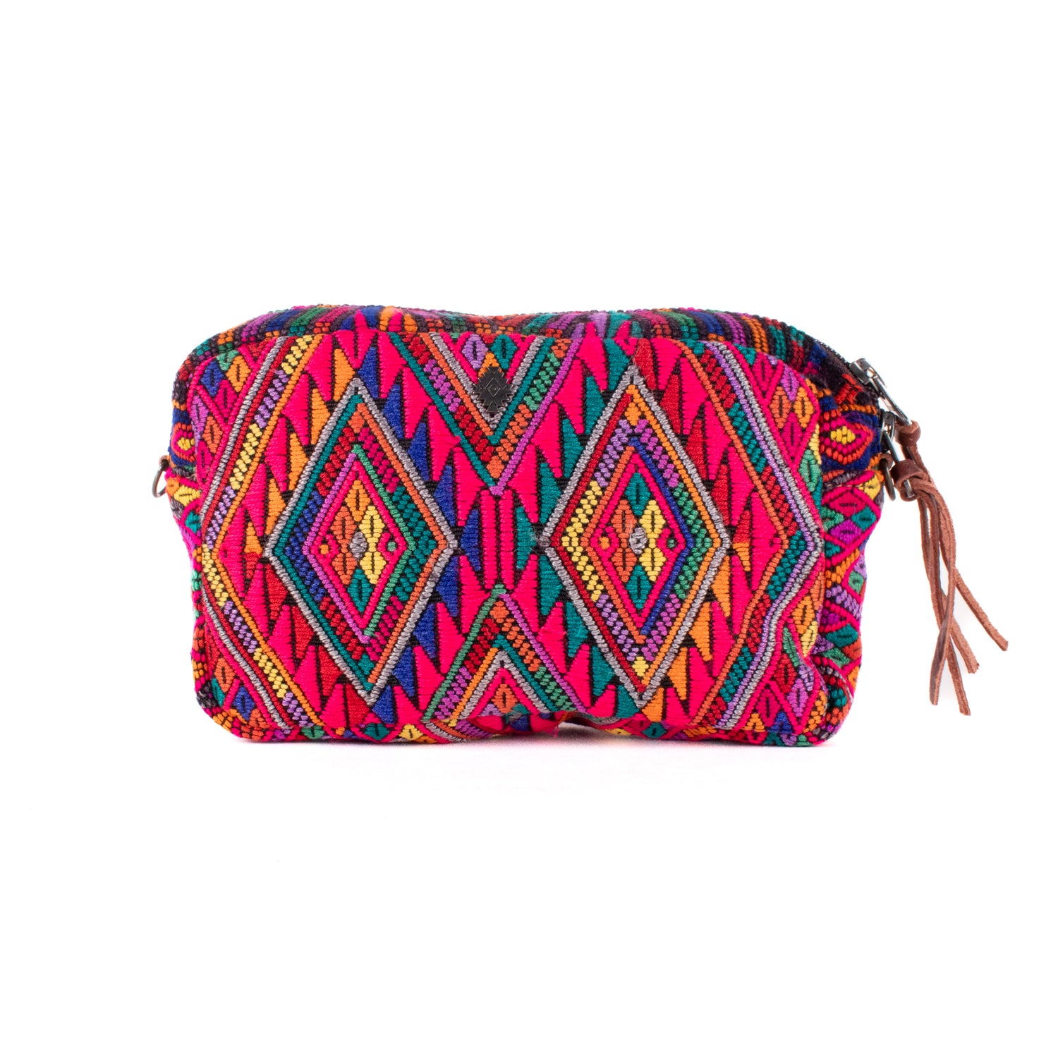Many unique Maya symbols can be found in our One of a Kind Collection. The fabric we use for this collection is made from upcycled vintage huipiles (traditional attire worn by women in Guatemala) that were handwoven by Artisans up to 10 years ago, and they have lived a full life before being incorporated into your leather bag!