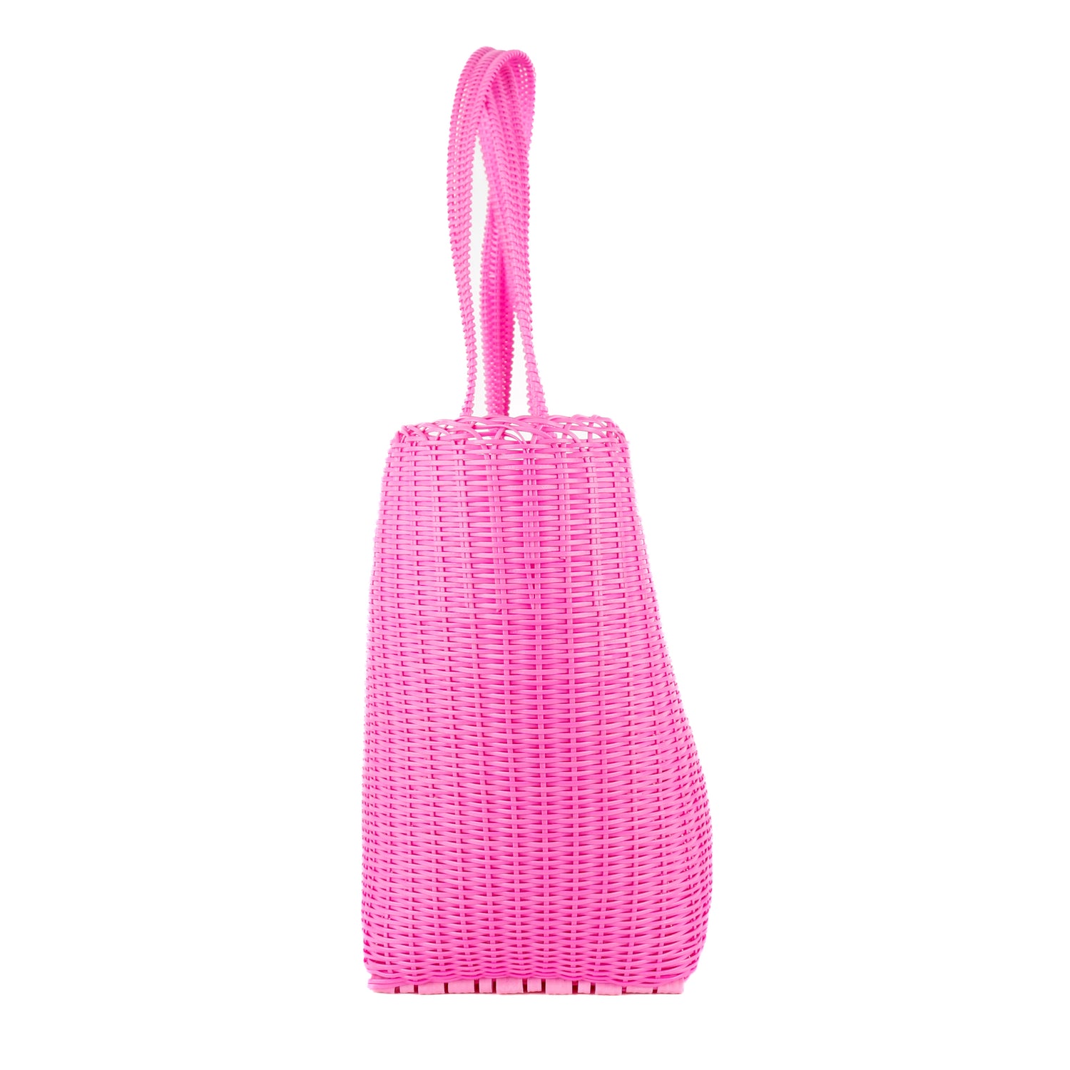 Handwoven on a wooden frame, these traditional recycled plastic market bags are found in many Latin American countries. We've added a Nena twist with familiar silhouettes featuring full grain leather accents and straps. These colorful bags and accessories are ideal for a day at the beach, market, in the garden, etc.