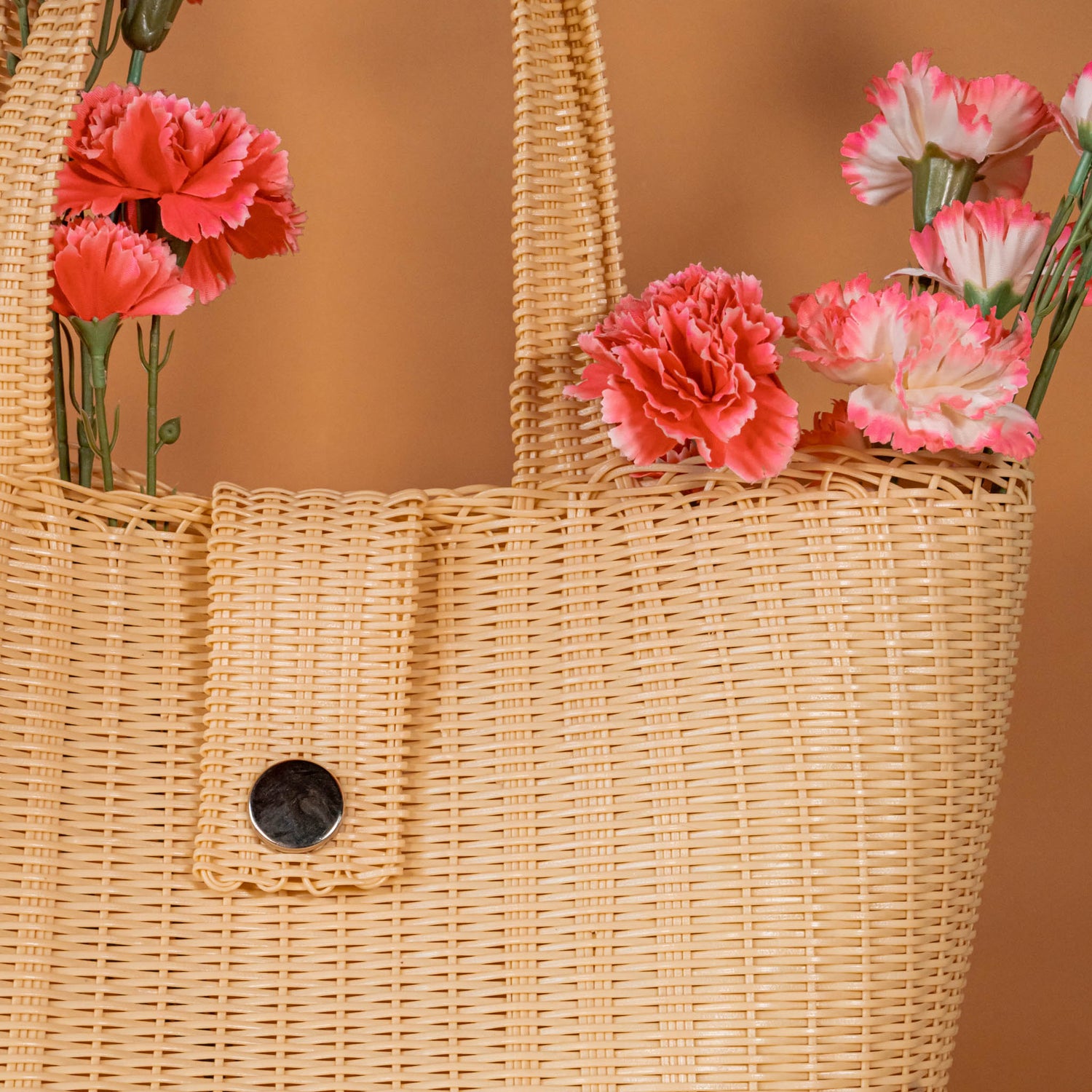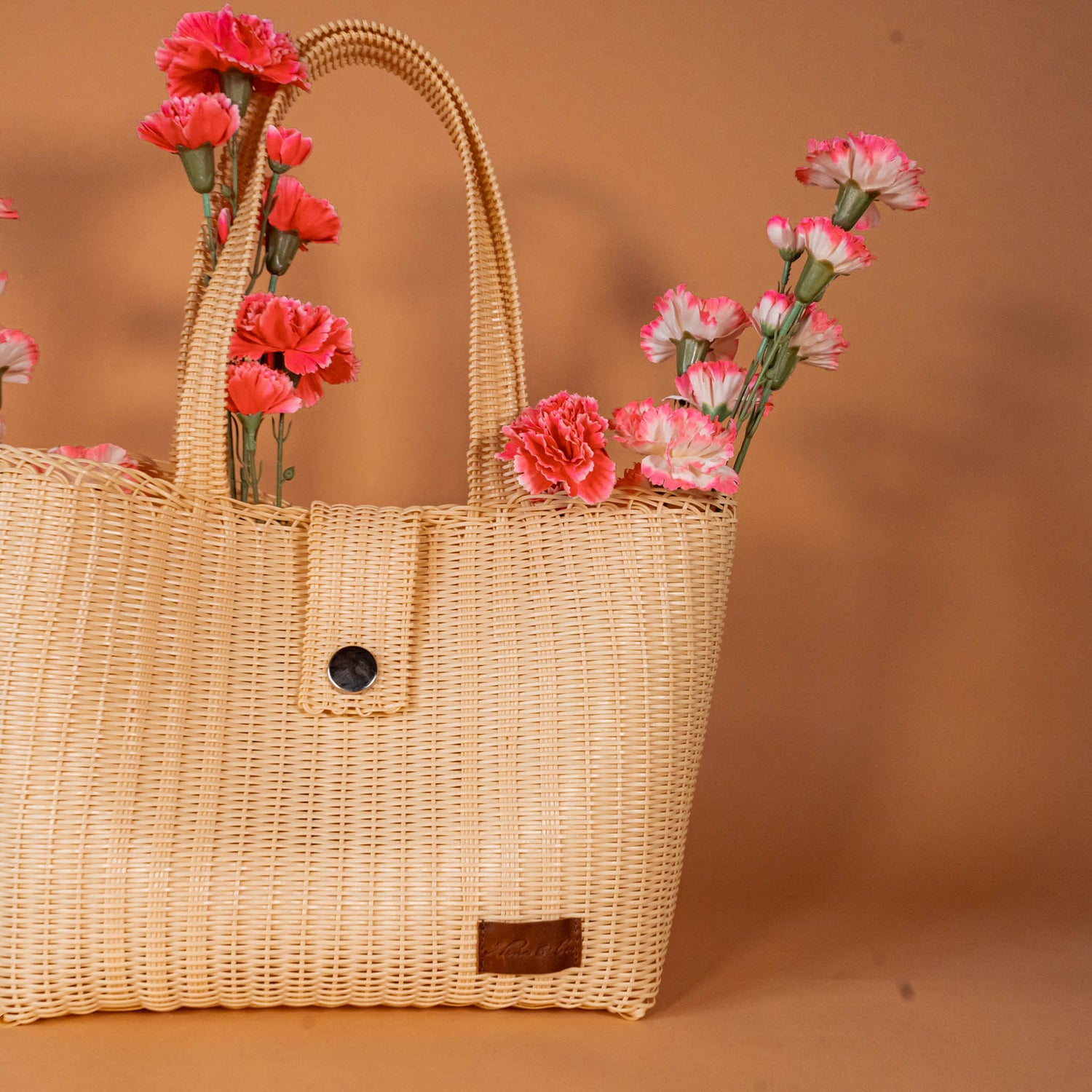 Handwoven on a wooden frame, these traditional recycled plastic market bags are found in many Latin American countries. We've added a Nena twist with familiar silhouettes featuring full grain leather accents and straps. These colorful bags and accessories are ideal for a day at the beach, market, in the garden, etc.