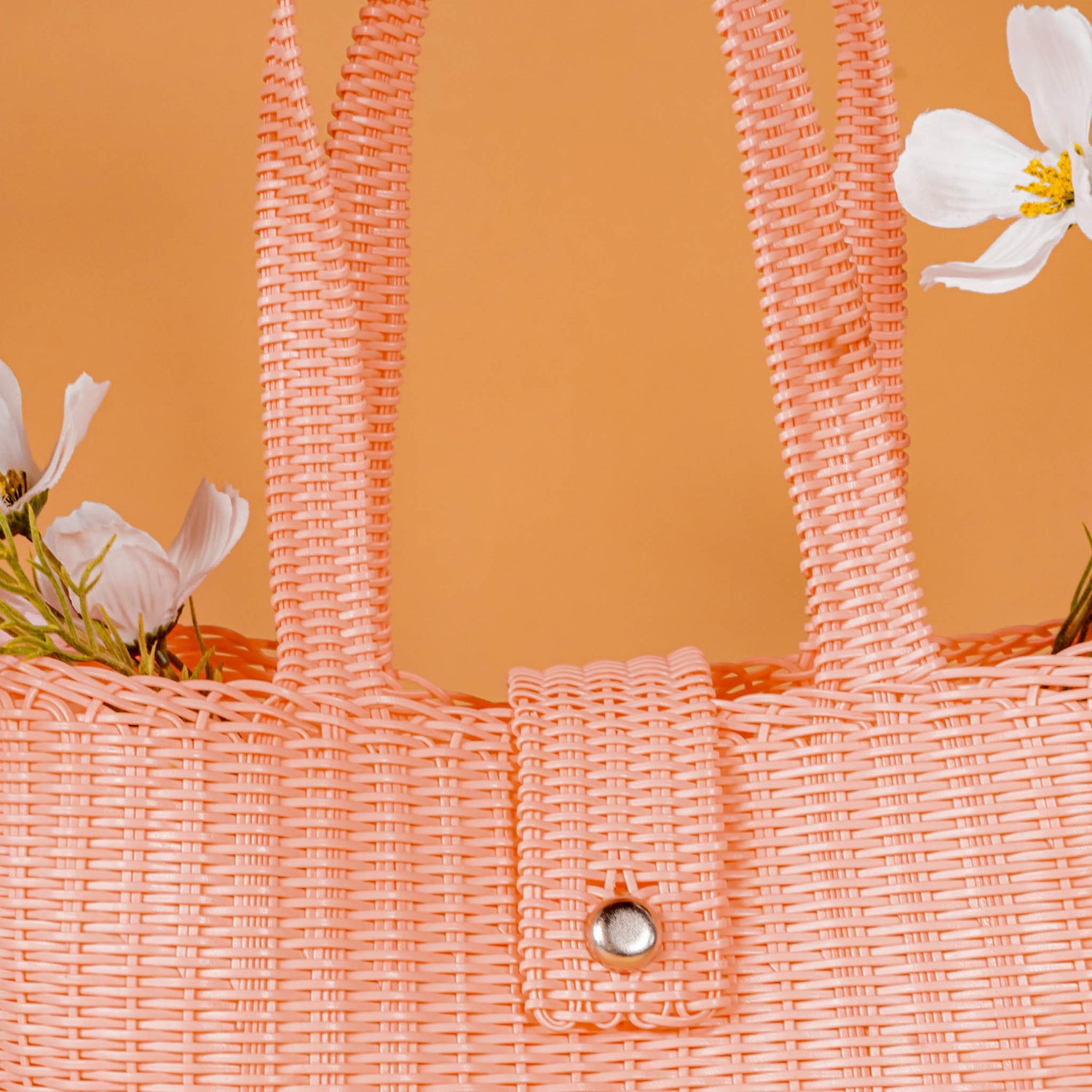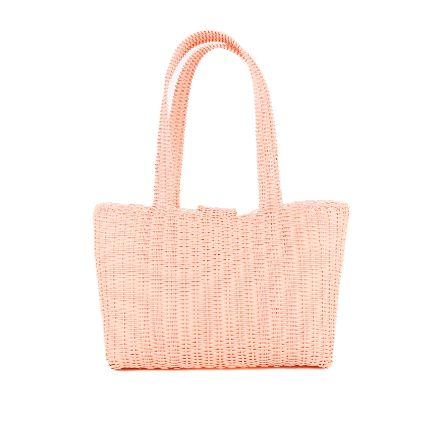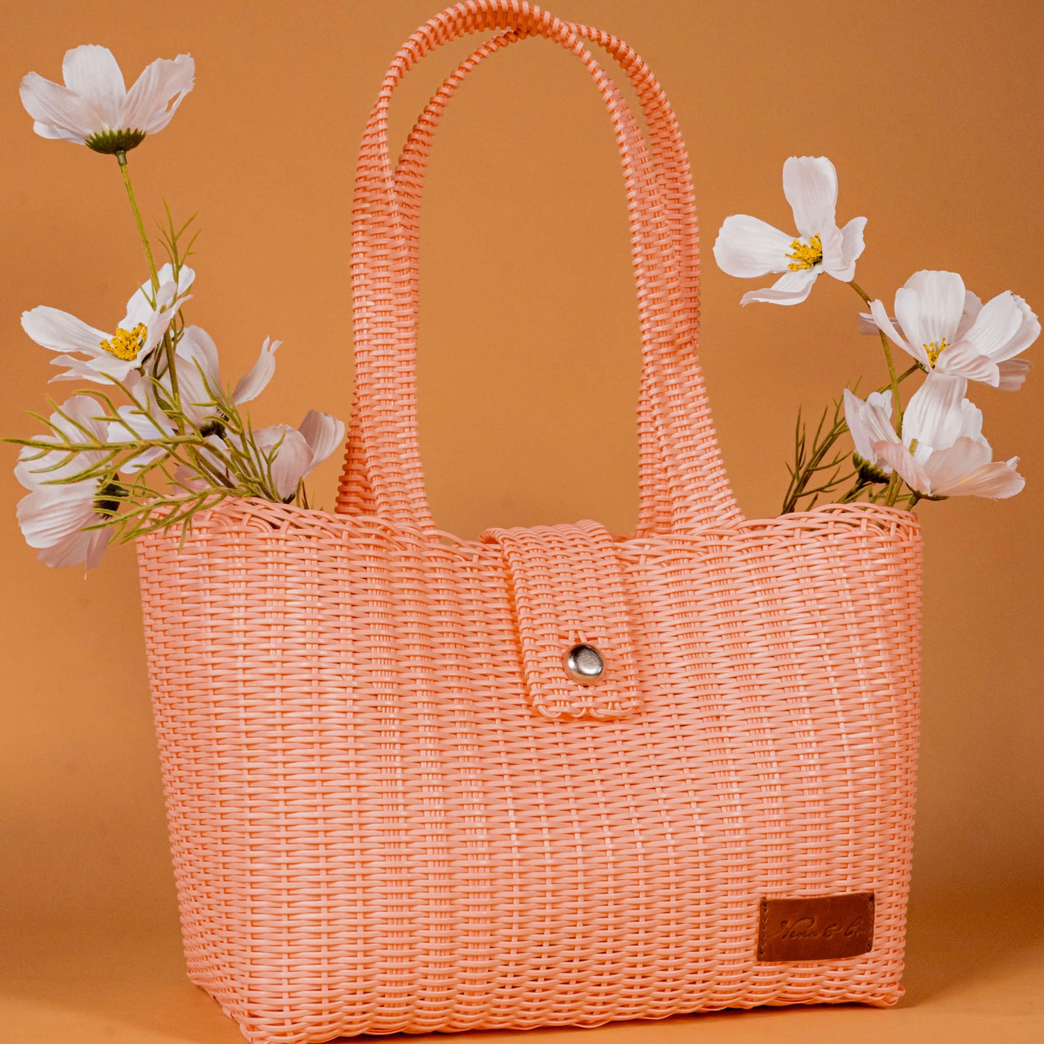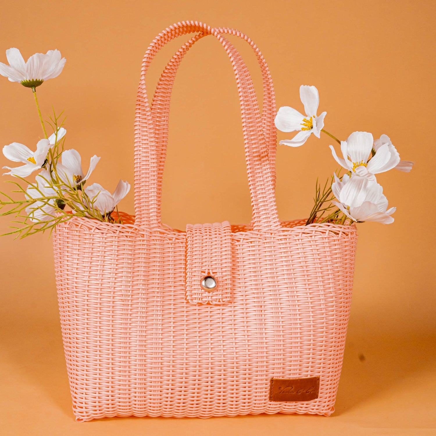 Handwoven on a wooden frame, these traditional recycled plastic market bags are found in many Latin American countries. We've added a Nena twist with familiar silhouettes featuring full grain leather accents and straps. These colorful bags and accessories are ideal for a day at the beach, market, in the garden, etc.