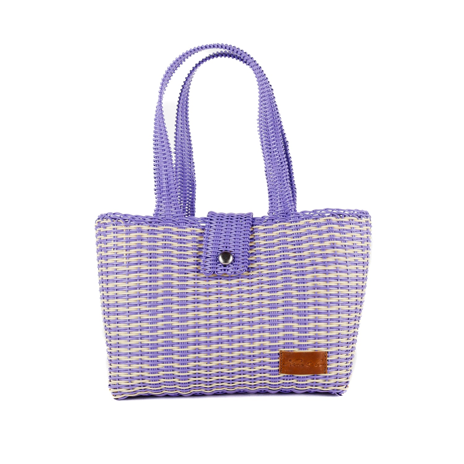 Handwoven on a wooden frame, these traditional recycled plastic market bags are found in many Latin American countries. We've added a Nena twist with familiar silhouettes featuring full grain leather accents and straps. These colorful bags and accessories are ideal for a day at the beach, market, in the garden, etc.